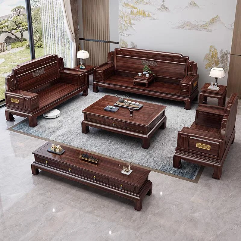 新中式ウッドウッドソファセット|高級感あふれるリビングにぴったりな収納付き|広い空間を演出する洗練された中国風家具|別荘スタイルを引き立てる!