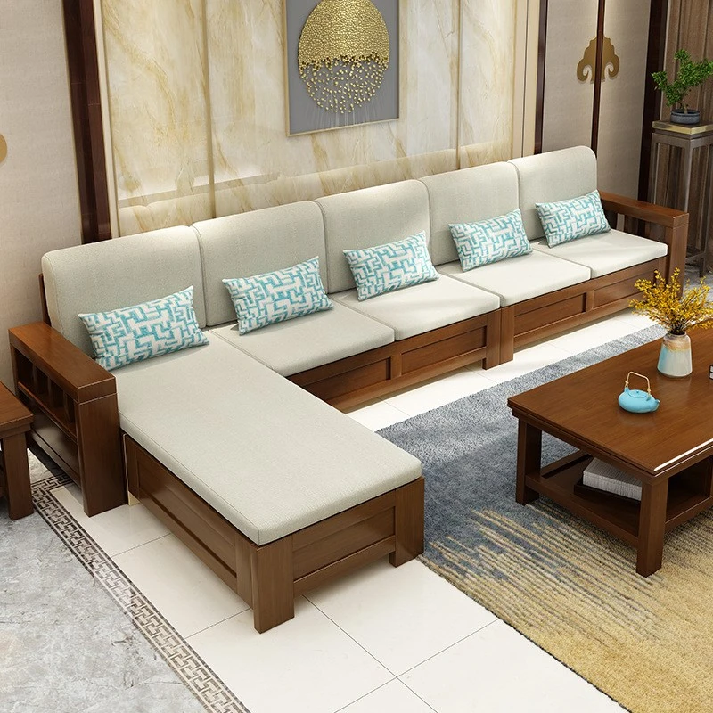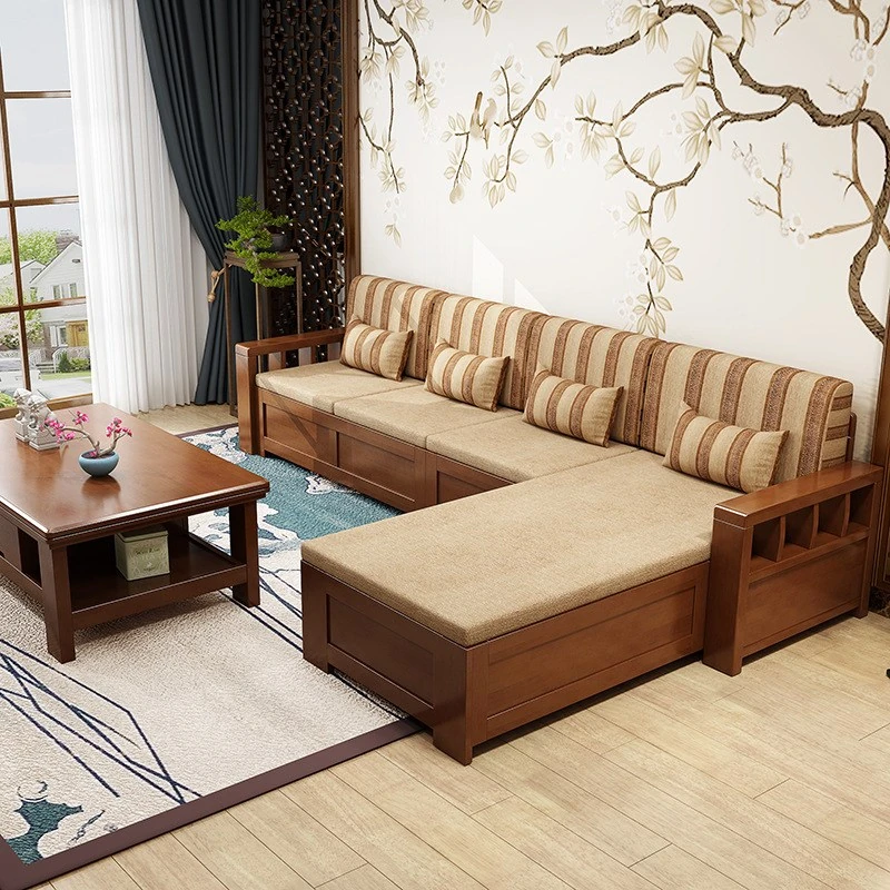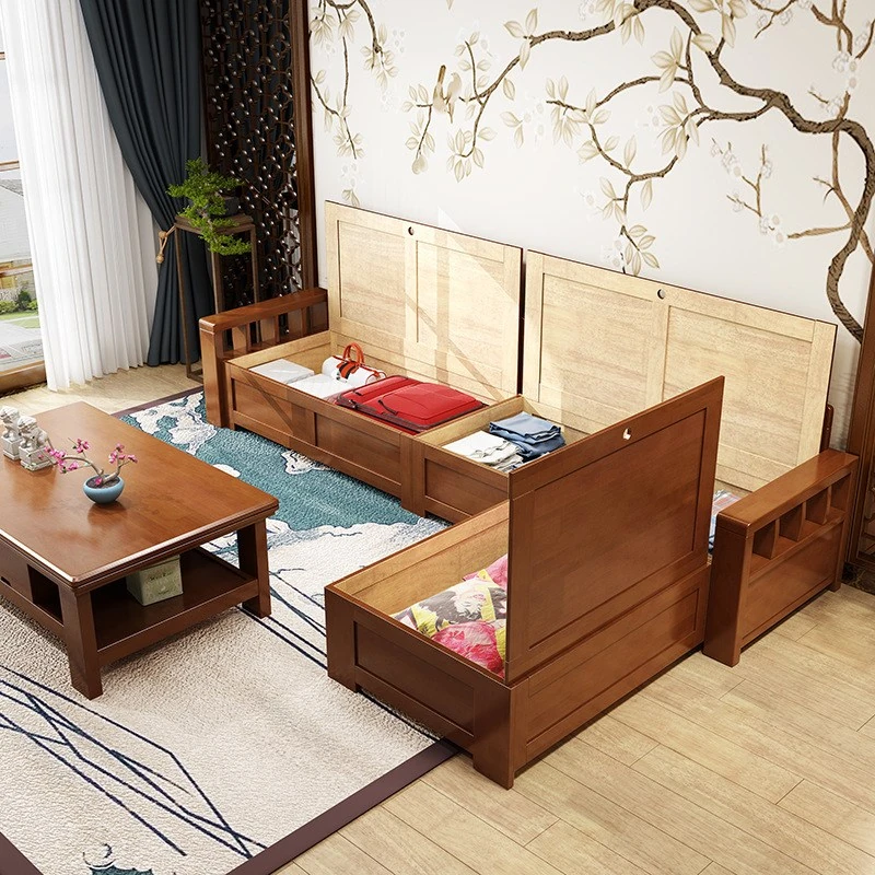 新中式スタイルのコンパクトソファー|小さいお部屋に最適!冬夏兼用、リビングにぴったりの収納付きコーナーソファ|全木製、ゴムの木使用で高品質!