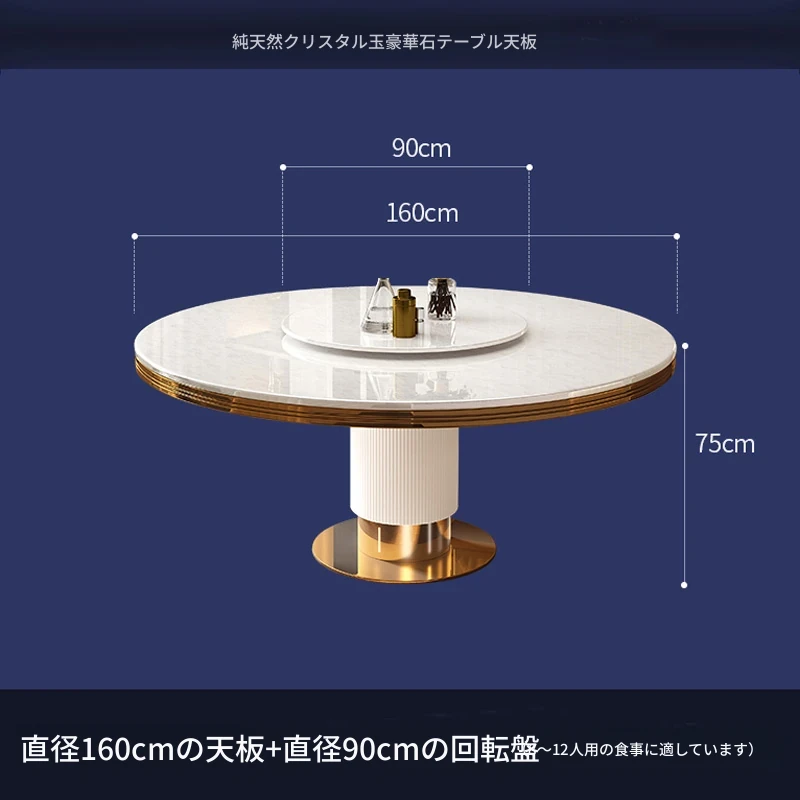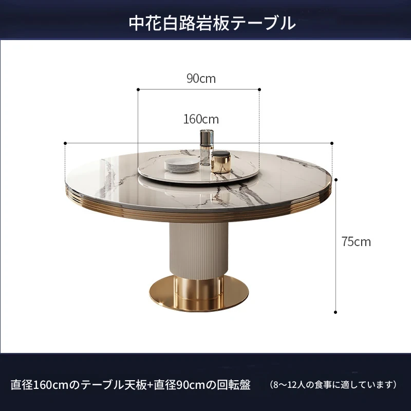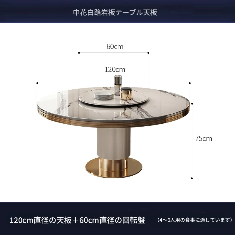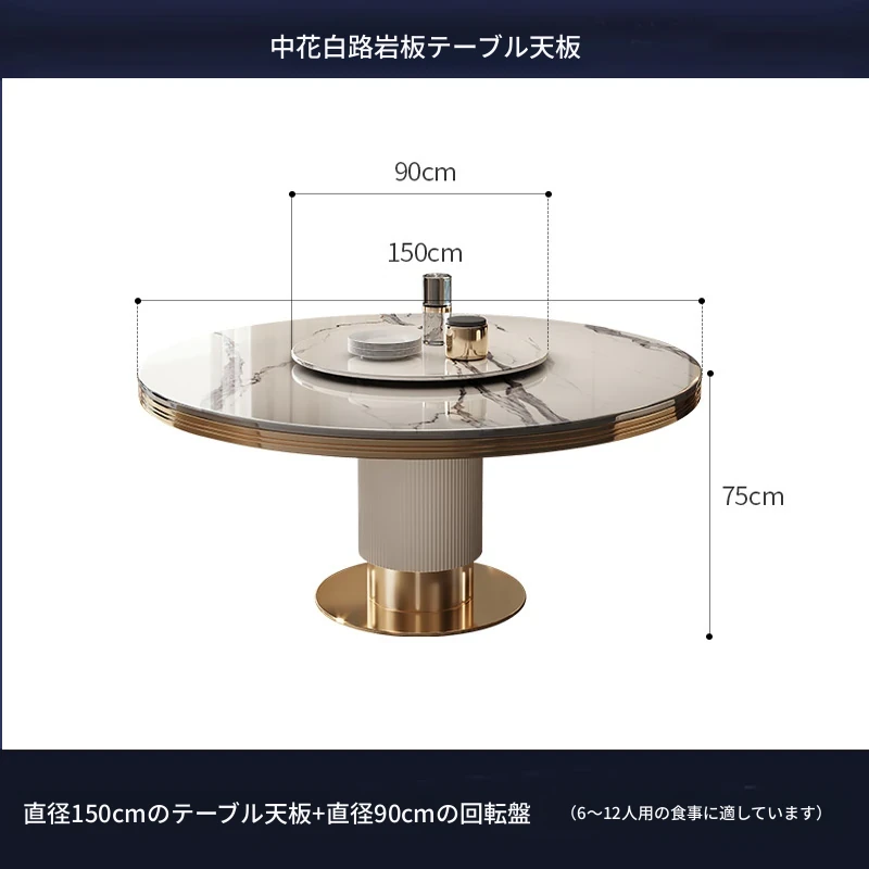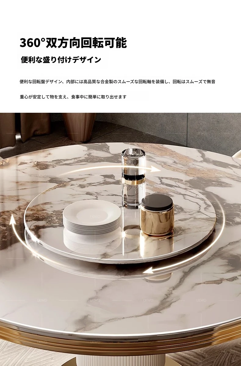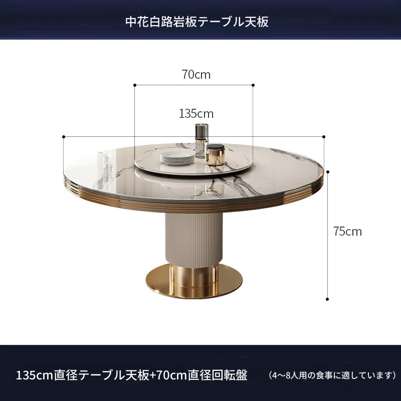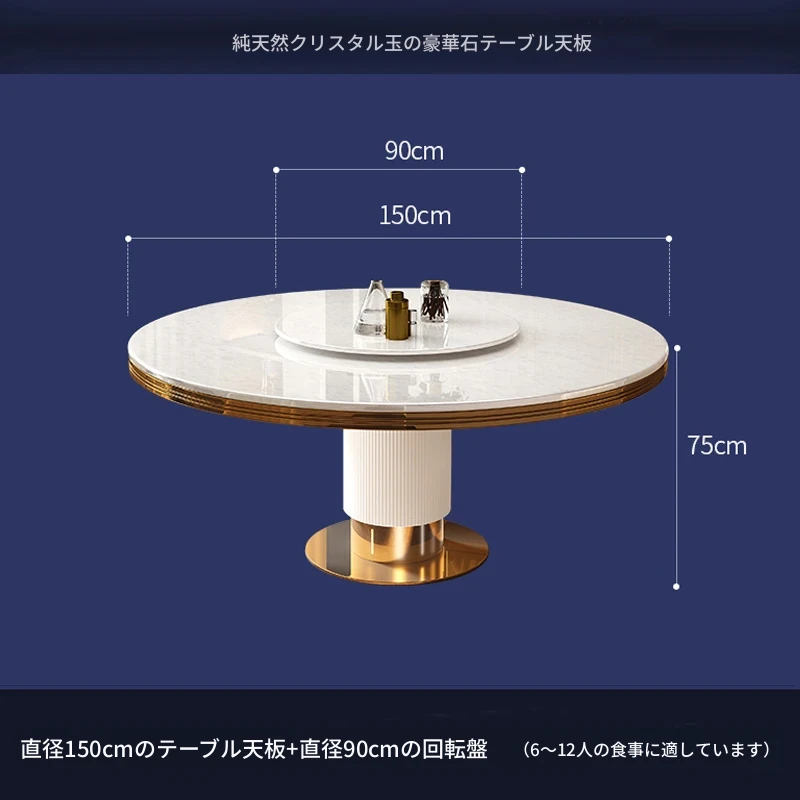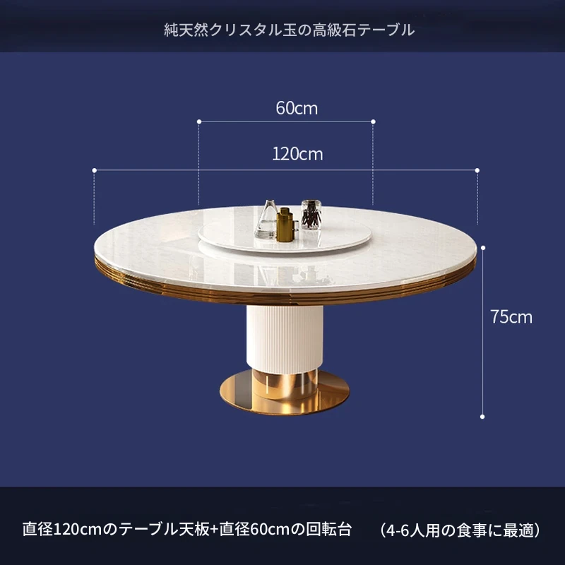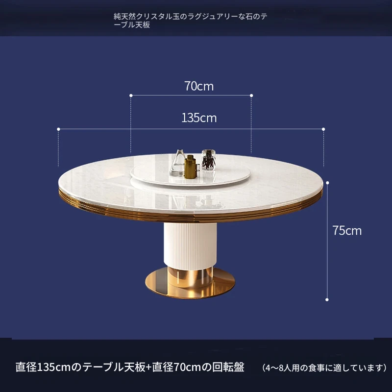 高級大理石製の円形ダイニングテーブルセット|6人・8人用|モダンでシンプルなイタリアンデザイン|回転式テーブル|家庭用に最適!おしゃれで機能的な空間を演出します。