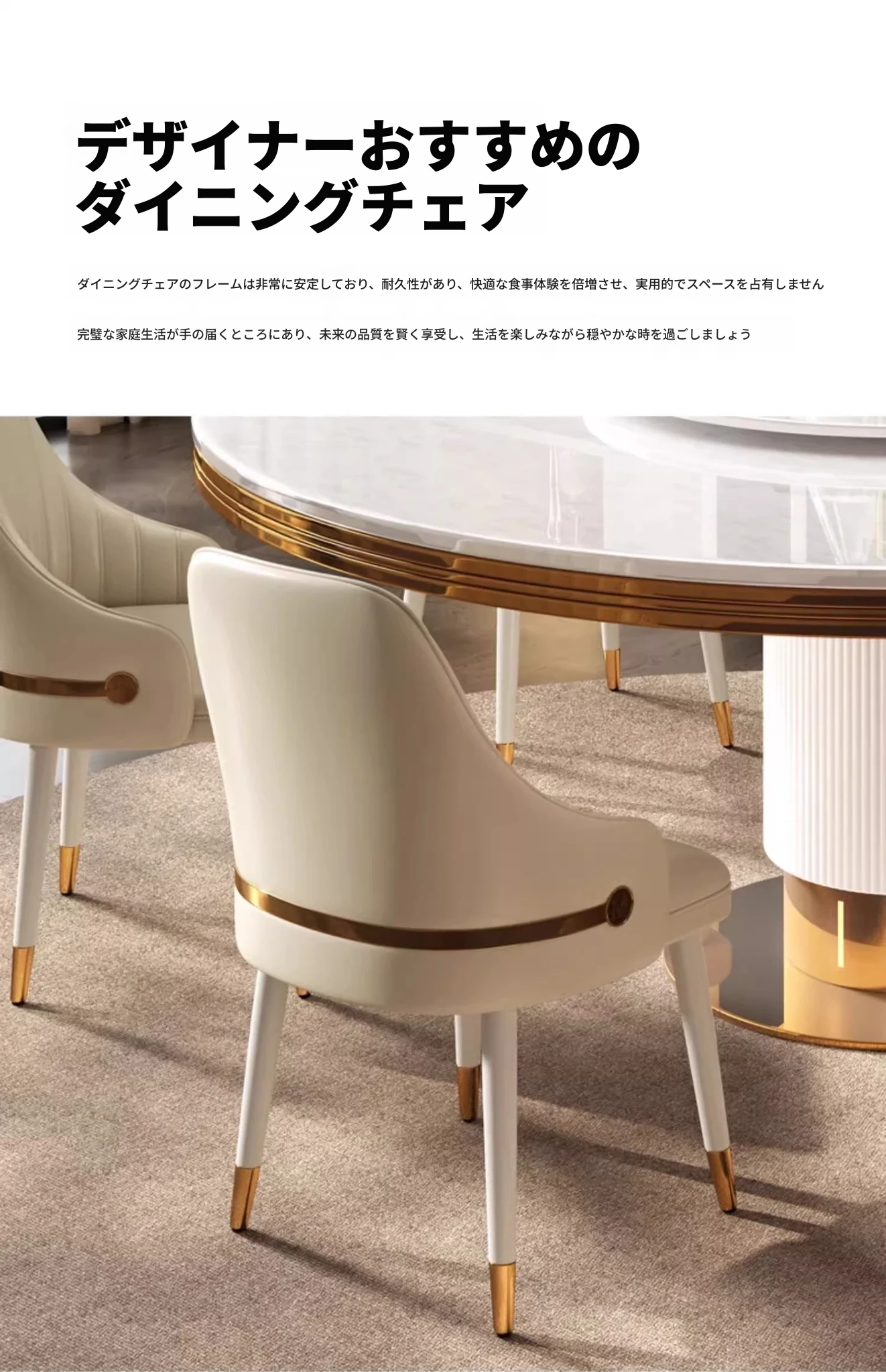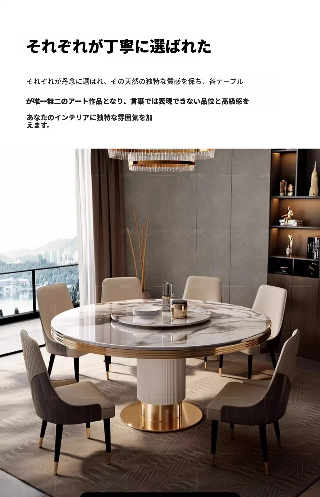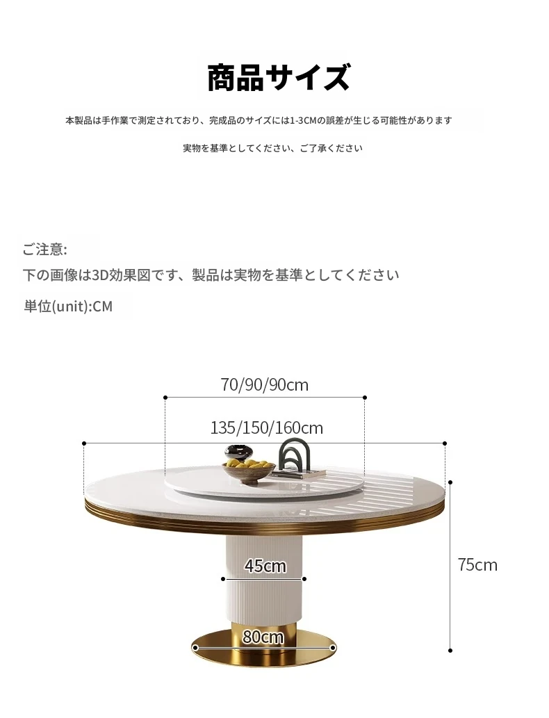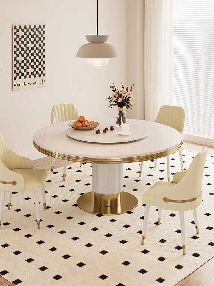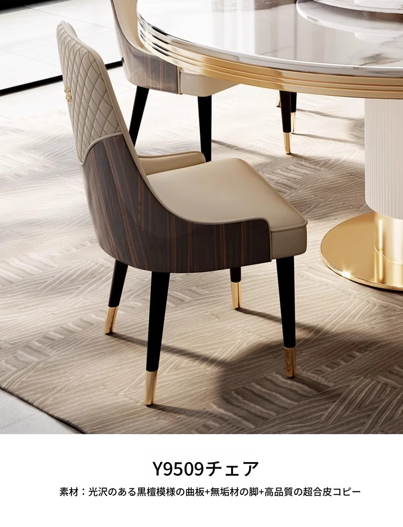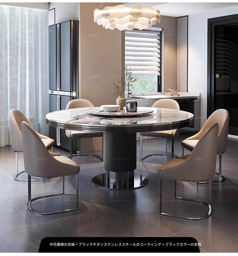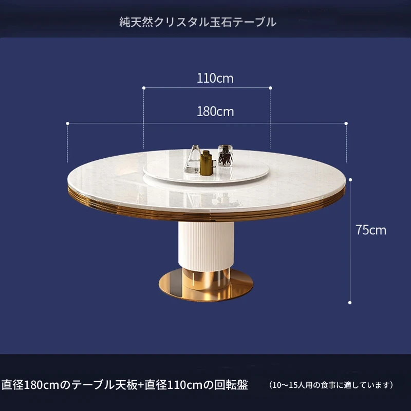 高級大理石製の円形ダイニングテーブルセット|6人・8人用|モダンでシンプルなイタリアンデザイン|回転式テーブル|家庭用に最適!おしゃれで機能的な空間を演出します。