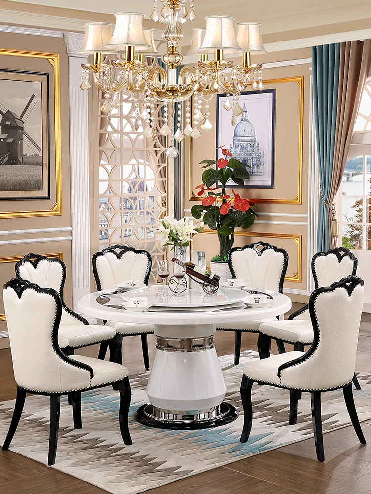 1.5mのダイニングテーブル+(90cmのターンテーブル付き)+8脚のPU皮椅子