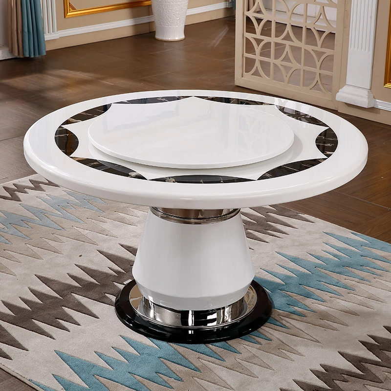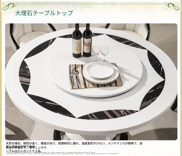 1.2mのダイニングテーブル+(70cmのターンテーブル付き)+6脚のPU皮椅子