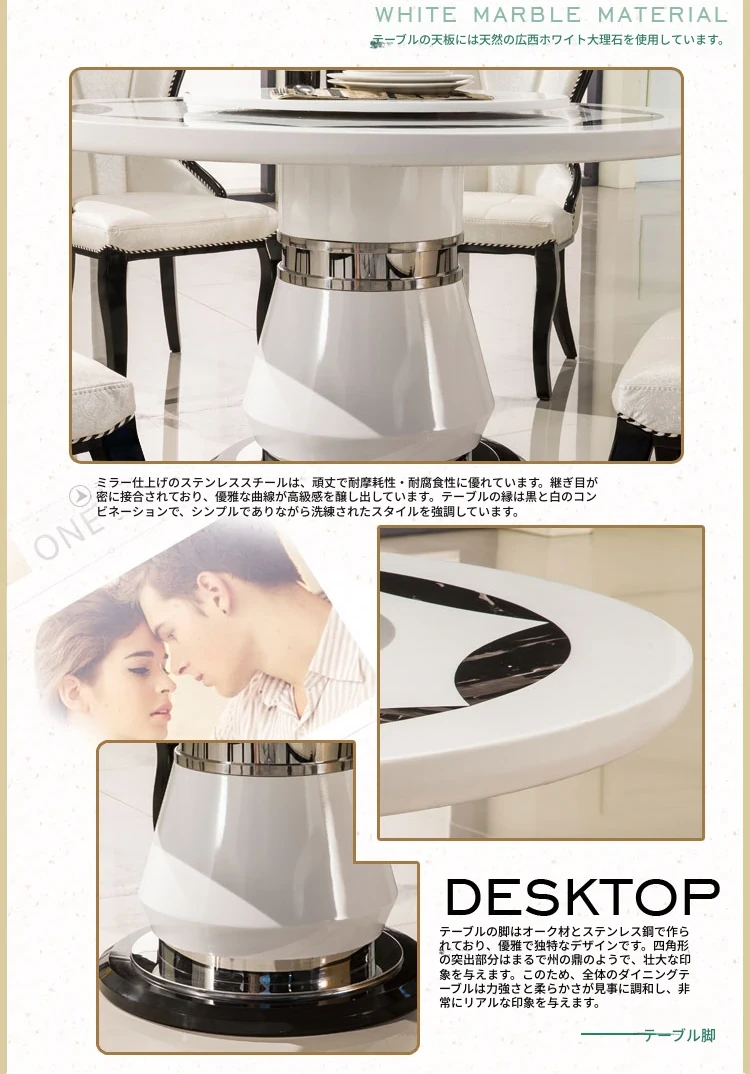 1.35mのダイニングテーブル+(80cmのターンテーブル付き)+8脚のPU皮椅子