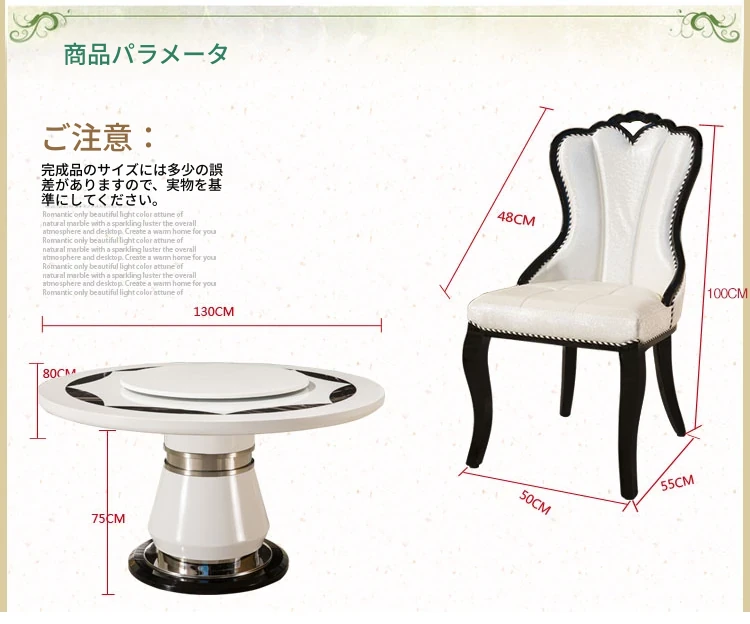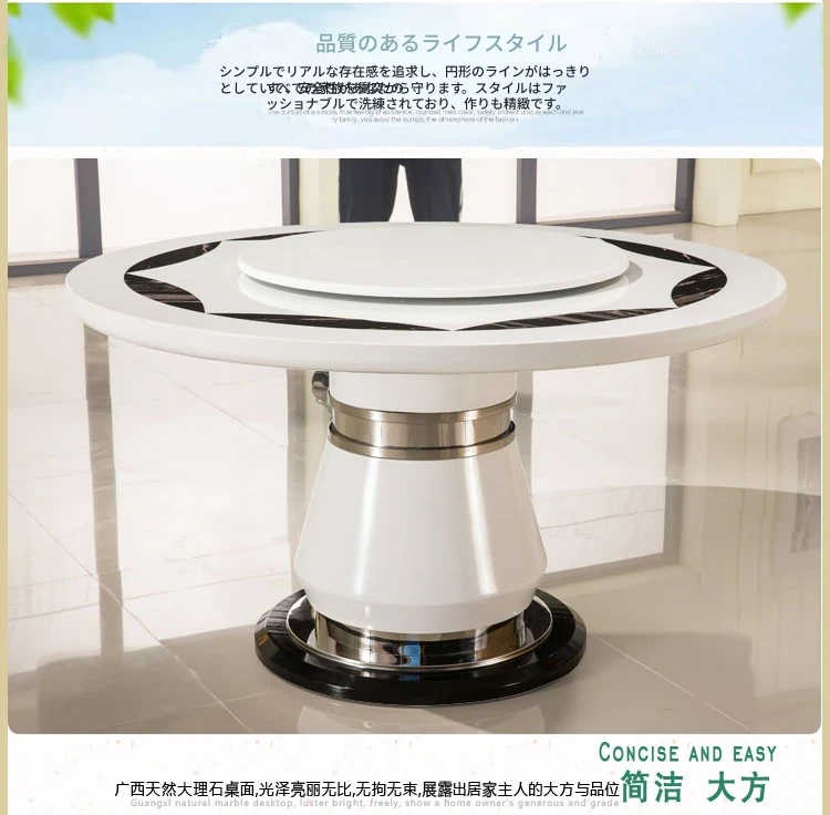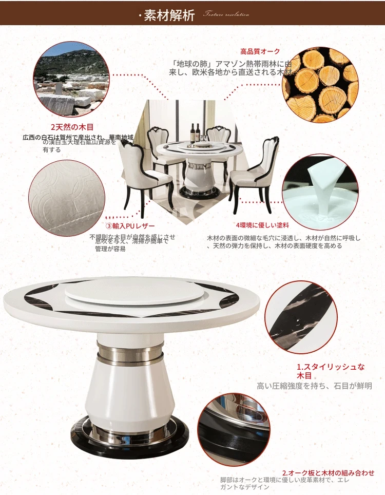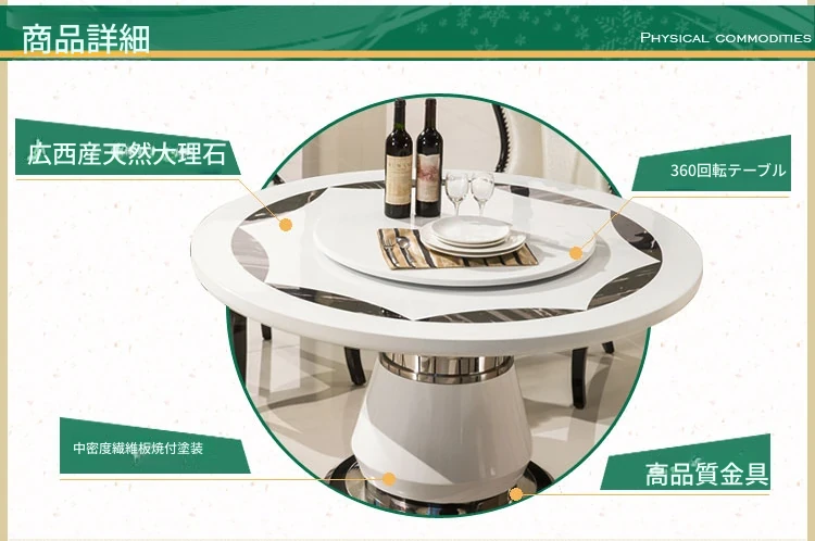 1.5mのダイニングテーブル+(90cmのターンテーブル付き)+10脚のPU皮椅子