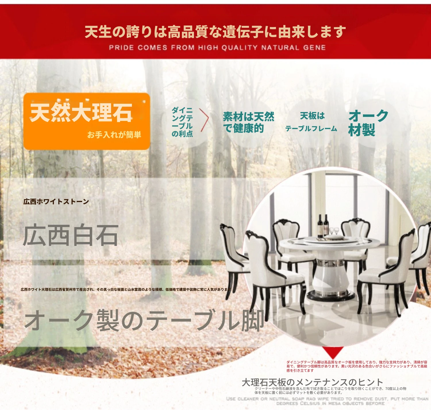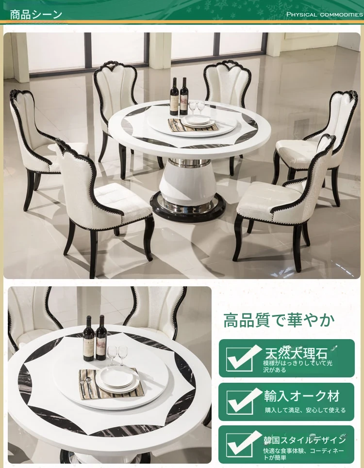 1.35mのダイニングテーブル+(80cmのターンテーブル付き)+6脚のPU皮椅子