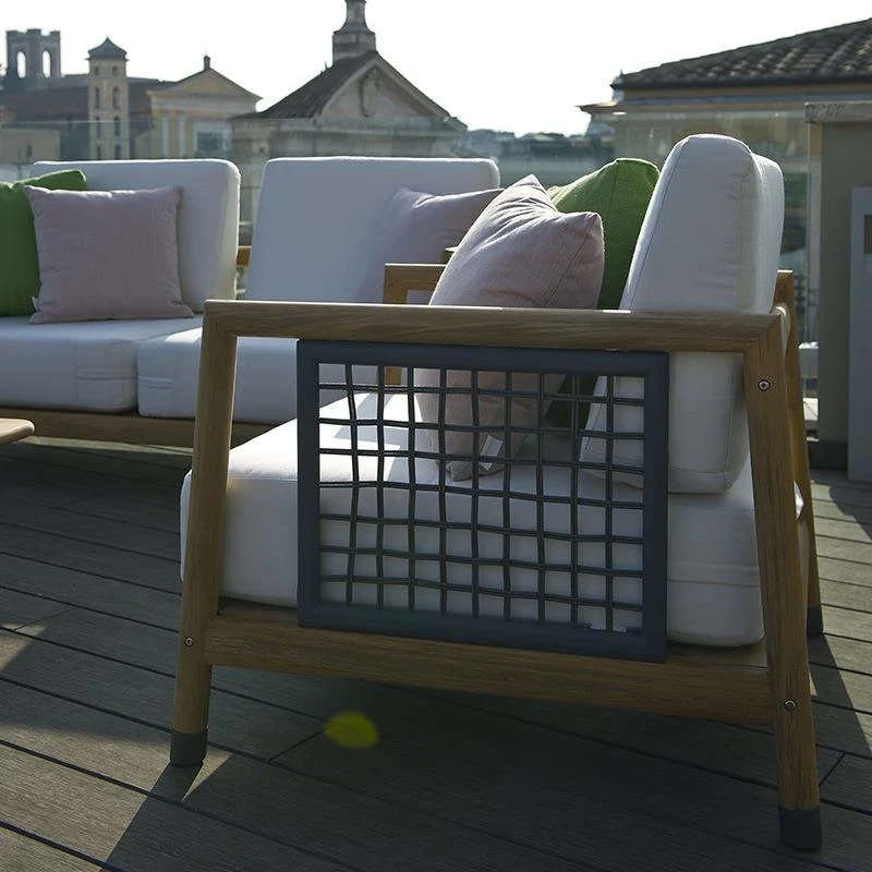 ソファチェア(ティーク+100%防水布+高密度スポンジ)