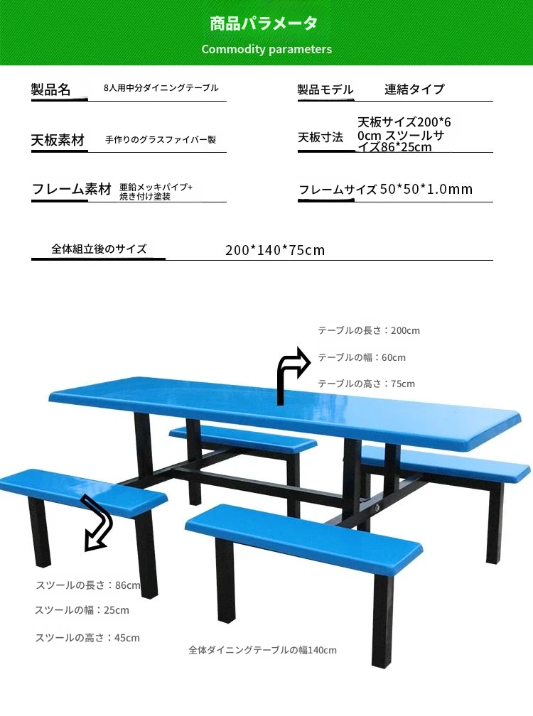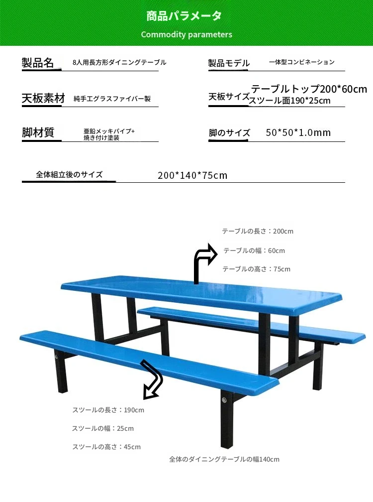広東のメーカー製、6人/8人用職員食堂テーブルセット!工場スタッフのための快適な食堂テーブル&ベンチ。8人用の連結デザインで、スペースを有効活用し、食事時間をより楽しく!