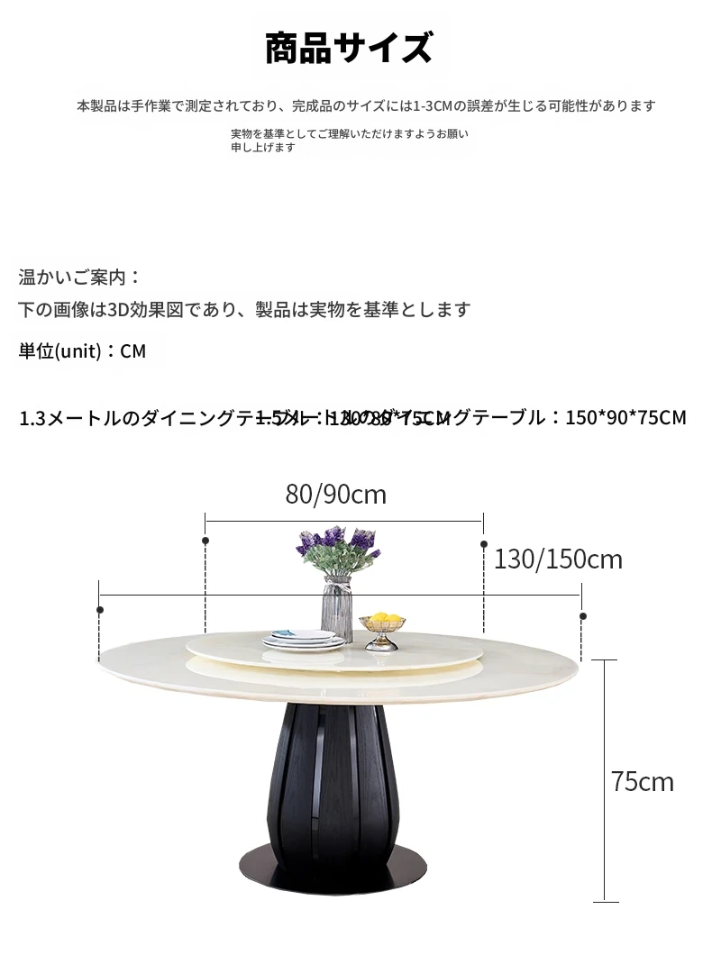 1.5メートル+90cm回転台+ダイニングチェア*4(天然氷玉大理石+ホワイトワックスウッドフレーム+ブラックチタンベース)