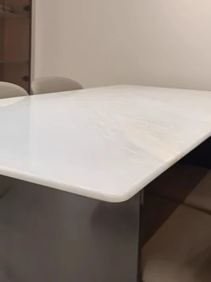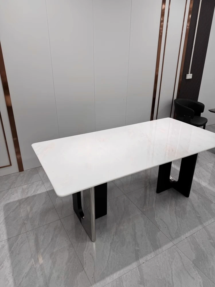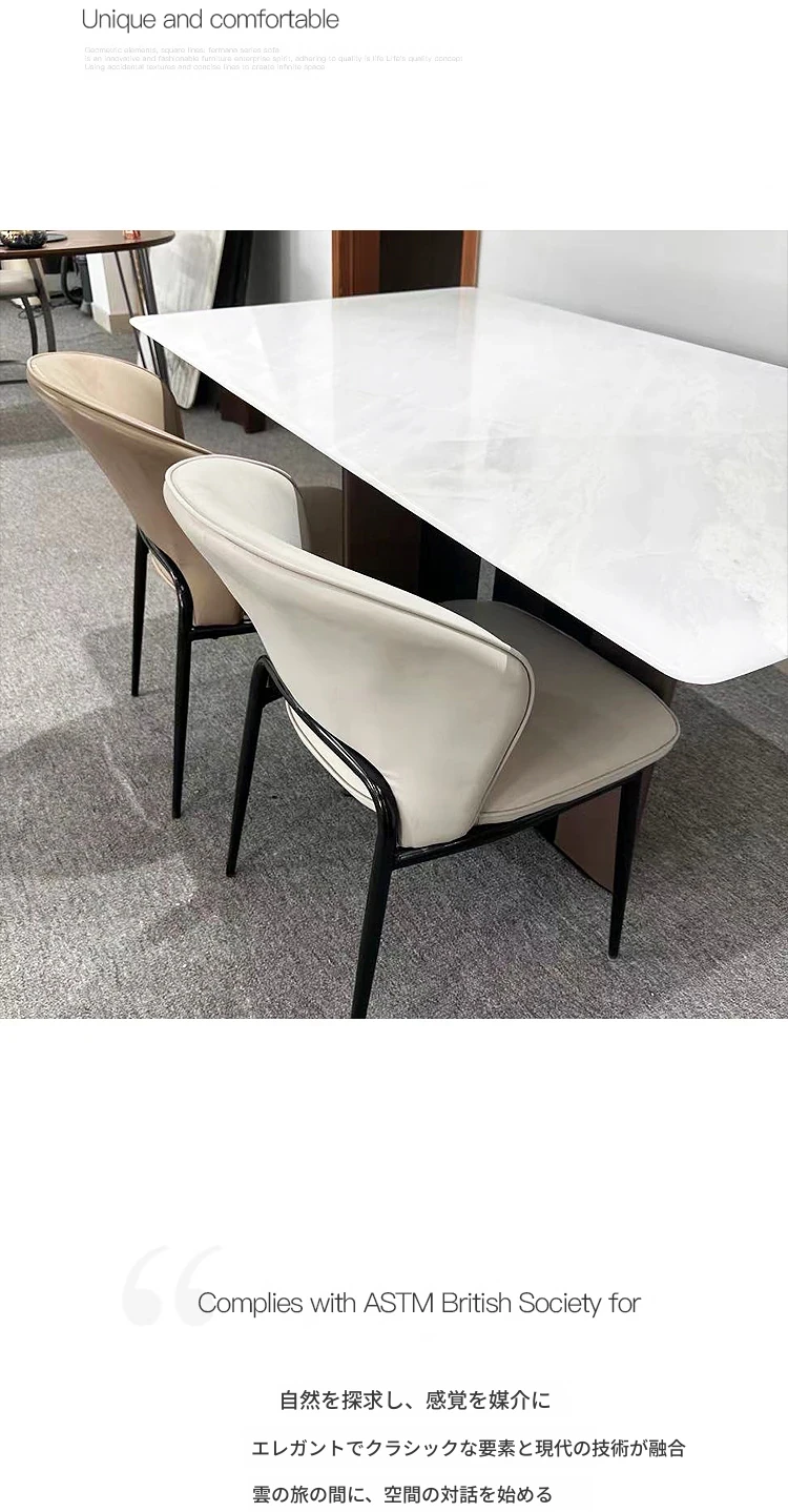 新フィンディホワイト天然ラグジュアリー石製ダイニングテーブル+6椅子(4種類のダイニングチェアから選択可)