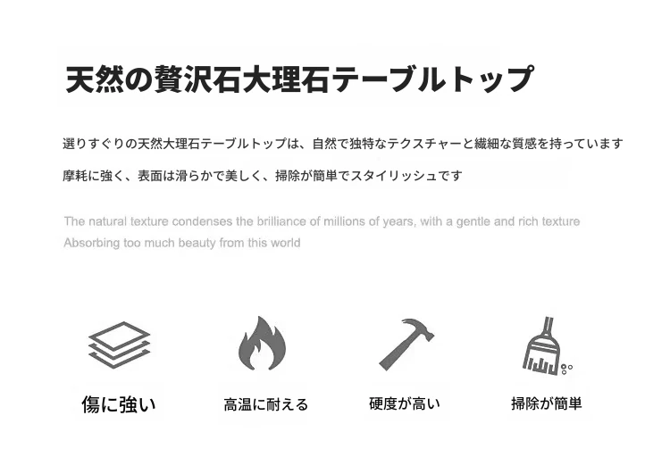 新フィンディホワイト天然ラグジュアリー石製ダイニングテーブル+4椅子(4種類のダイニングチェアから選択可)