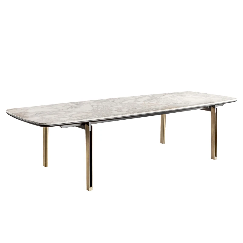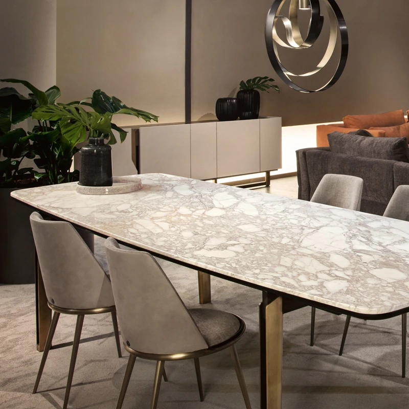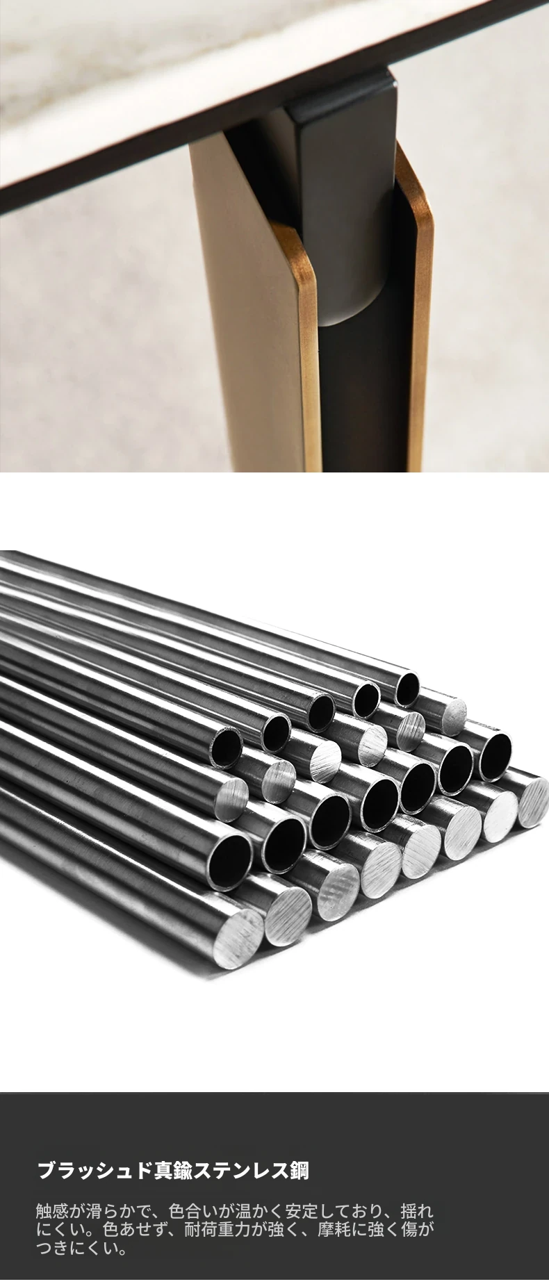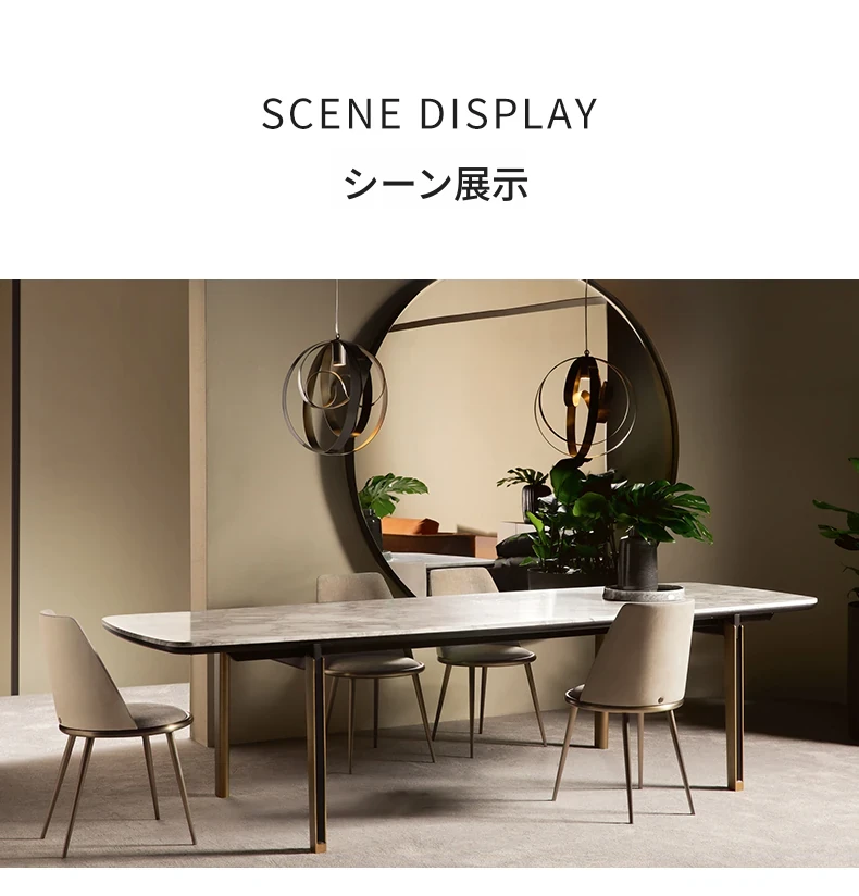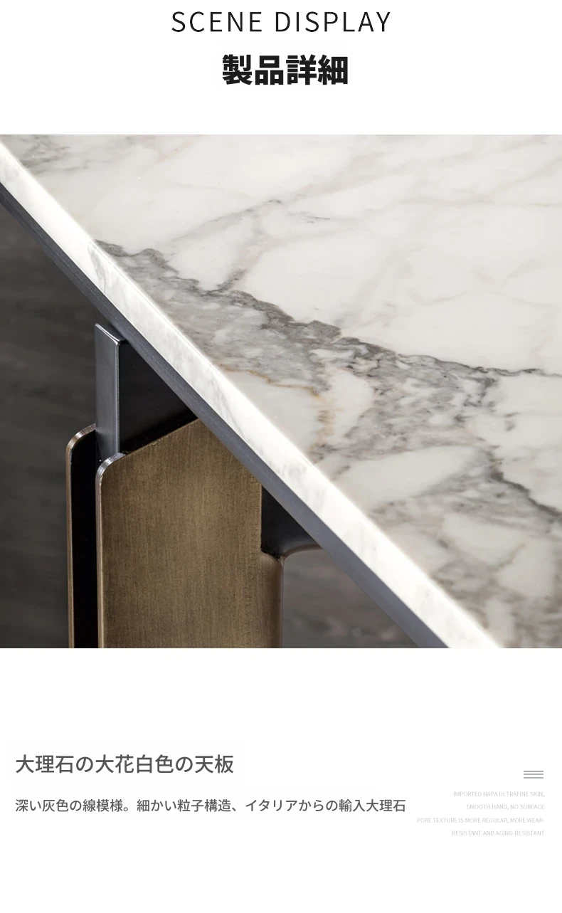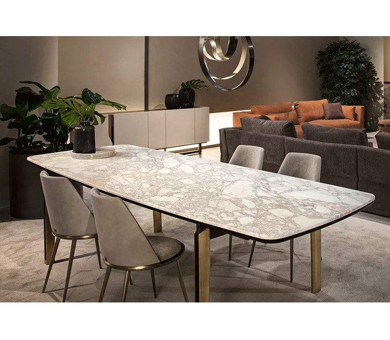 イタリアンラグジュアリー大理石ダイニングテーブル|デザイナーズヴィラ家具|ステンレス製・モダンシンプルな長方形テーブル|おしゃれな食卓で特別な時間を演出します!