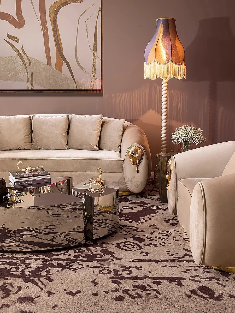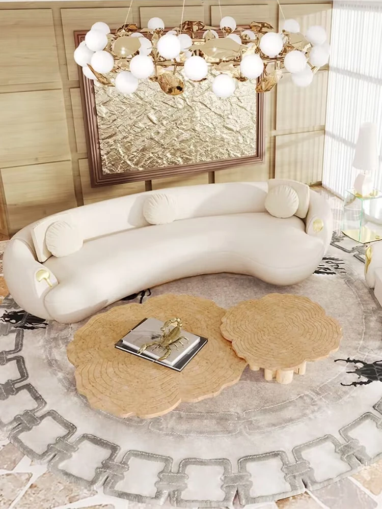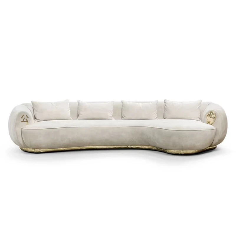 イタリアンラグジュアリー・スエードソファセット デザイナーの創造的なアーチ型レザーソファ 別荘や家庭に最適なファブリックソファで、洗練されたスタイルをお楽しみください!