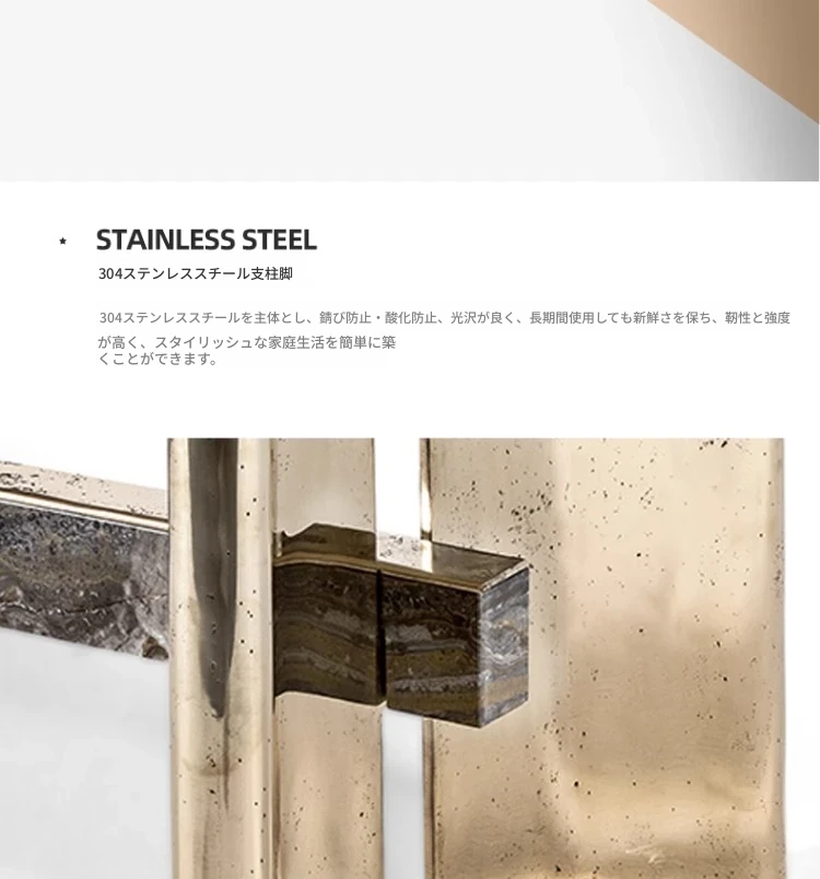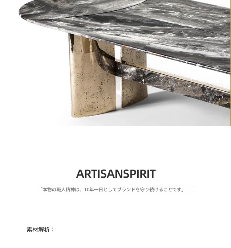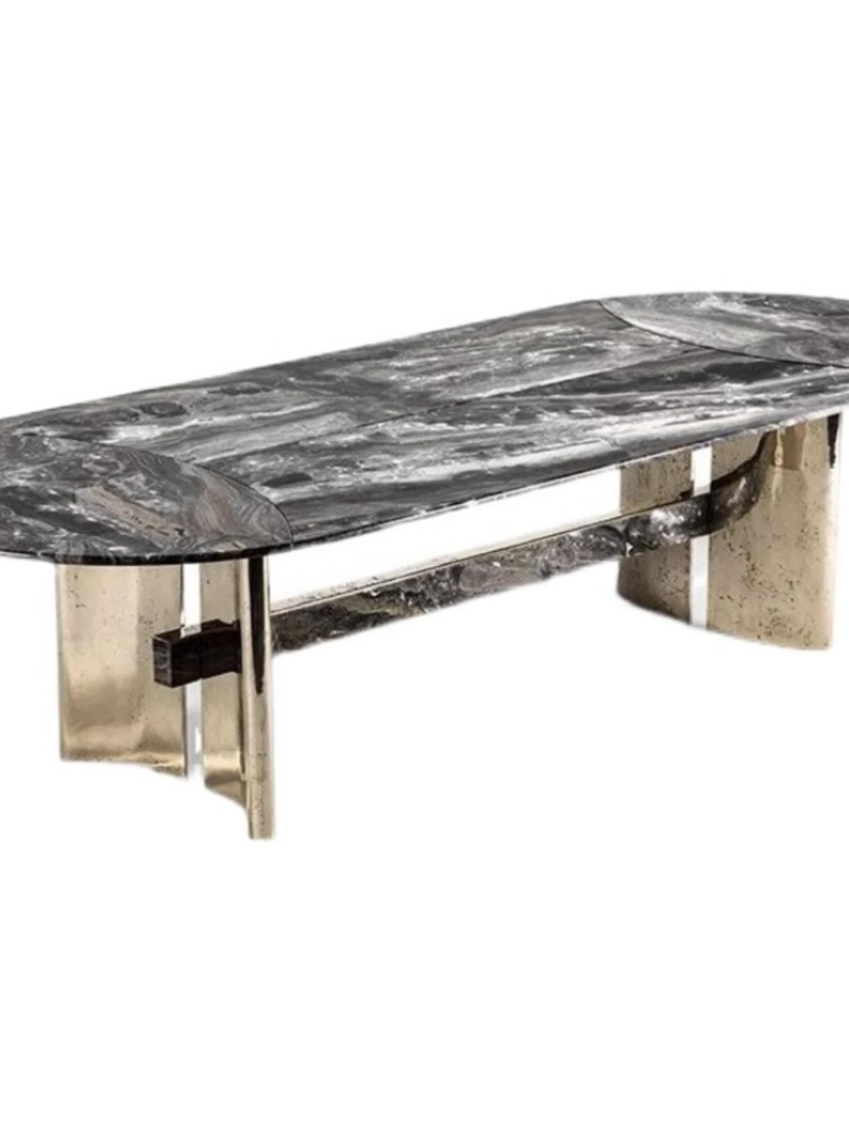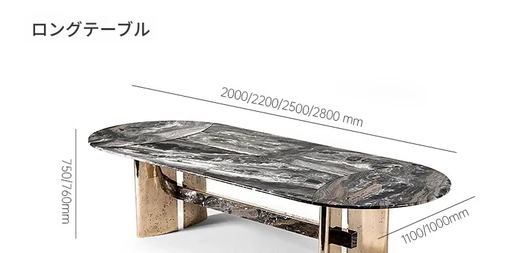 イタリアンラグジュアリー大理石ダイニングテーブル|デザイナーズヴィラ家具|ステンレス製・モダンシンプルな長方形テーブル|おしゃれな食卓で特別な時間を演出します!