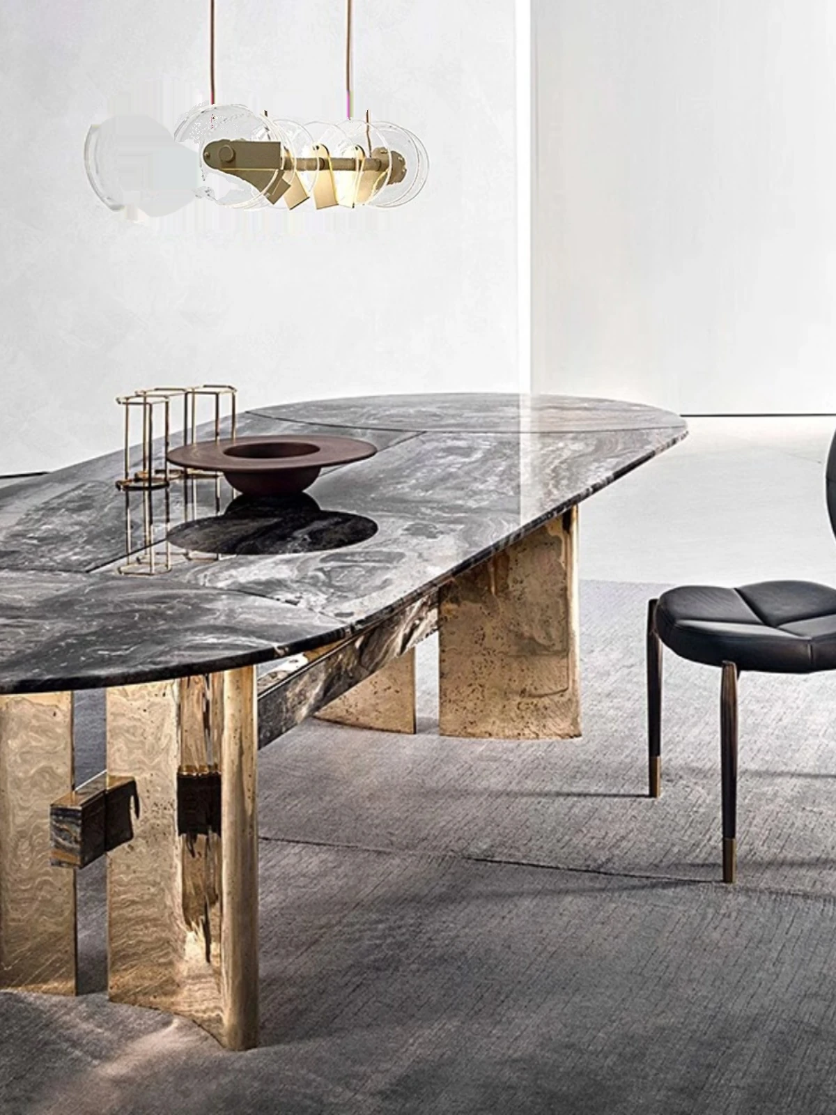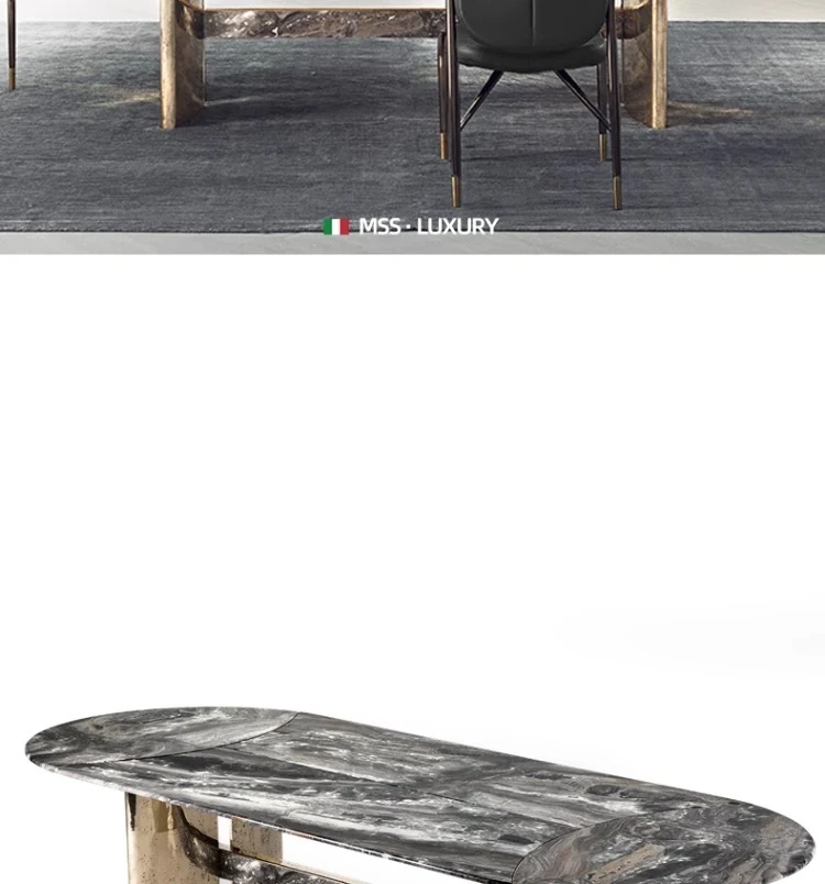 イタリアンラグジュアリー天然大理石ダイニングテーブル - ヴィラ向け高級デザインのオーバル&レクタングル型、洗練された雰囲気でおしゃれな食卓を演出!