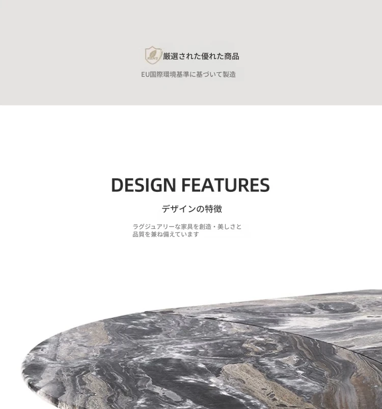 高級感あふれる大理石ダイニングテーブルセット - モダンでシンプルなデザイン、天然ミクロクリスタルストーン使用で高級感満載。おしゃれな食卓を演出し、特別なひとときをお届けします!