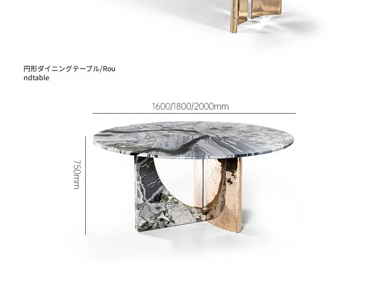 アメリカンラグジュアリーラウンドダイニングテーブル|メイク同型大理石製ラウンドテーブル|パークアベニュー風モダンテーブルで、洗練された食卓を演出!