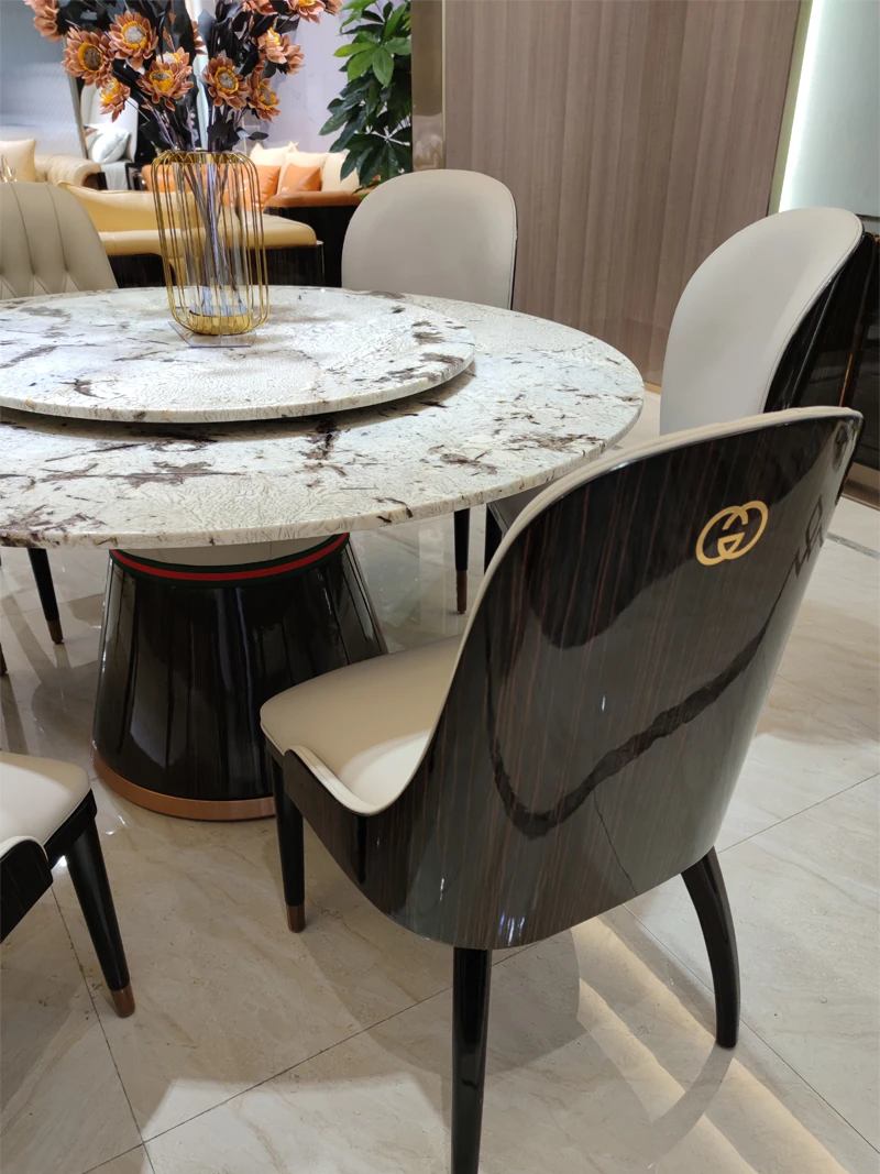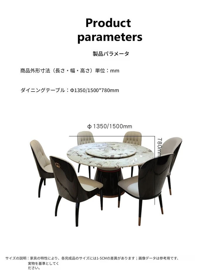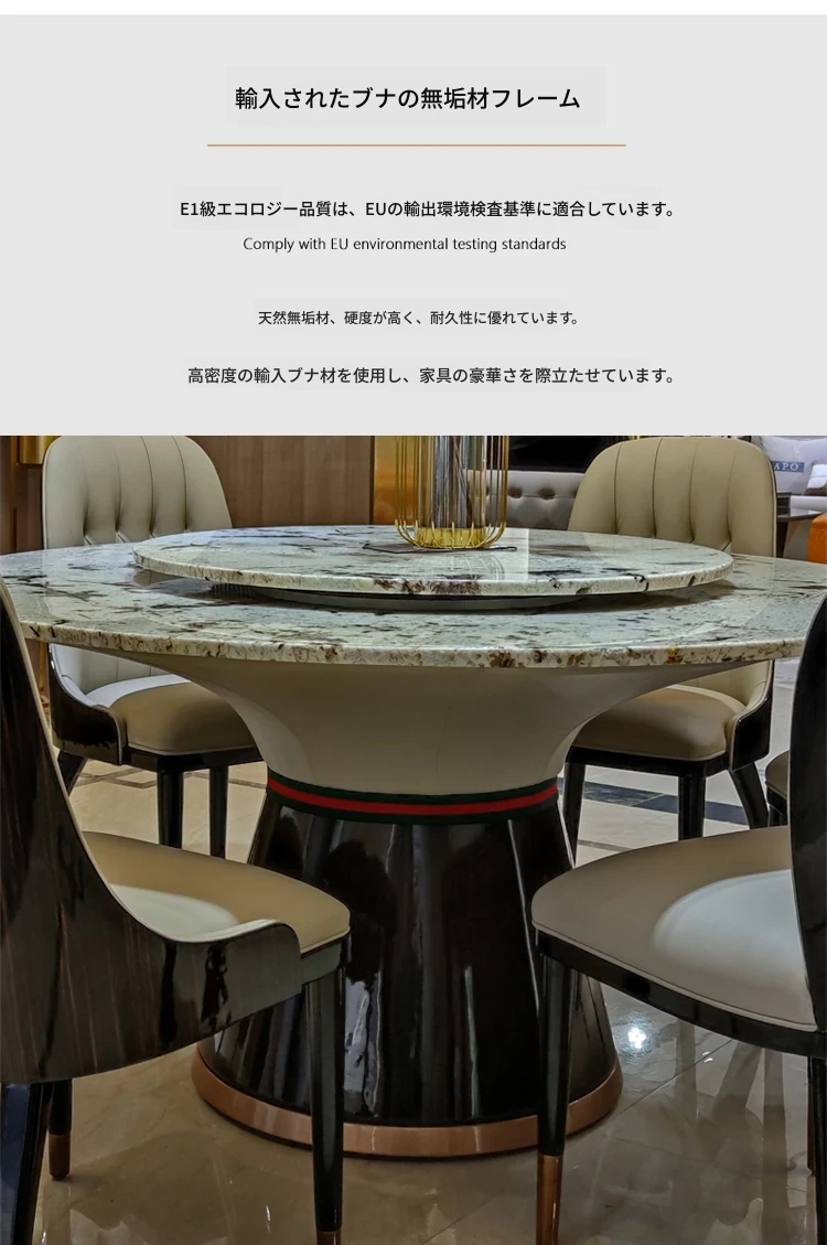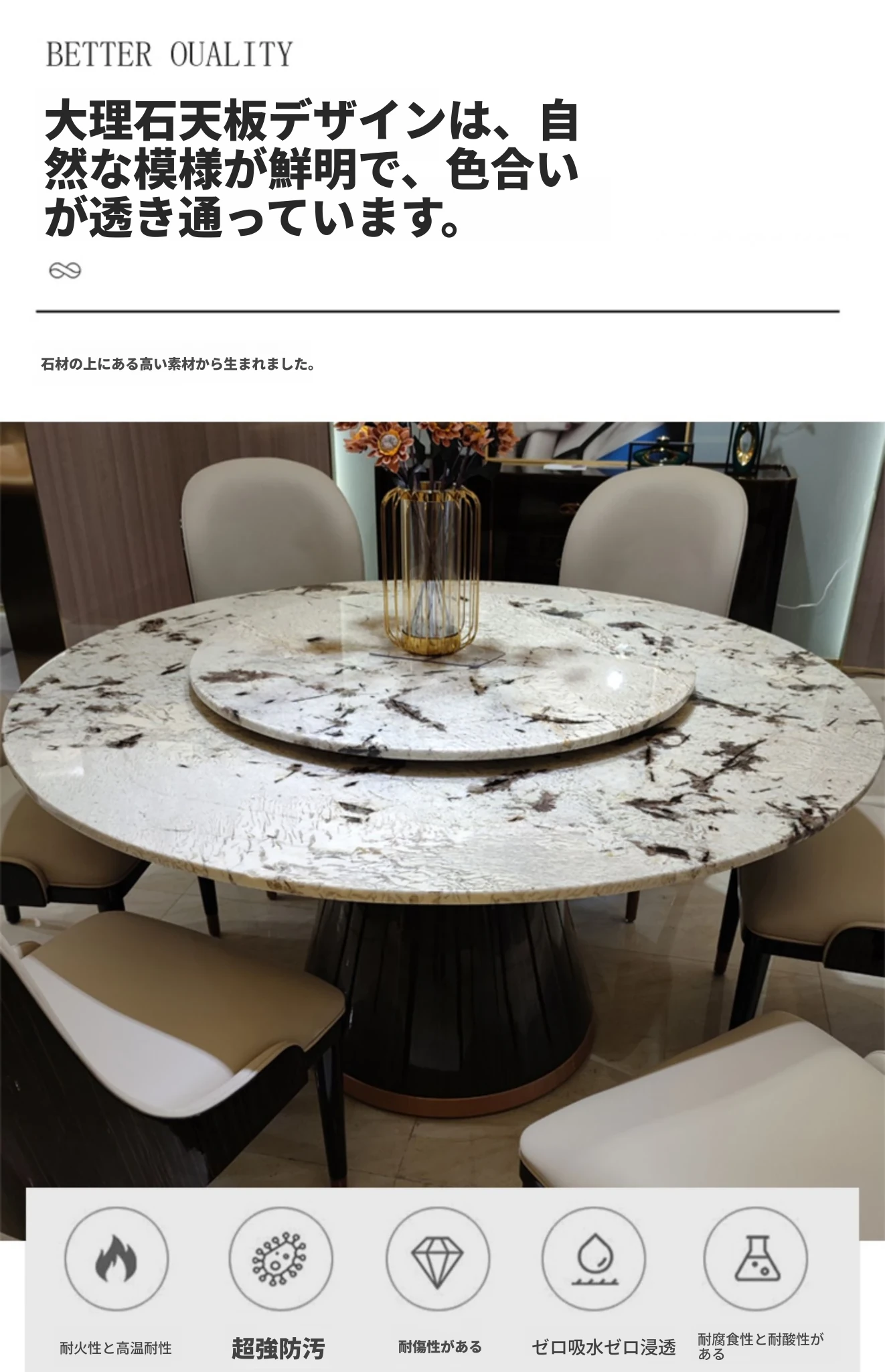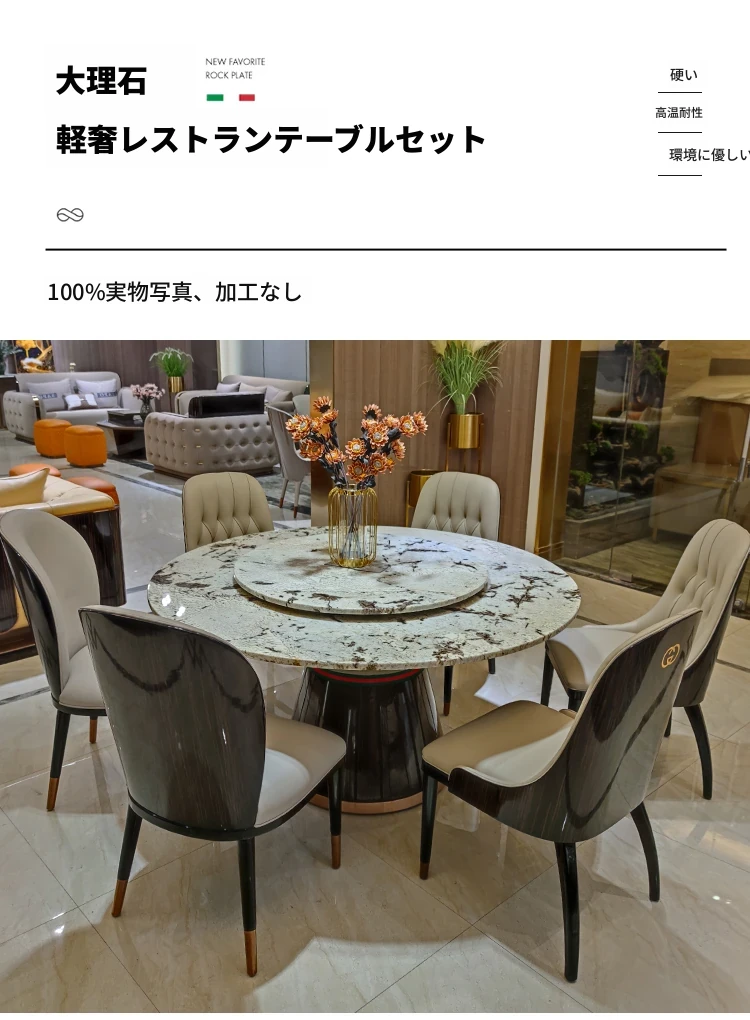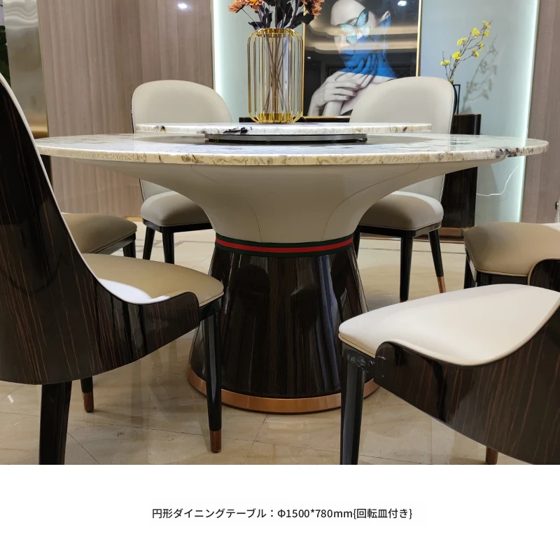 高級大理石製の円形ダイニングテーブルセット|6人・8人用|モダンでシンプルなイタリアンデザイン|回転式テーブル|家庭用に最適!おしゃれで機能的な空間を演出します。