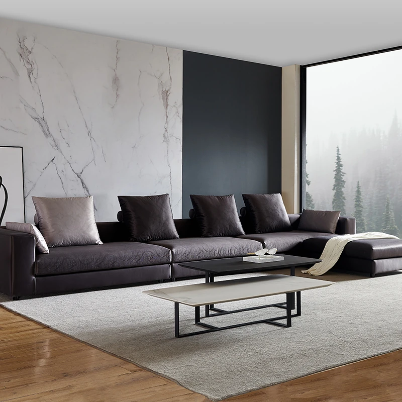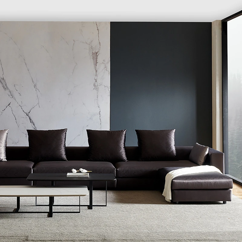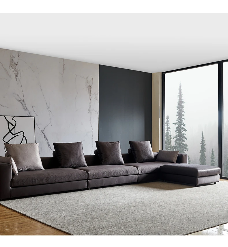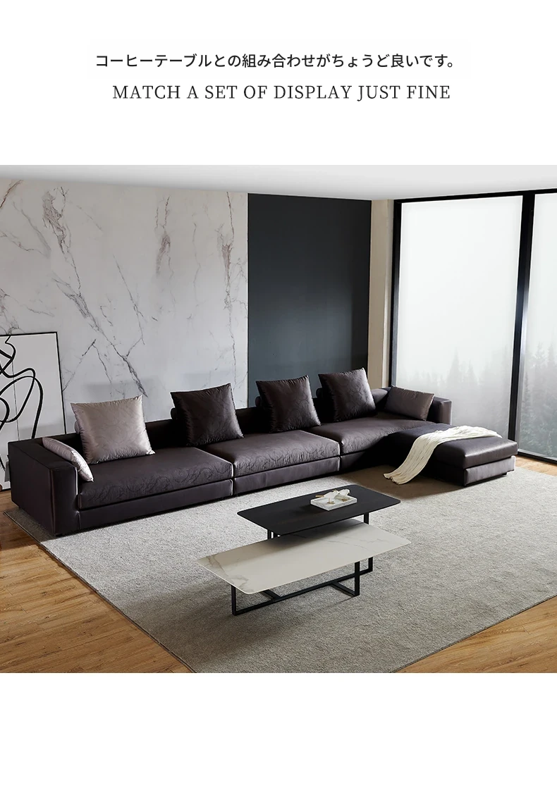 イタリアンミニマルコーナーソファ|モダンでシンプルなファブリックソファの角型コンビネーション|ラグジュアリー感あふれる広々としたリビングに最適!