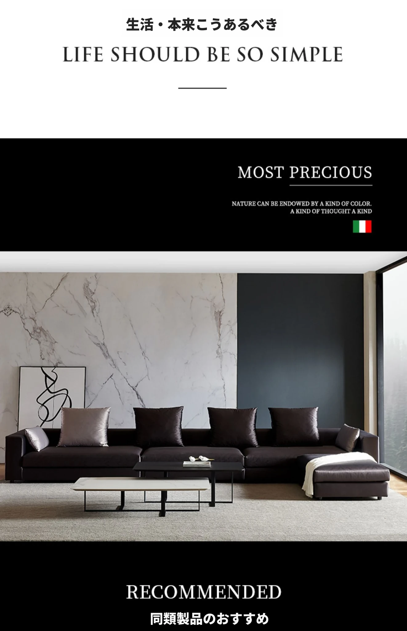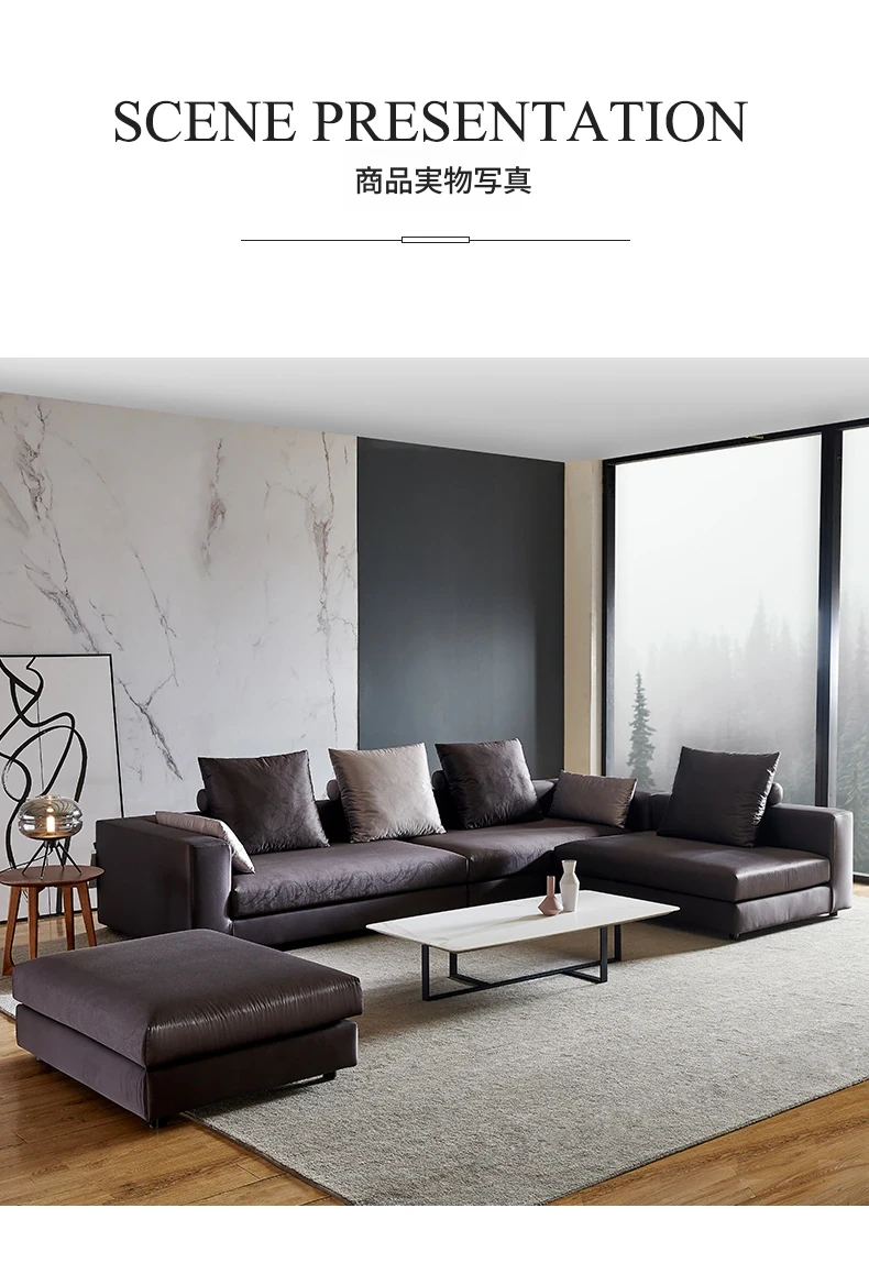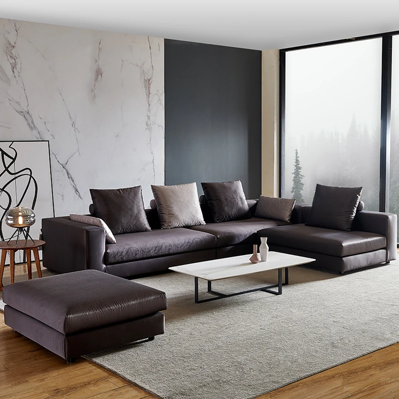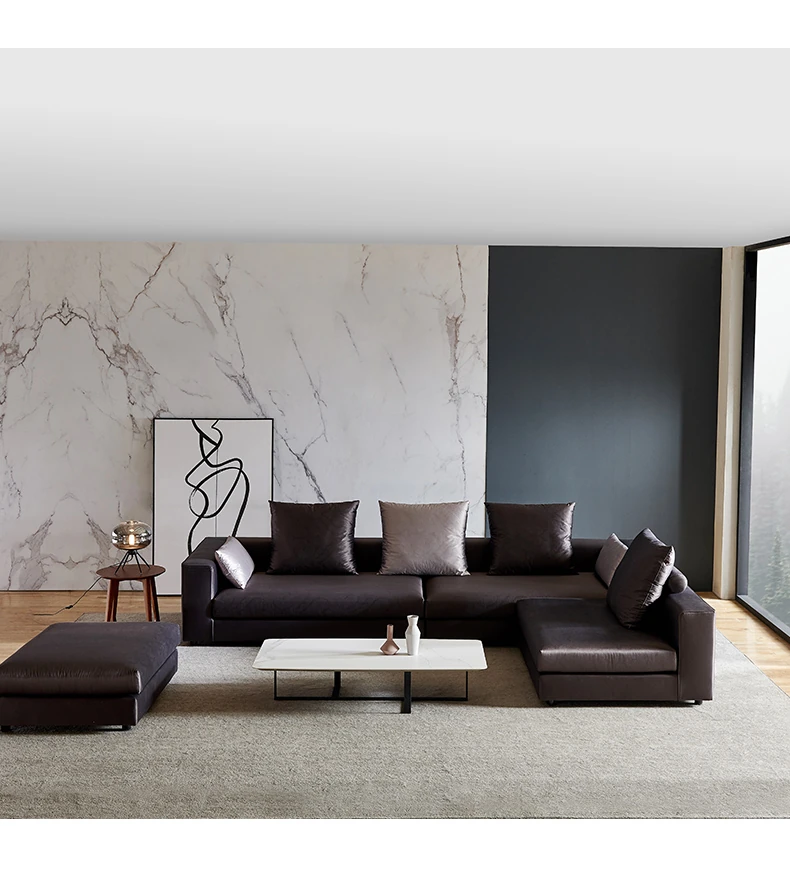 イタリアンミニマルコーナーソファ|モダンでシンプルなファブリックソファの角型コンビネーション|ラグジュアリー感あふれる広々としたリビングに最適!