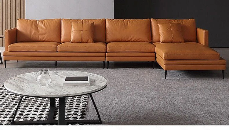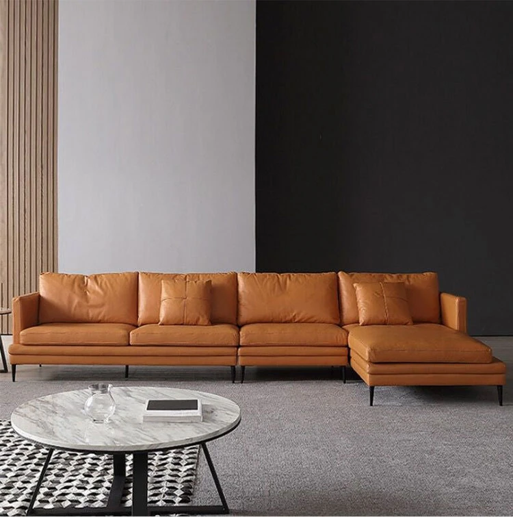 イタリアンスタイルの高級本革318型リビング用シンプルデザインダウンソファセット - 小型アパートに最適な本革カウチソファ!洗練されたデザインと快適な座り心地を兼ね備えています。