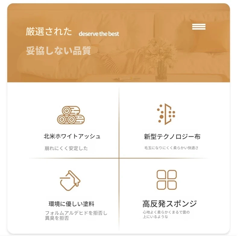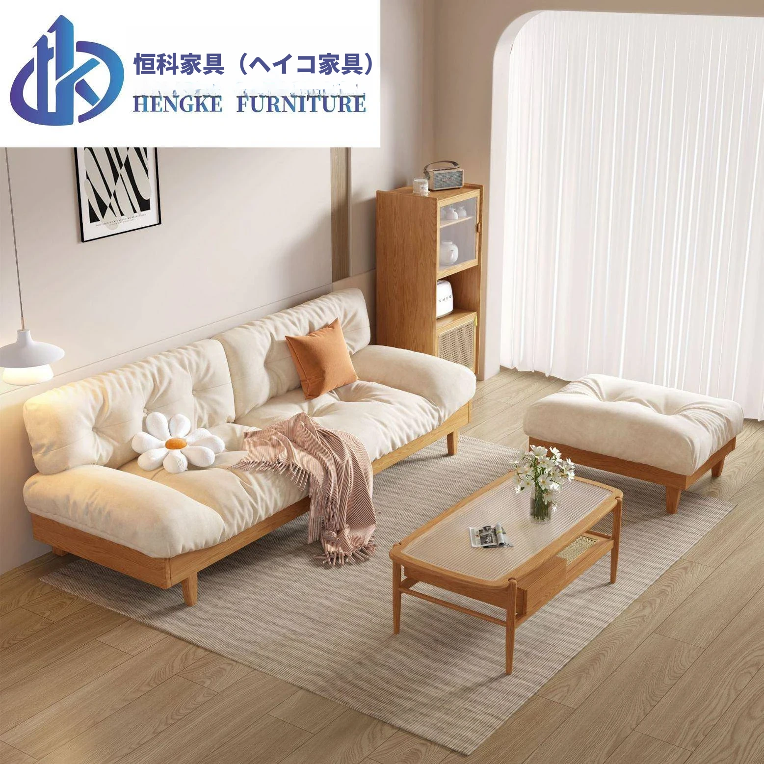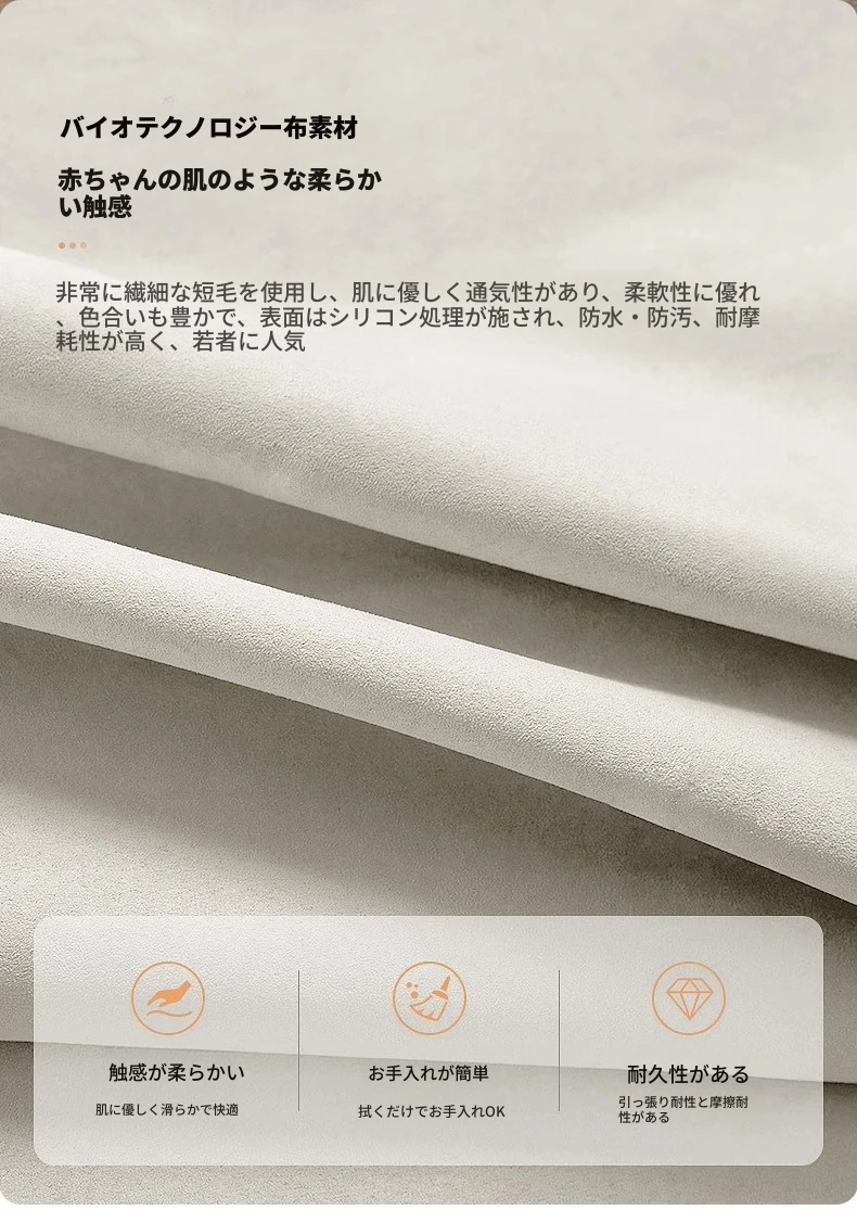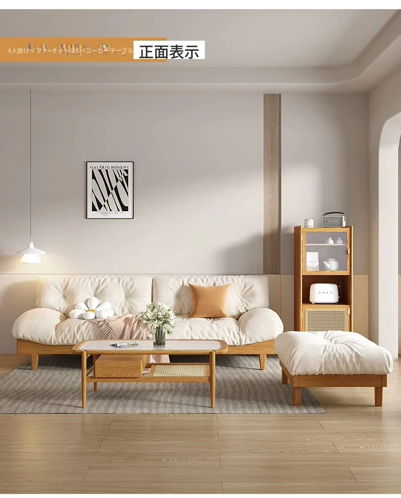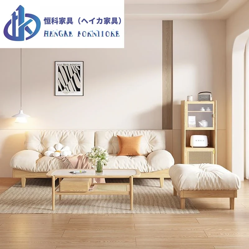 ホワイトアッシュの和風侘び寂びソファ、雲のようなデザインとクリーム色のフロント、テクスチャー豊かなファブリックで心地よい座り心地を実現。洗練されたインテリアにぴったりの一品です。