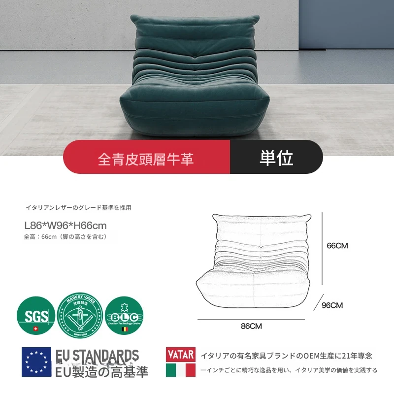 全青牛革-アームレストなしの一人掛け-0.86メートル