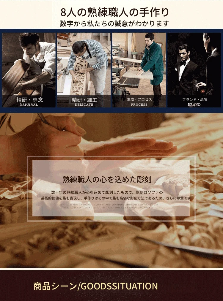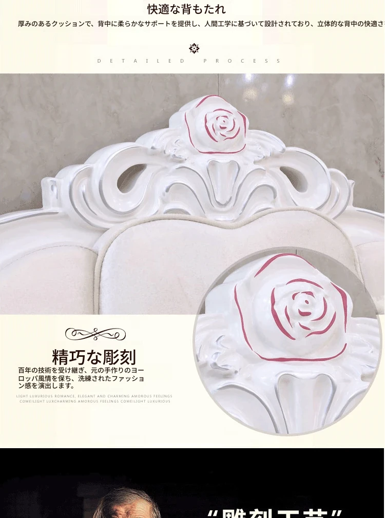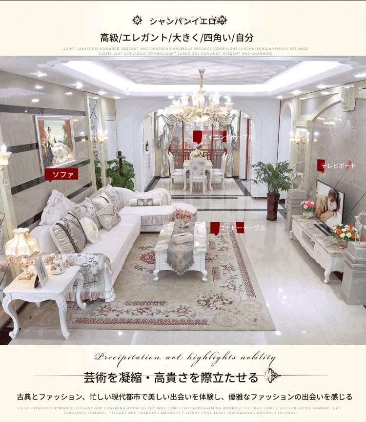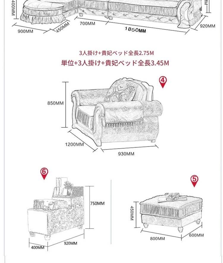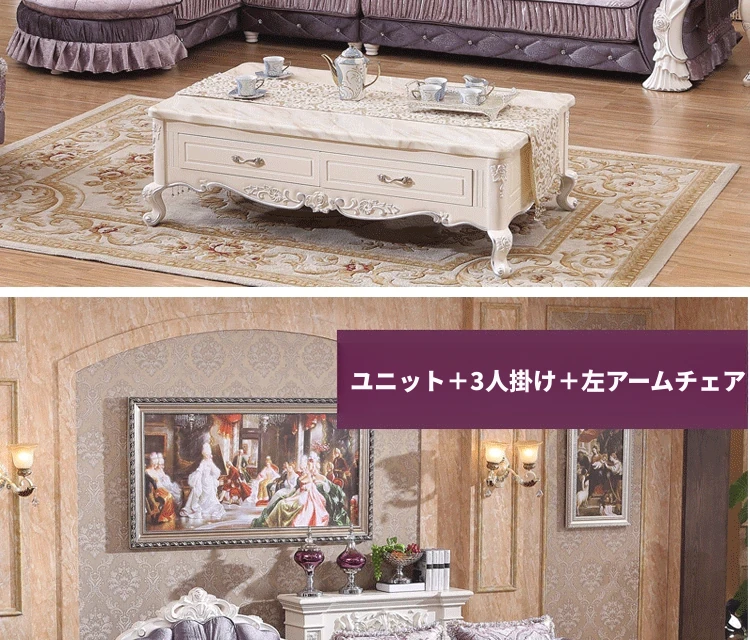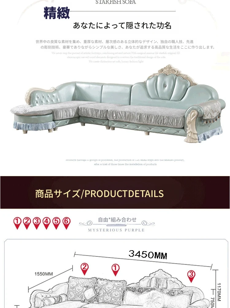 豪華な欧風布製ソファセット L字型&貴妃ソファ - 大小様々なリビングに最適!彫刻木材使用、エレガントな宮廷スタイルで、シンプルな欧風デザインが魅力的。あなたの空間をより特別に演出します!