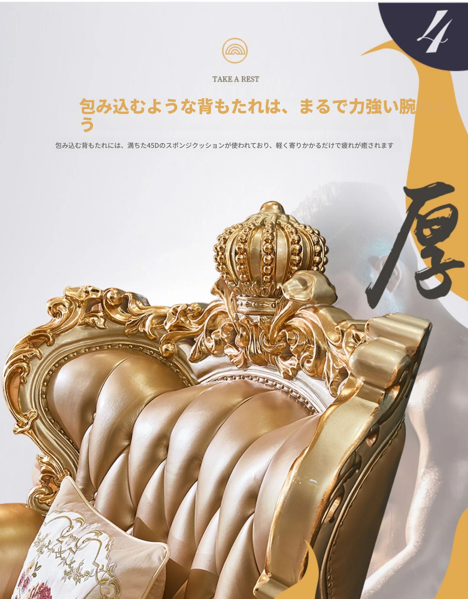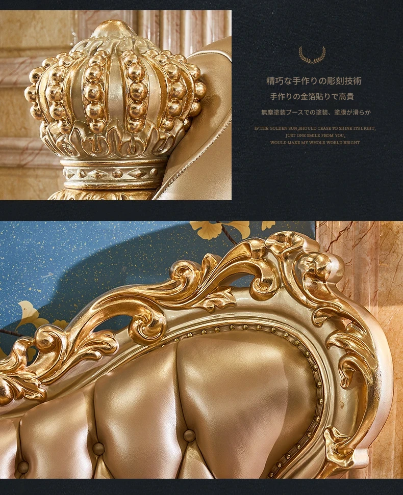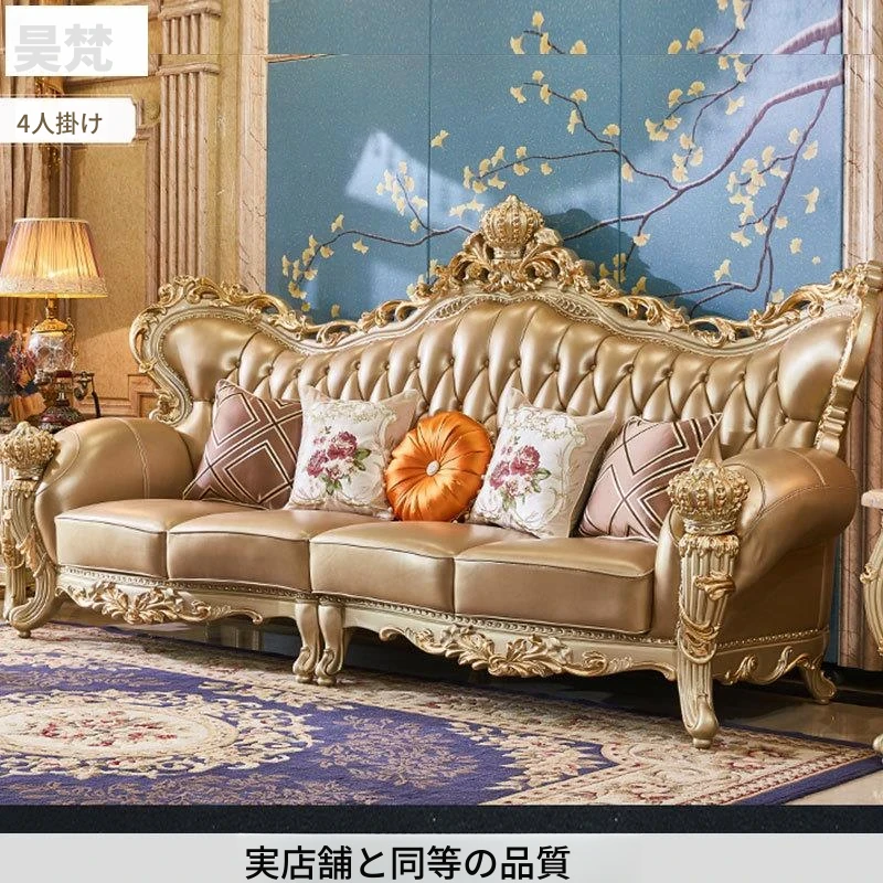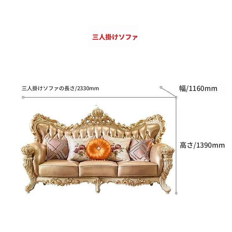 エレガントなヨーロピアンスタイルの豪華な本革ソファセット 2022年新作 高級感あふれる彫刻デザインのクラウン付きリビングルーム用豪華家具で、居心地良い空間を演出します。