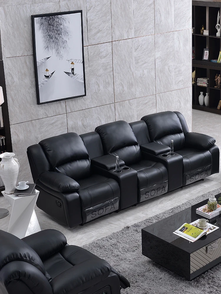 プライベートシアター用高級スペースカプセルソファー!多機能リビングルームセット、エレガントな欧風デザイン。電動式の2人掛け本革ソファーで、快適さとスタイルを両立。あなたのホームシアター体験を格上げ!