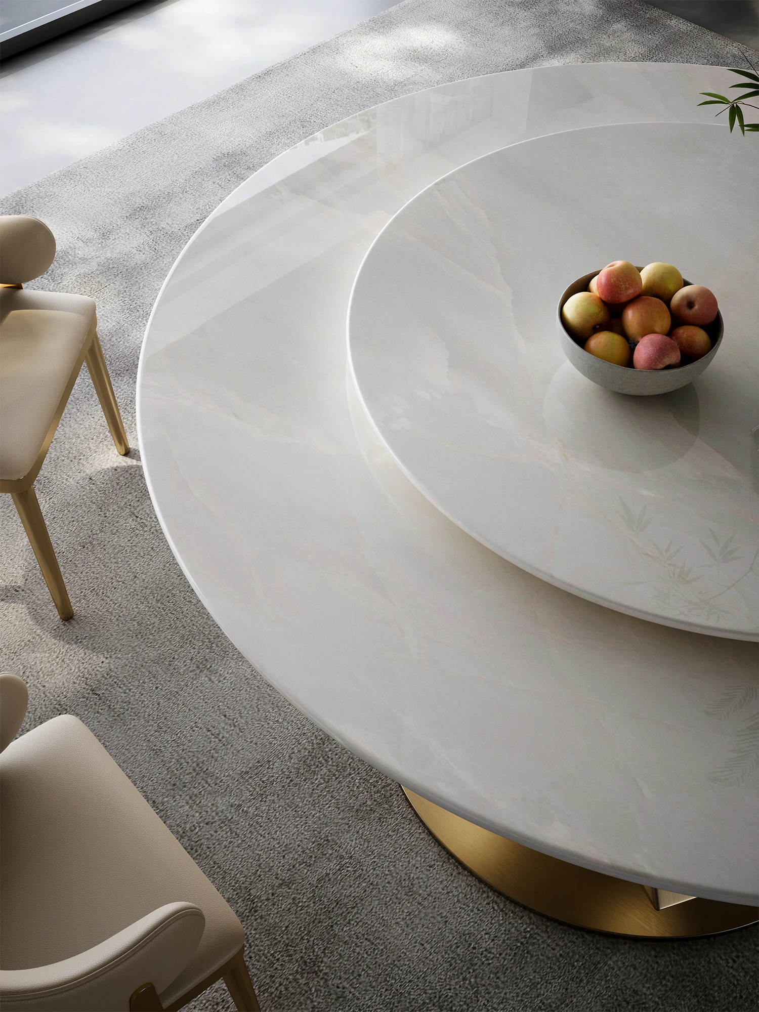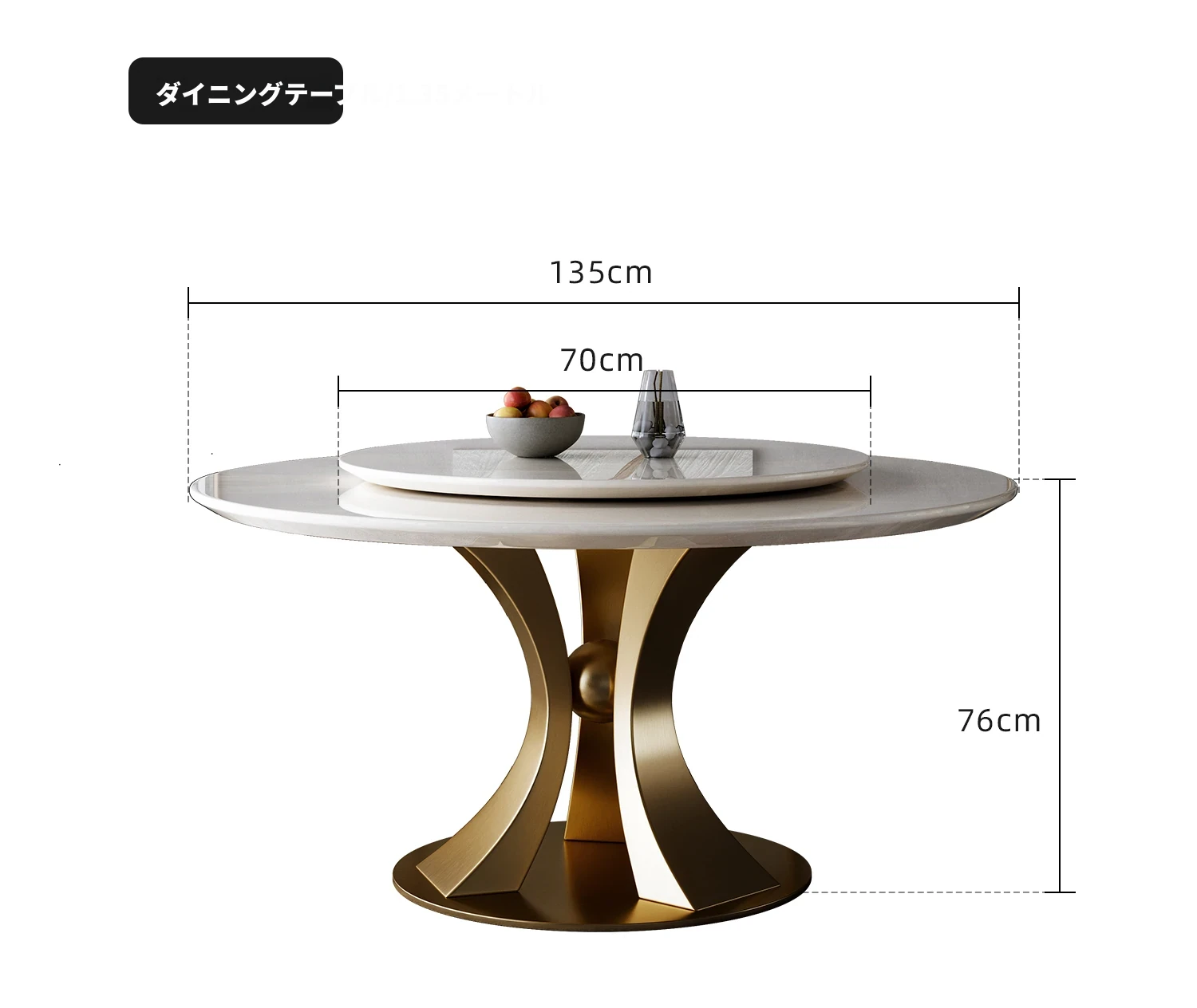 天然石の高級ダイニングテーブル1.35m【カリビン玉】