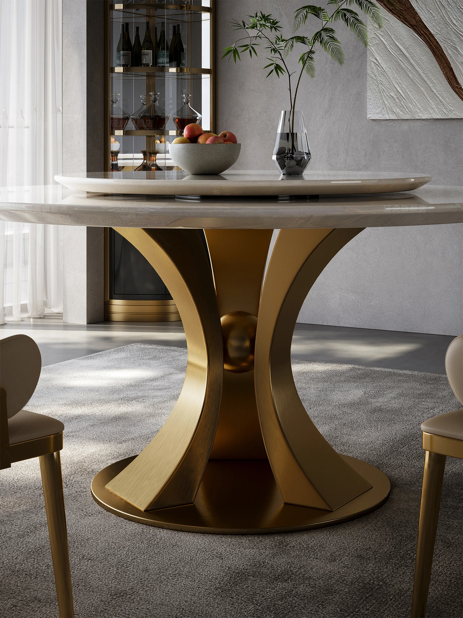 天然石の高級ダイニングテーブル1.5m【カリビン玉】
