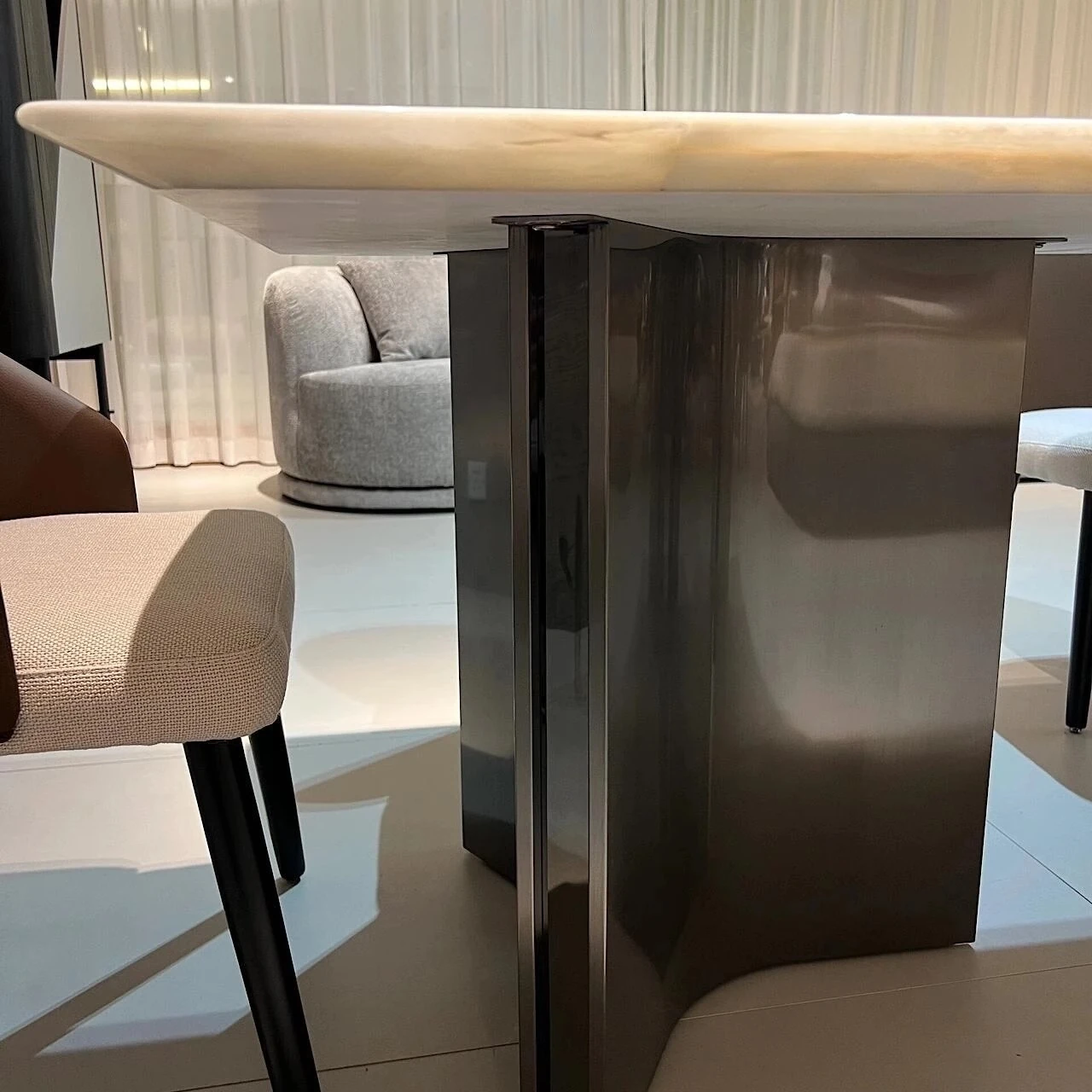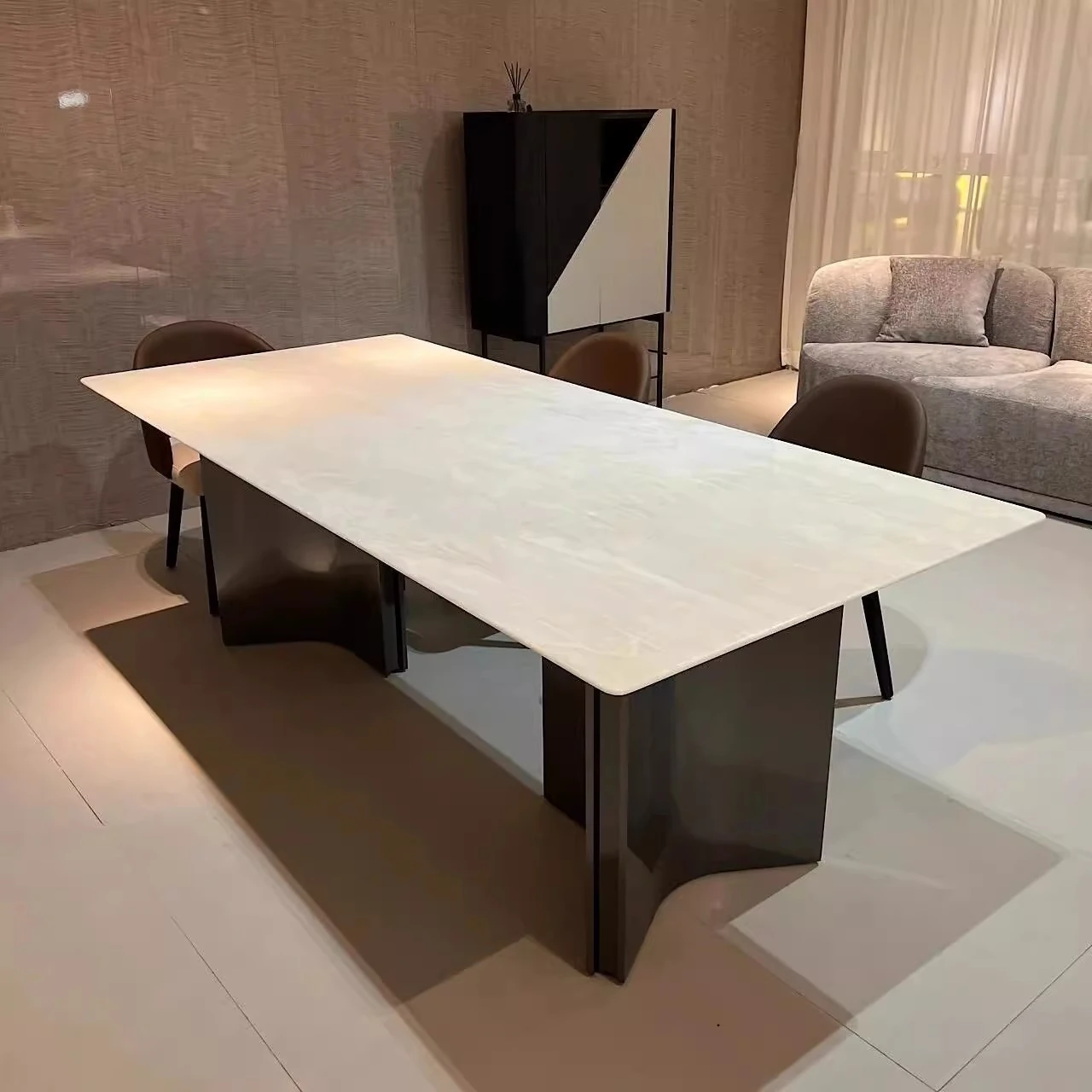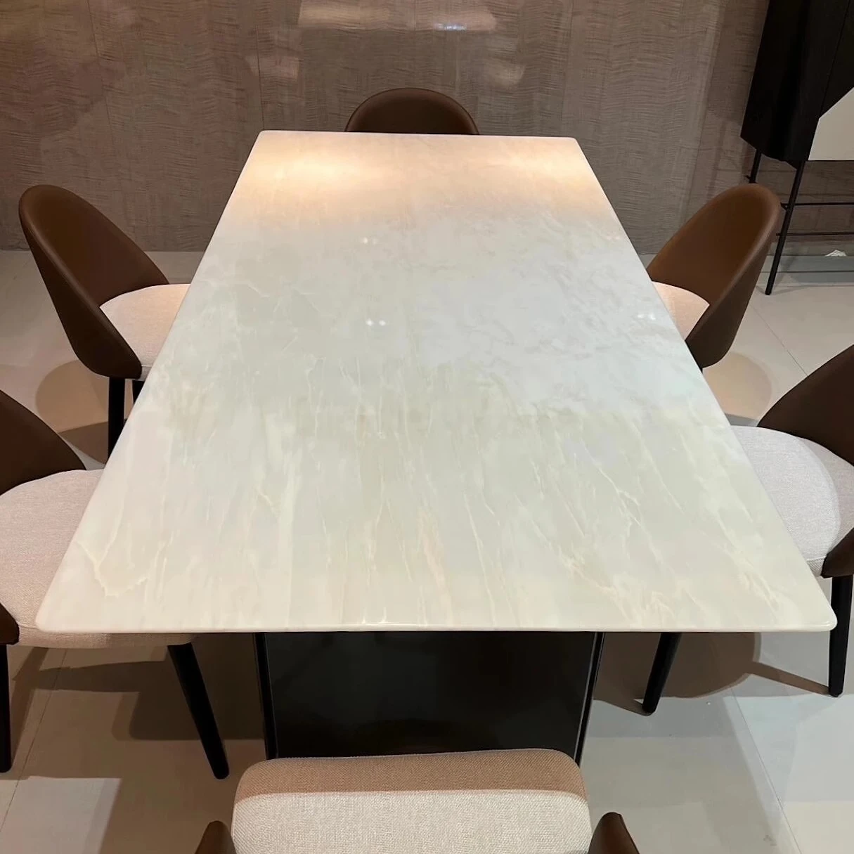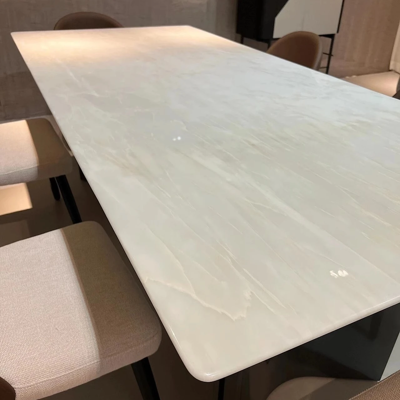 天然カリーニャ氷玉石製高級ダイニングテーブル - エレガントな大理石デザイン、イタリアンミニマリズムの長方形テーブル。高級住宅にぴったりの洗練されたスタイルで、ゲストを魅了する一品です!