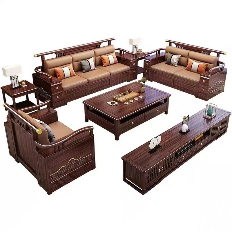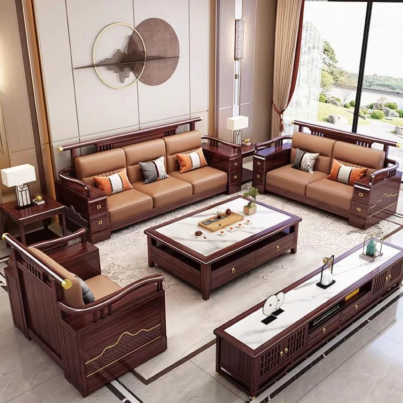 高級ウッドソファ ウーキン材使用の新中式デザイン 大型リビング向けのラグジュアリー家具 現代的な別荘スタイルのリビングルームに最適!