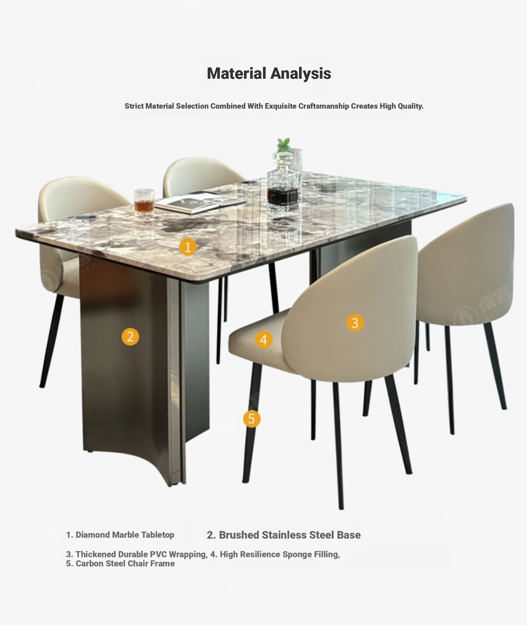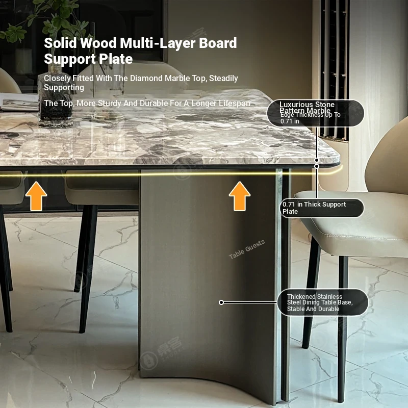 Luxury Stone Oreo Gray Marble Dining Table - Elegant Rectangular Design for Home Use, Crafted from Premium Natural Microcrystalline and Ultra-Crystalline Stone for a Touch of Sophistication.