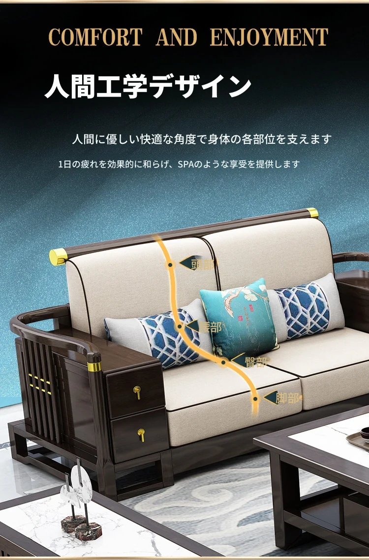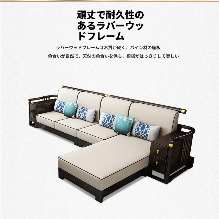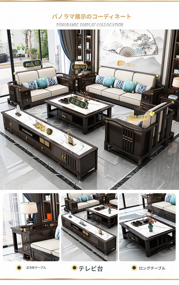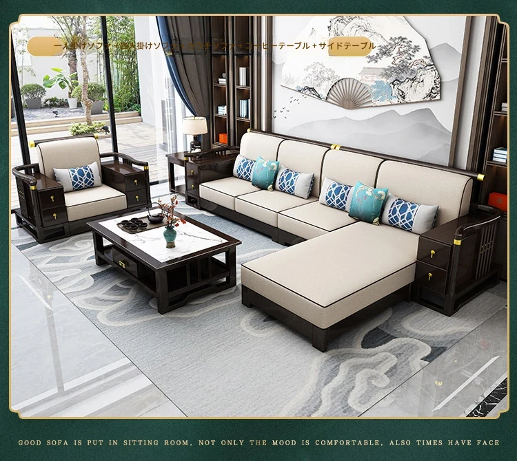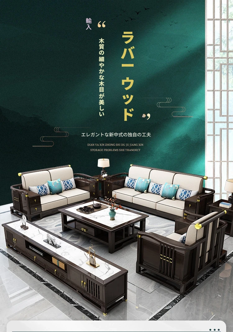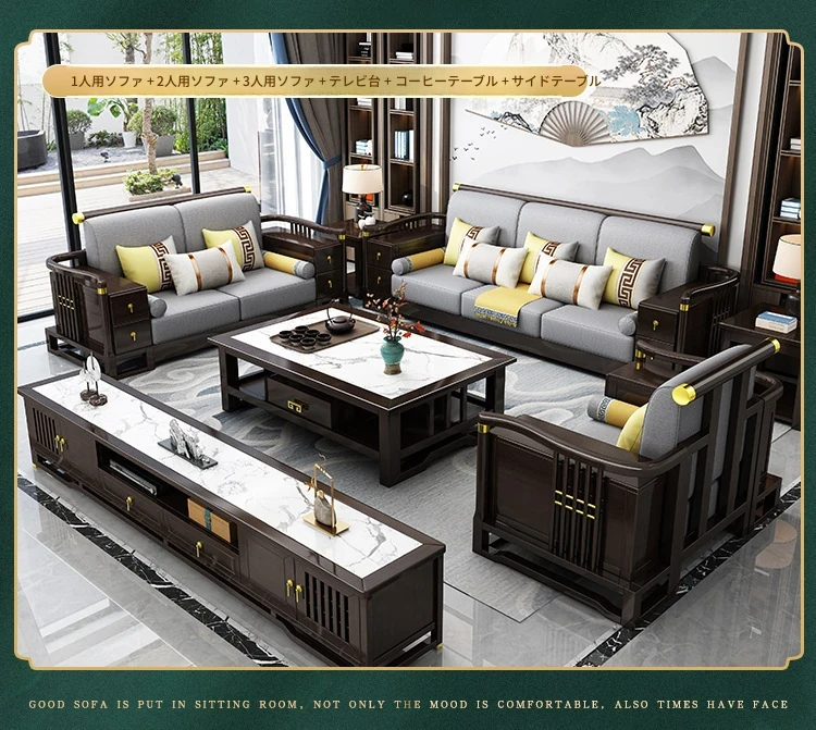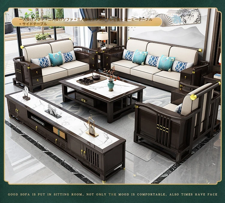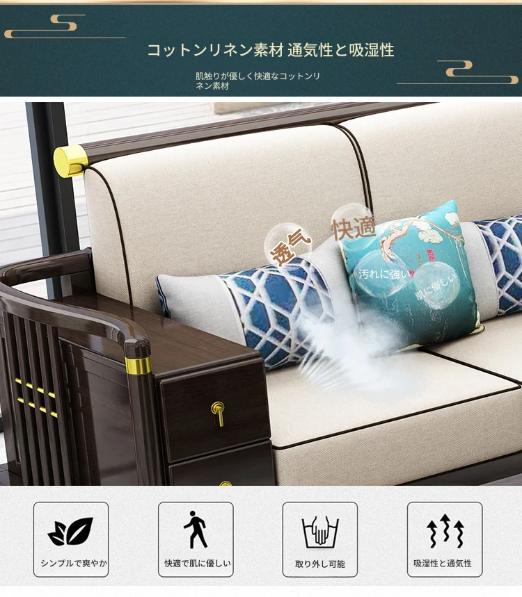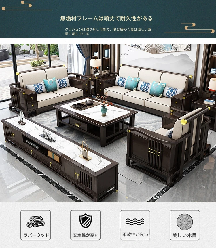 新中式スタイルの無垢材ソファセット - コンパクトでスタイリッシュなリビングにぴったり!冬も快適に過ごせるLC-9906#、大小様々な空間にフィットする贅沢なデザイン。