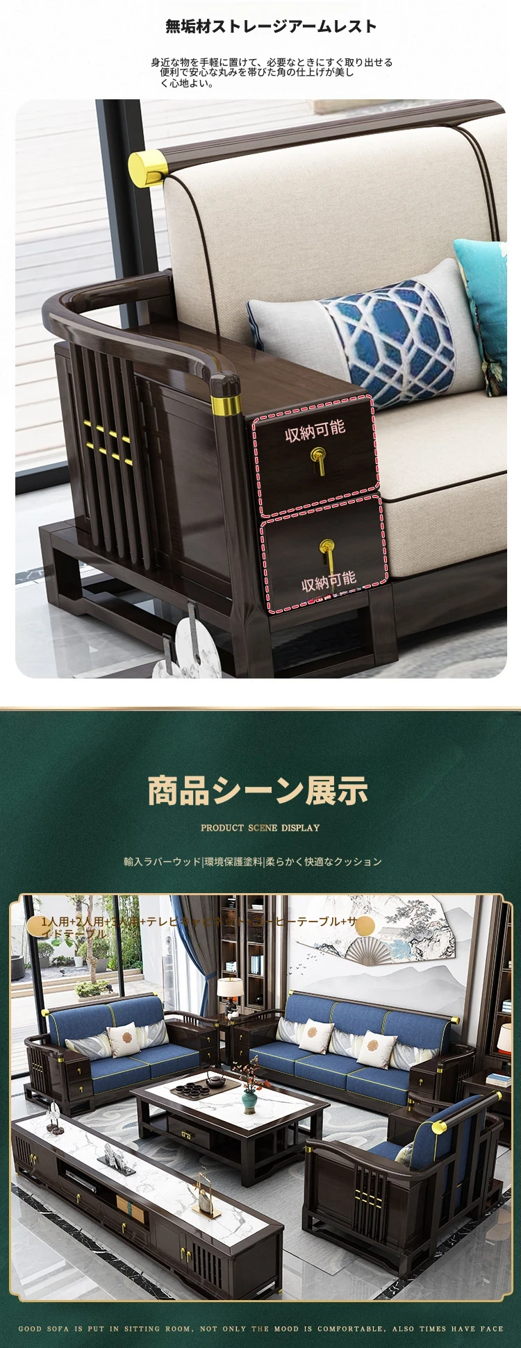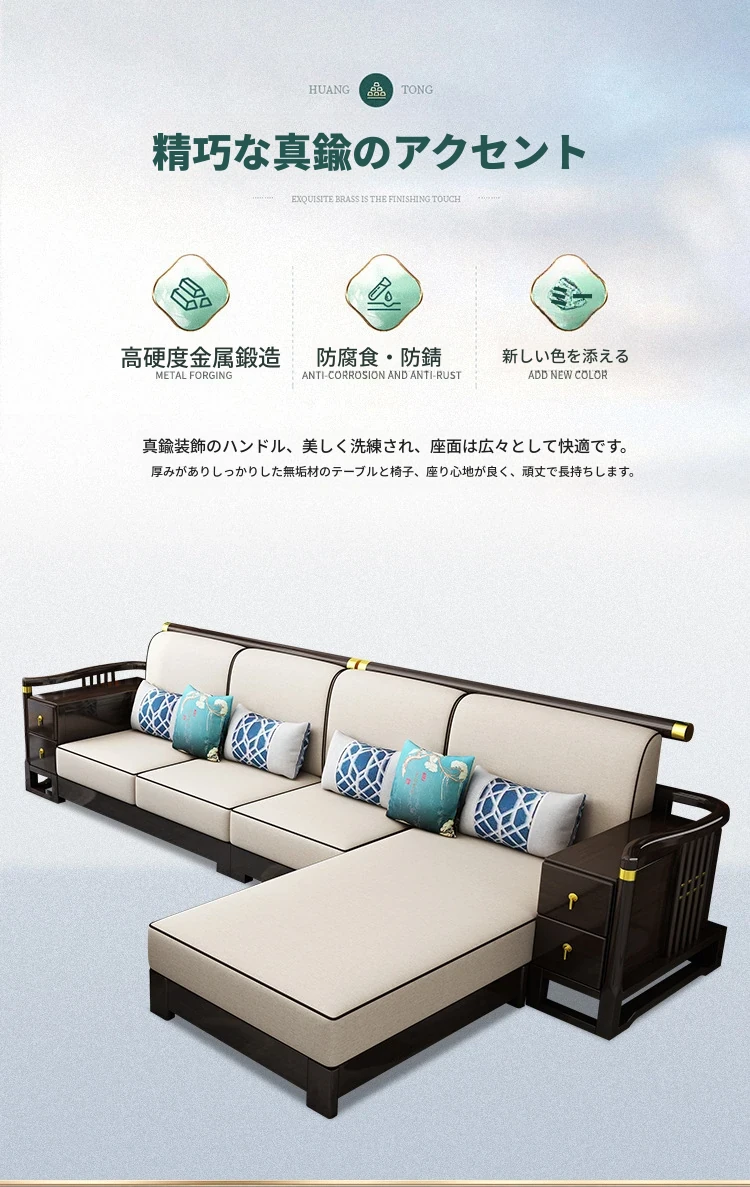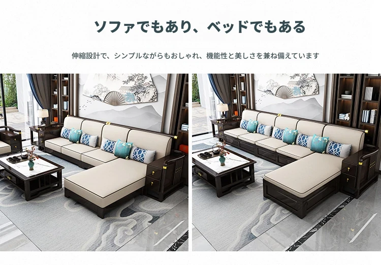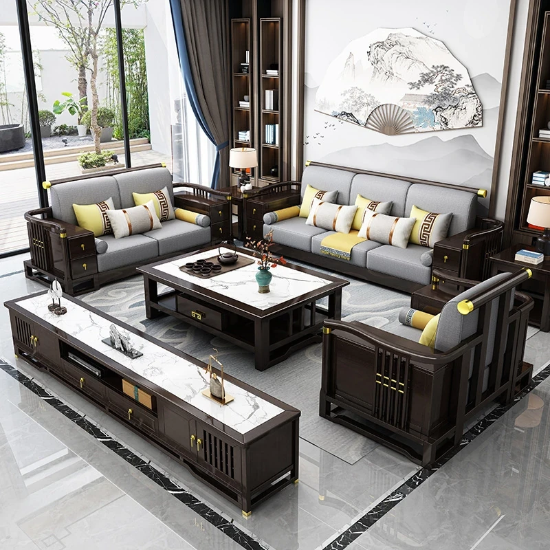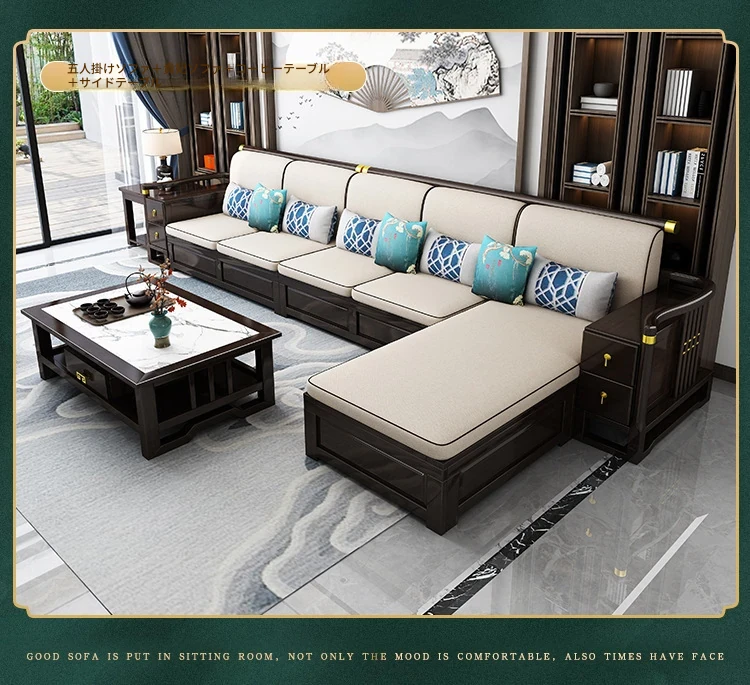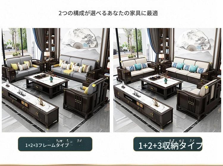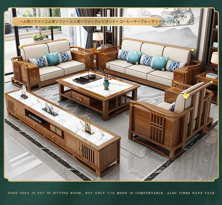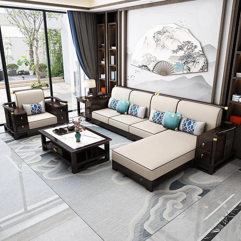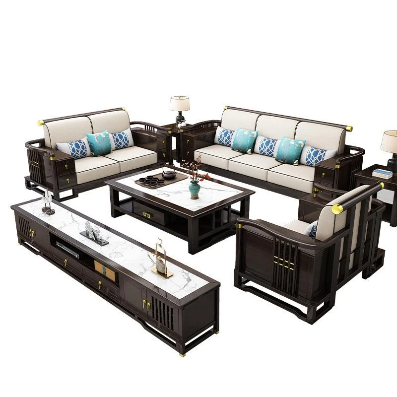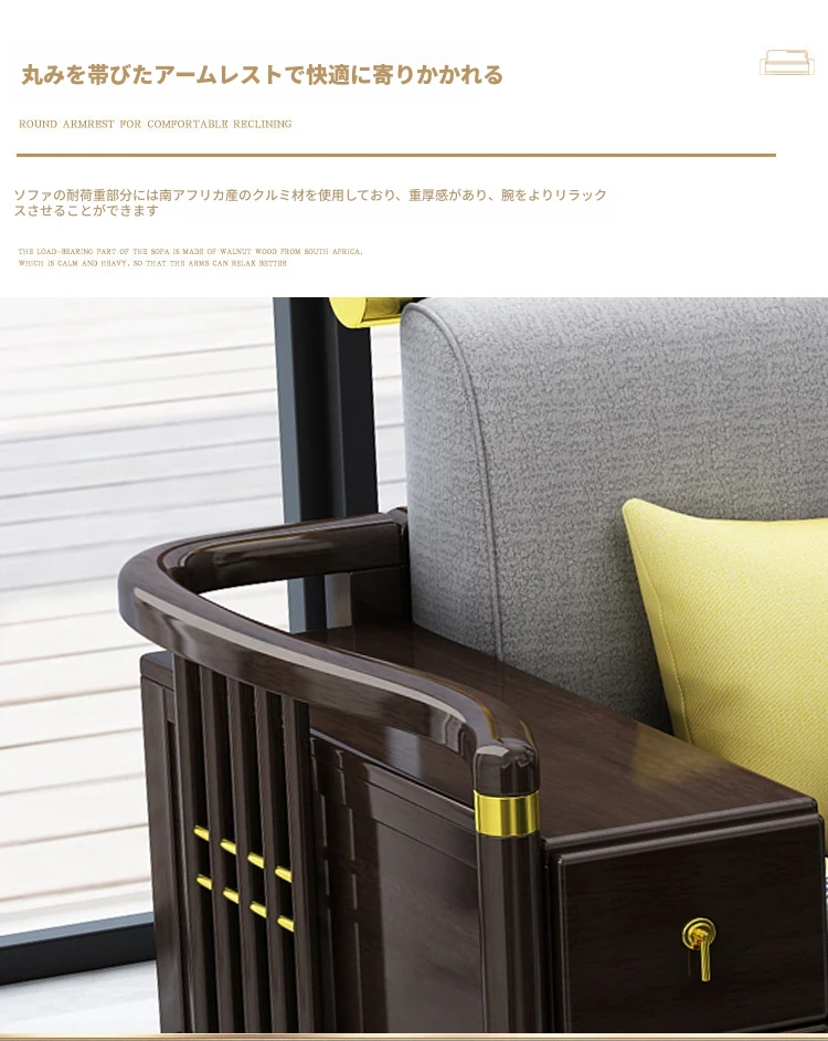 新中式スタイルの無垢材ソファセット - コンパクトでスタイリッシュなリビングにぴったり!冬も快適に過ごせるLC-9906#、大小様々な空間にフィットする贅沢なデザイン。