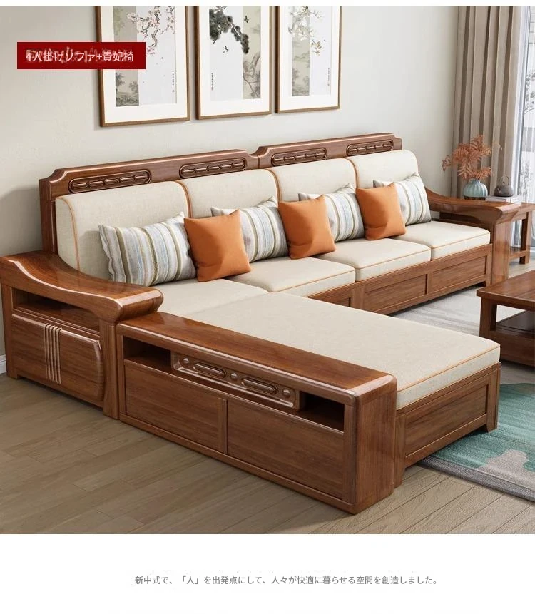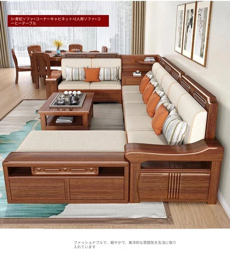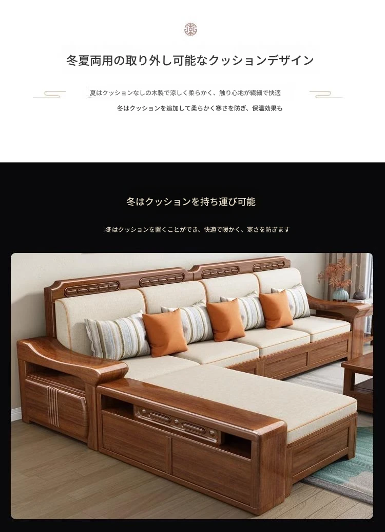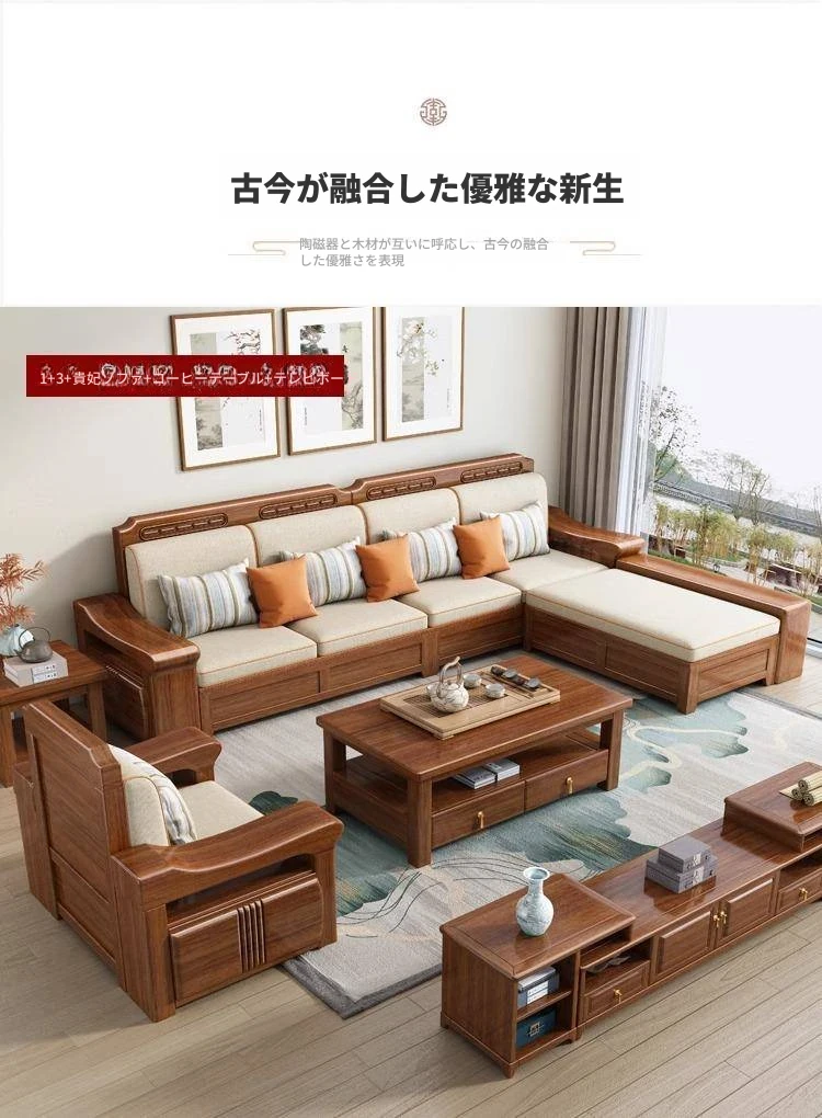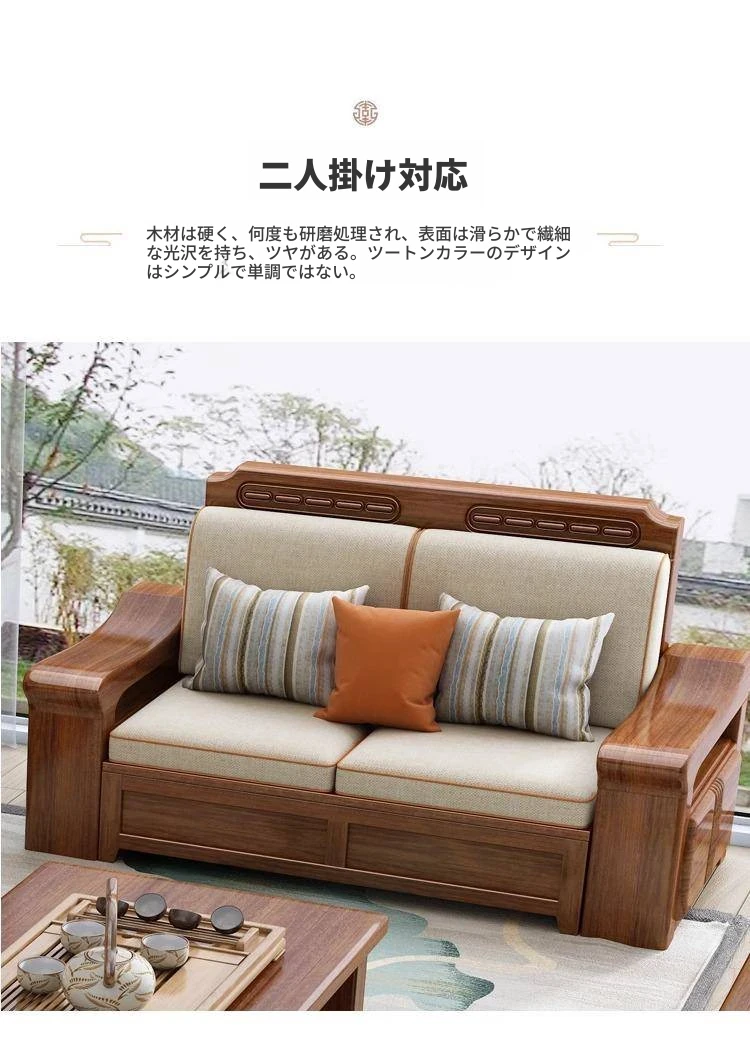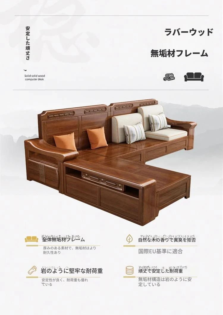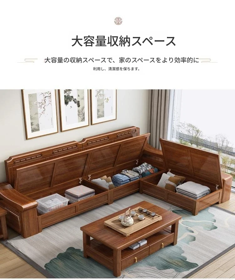 モダン中華スタイルの全木製ソファ、コーナーベンチ付き!小さなお部屋にもぴったりなデザインで、温かみのある木の質感が魅力的。リビングをスタイリッシュに演出する家具です。