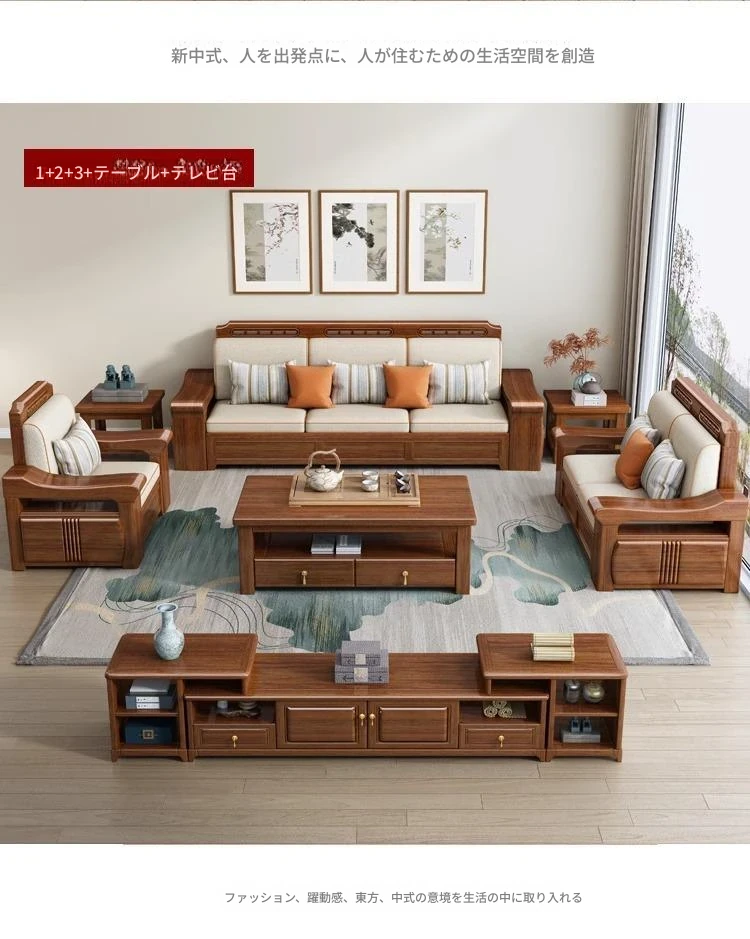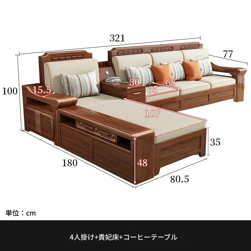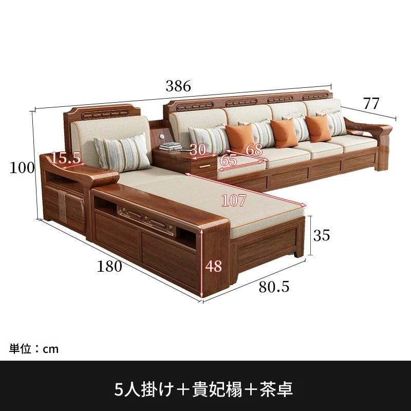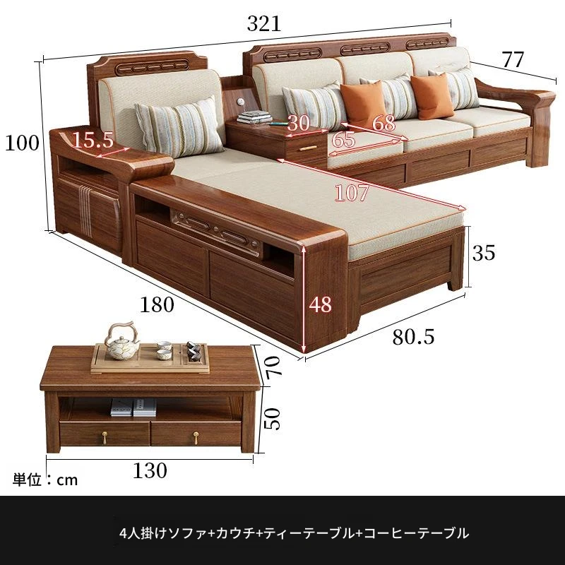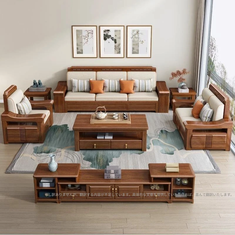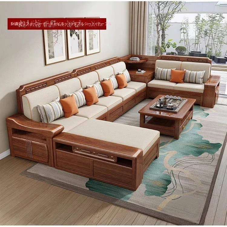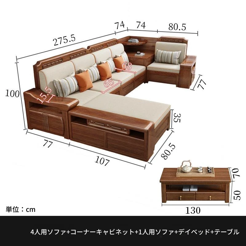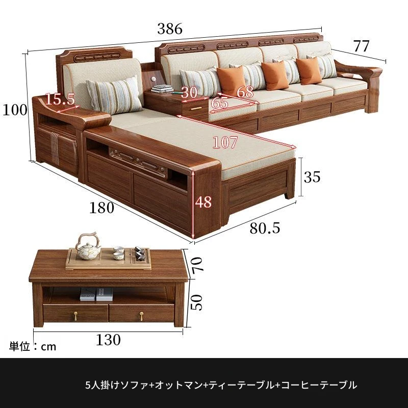 モダン中華スタイルの全木製ソファ、コーナーベンチ付き!小さなお部屋にもぴったりなデザインで、温かみのある木の質感が魅力的。リビングをスタイリッシュに演出する家具です。