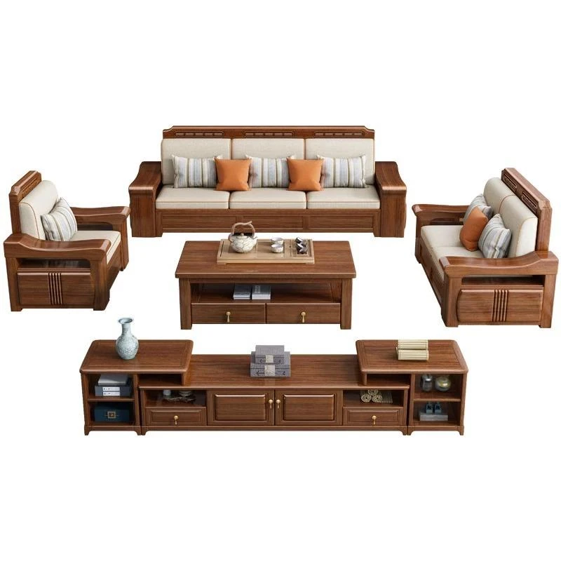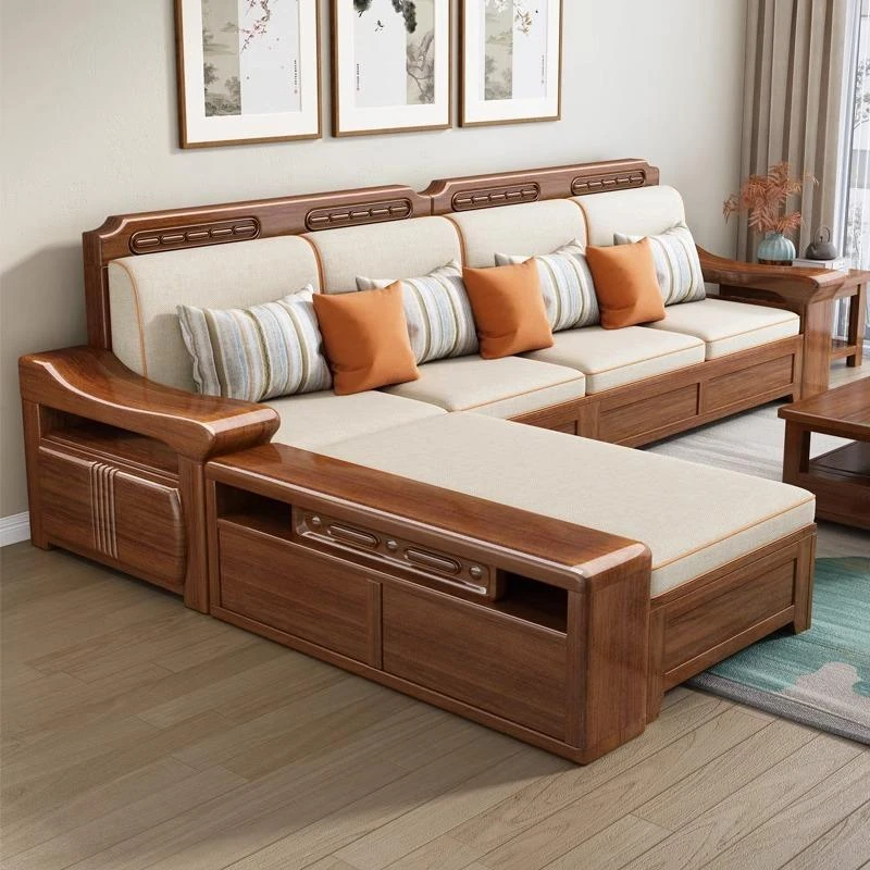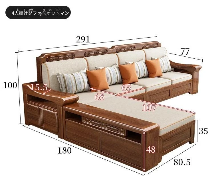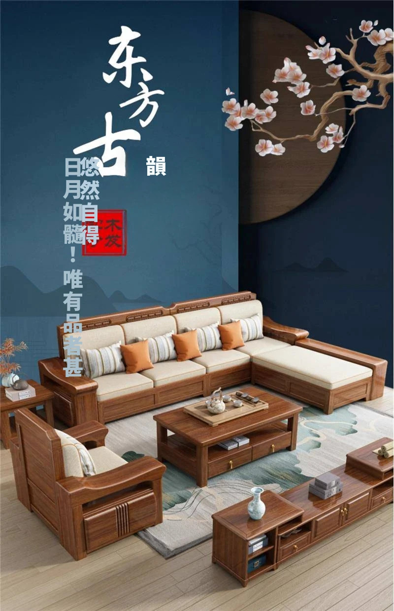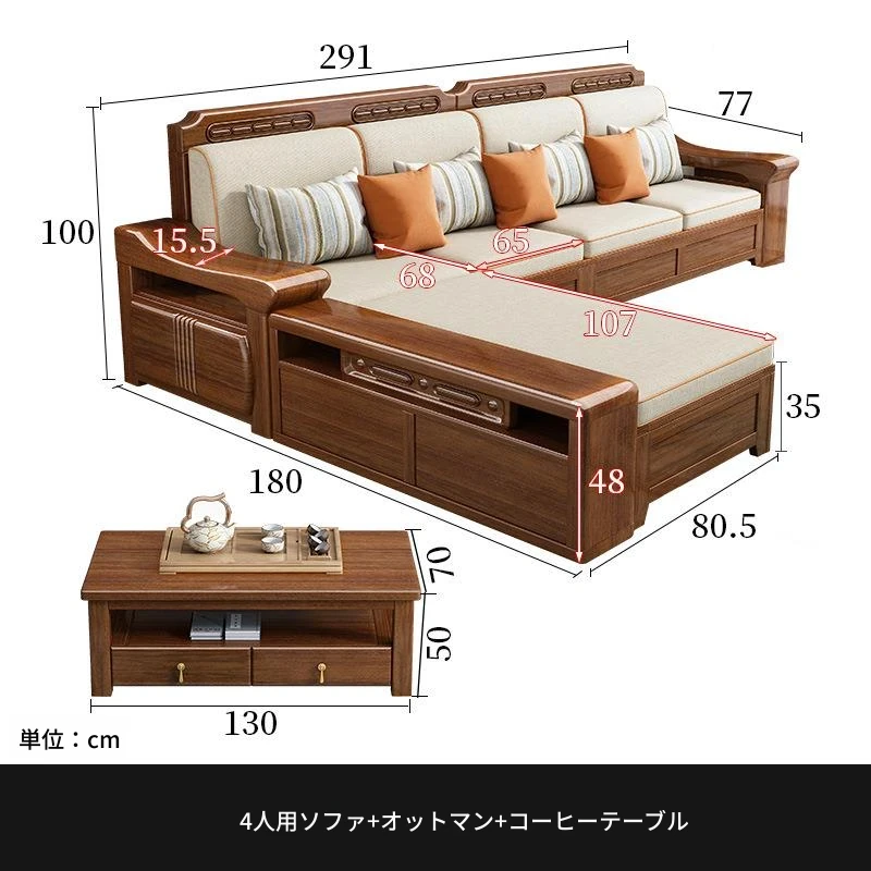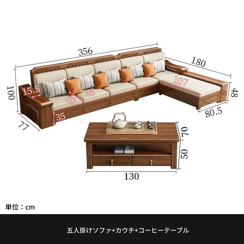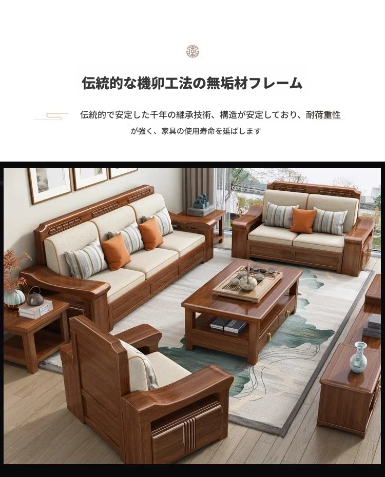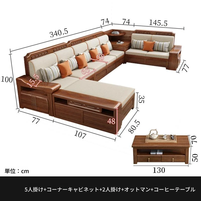 モダン中華スタイルの全木製ソファ、コーナーベンチ付き!小さなお部屋にもぴったりなデザインで、温かみのある木の質感が魅力的。リビングをスタイリッシュに演出する家具です。