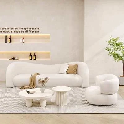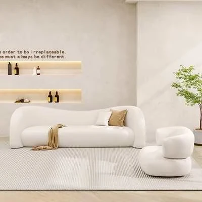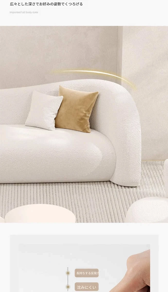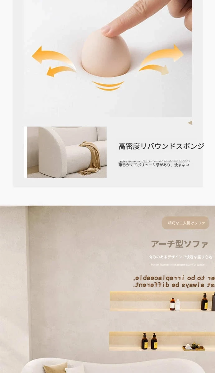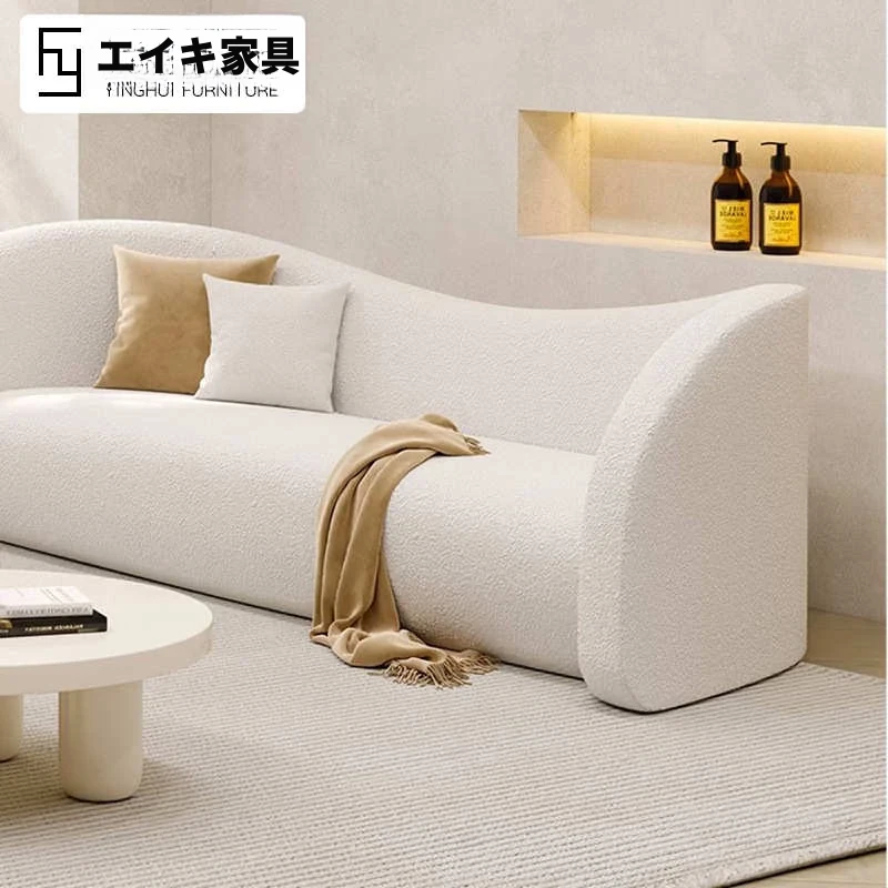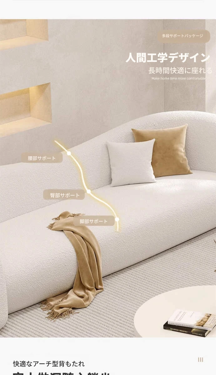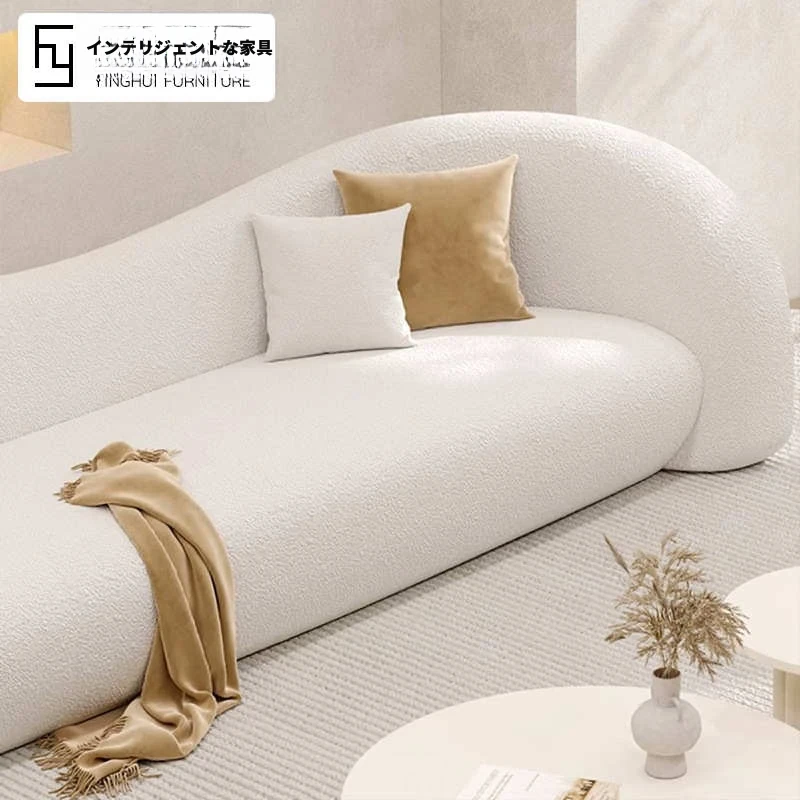 猫の爪から守る!シンプルでモダンな曲線デザインの防猫抓皮布ソファ。小さなリビングに最適で、服飾店や美容院にもぴったりのミニマリストスタイル。快適さとスタイルを両立させた理想のソファ!