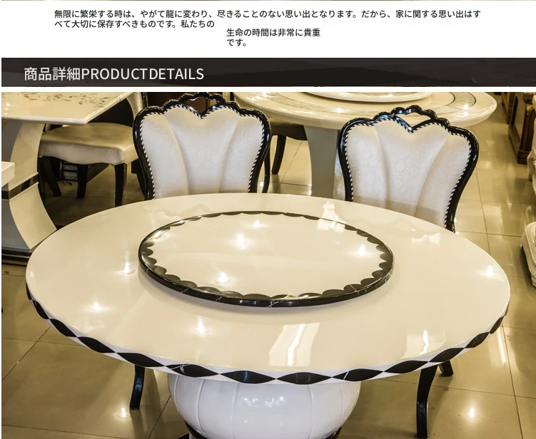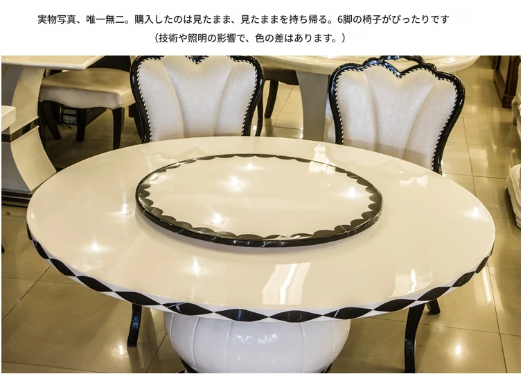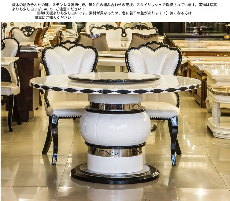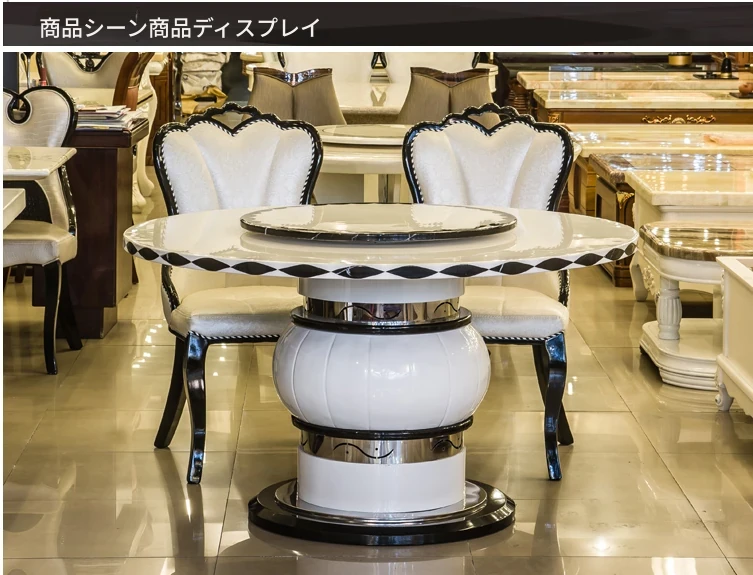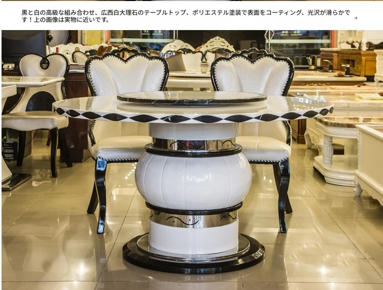 エレガントな欧風大理石ダイニングテーブルセット モダンミニマルデザイン 6人用円形テーブル 回転式天然木製テーブルで食事を楽しもう!