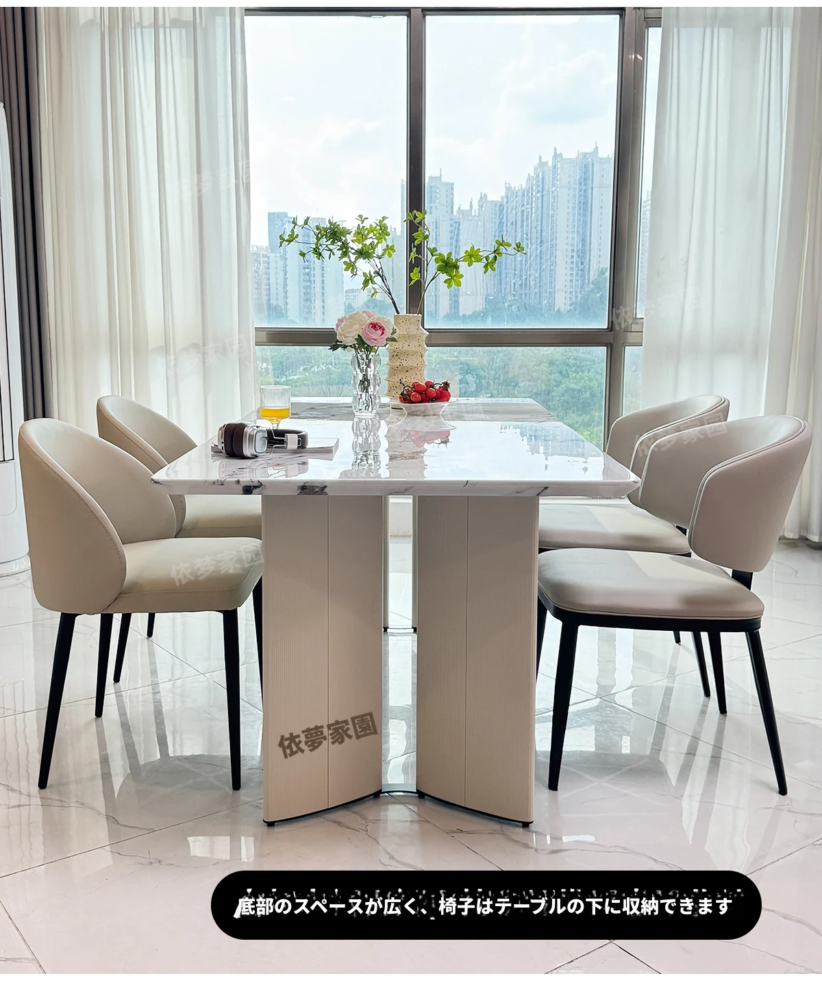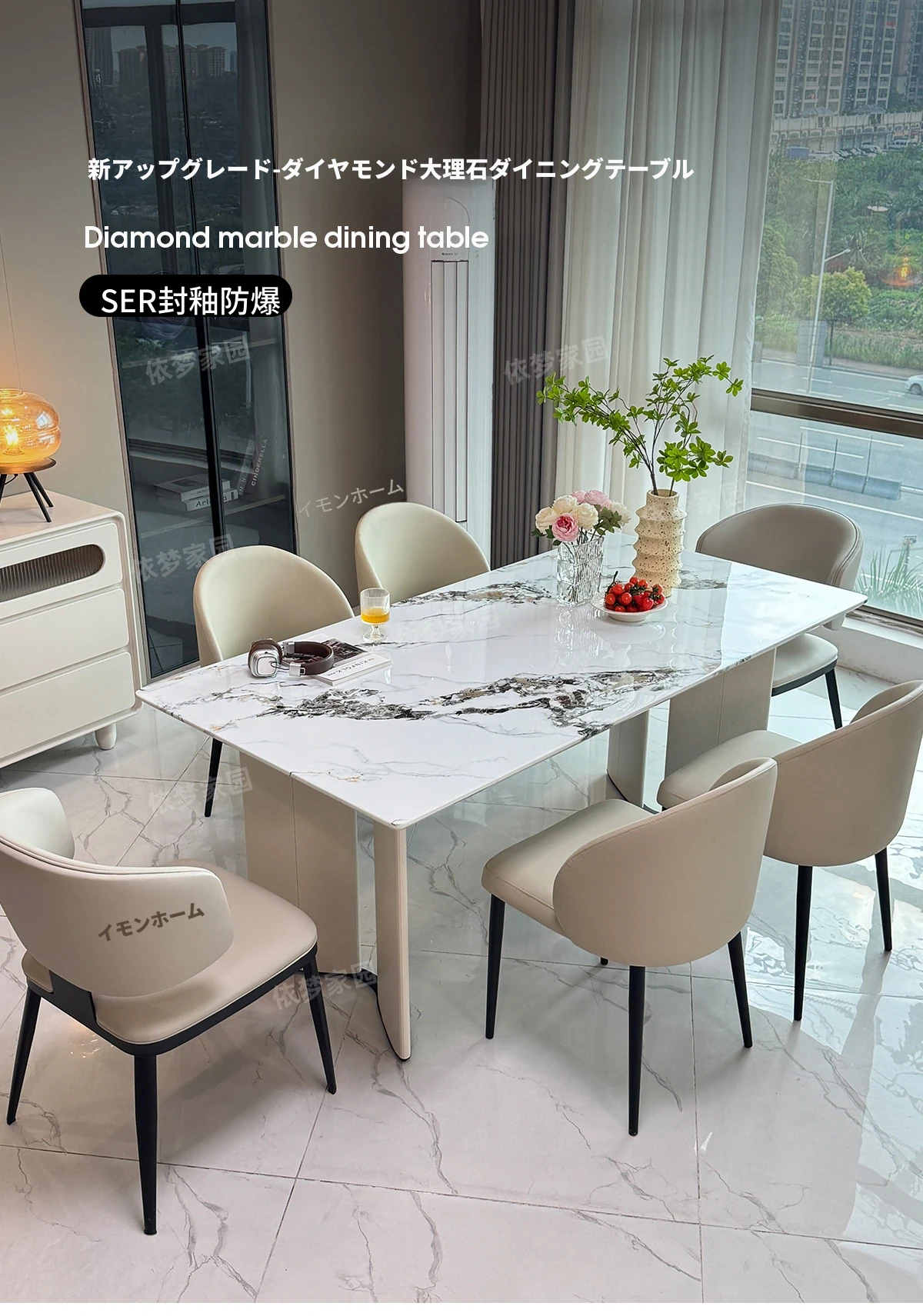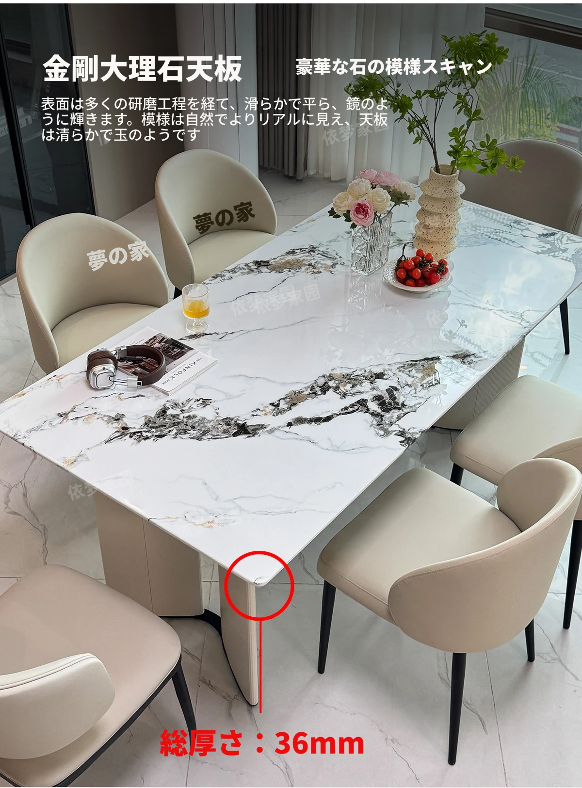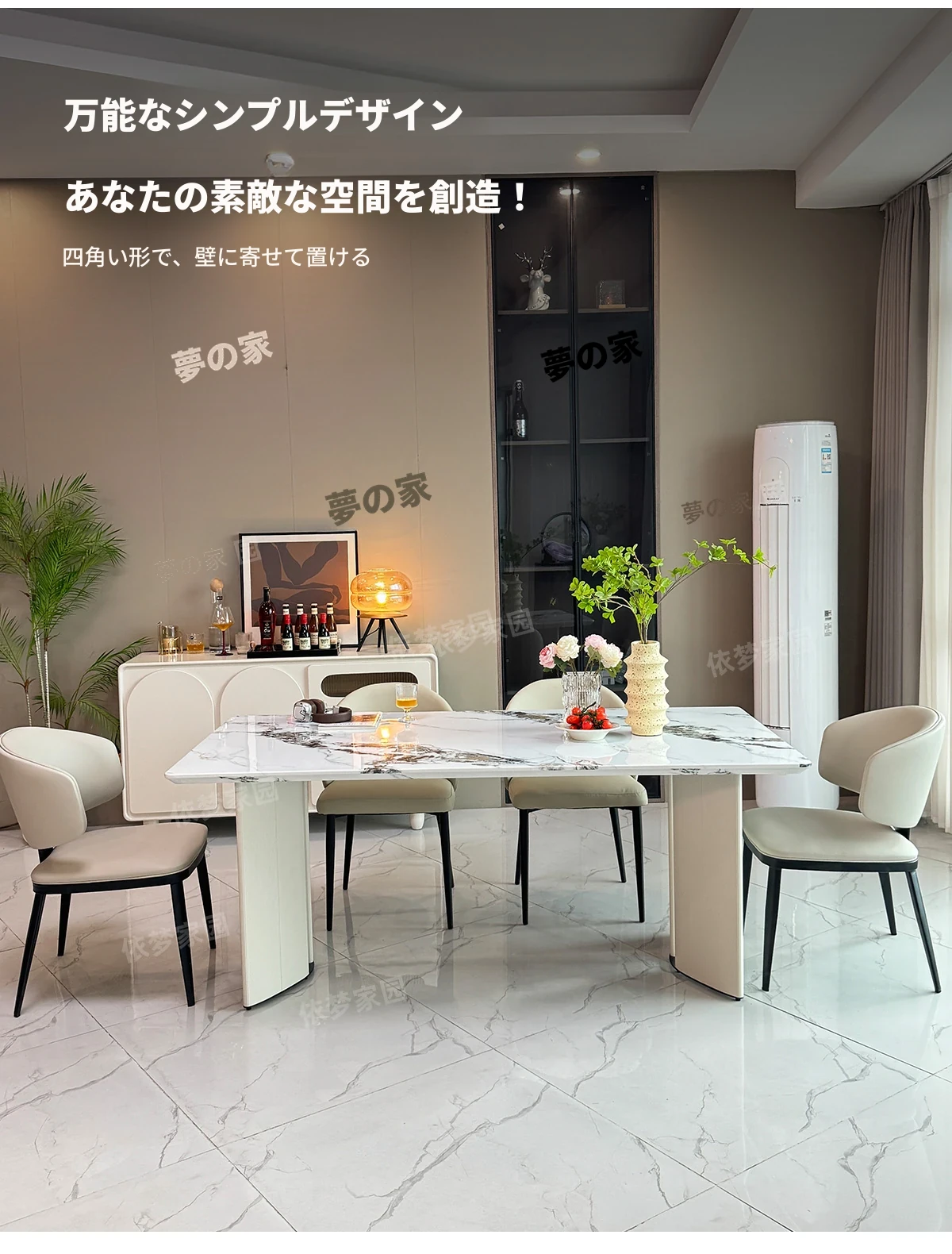 イタリアンミニマル大理石ダイニングテーブル&チェアセット|現代的なシンプルさとラグジュアリー感を兼ね備えた長方形テーブル|おしゃれな家族の食卓に最適!