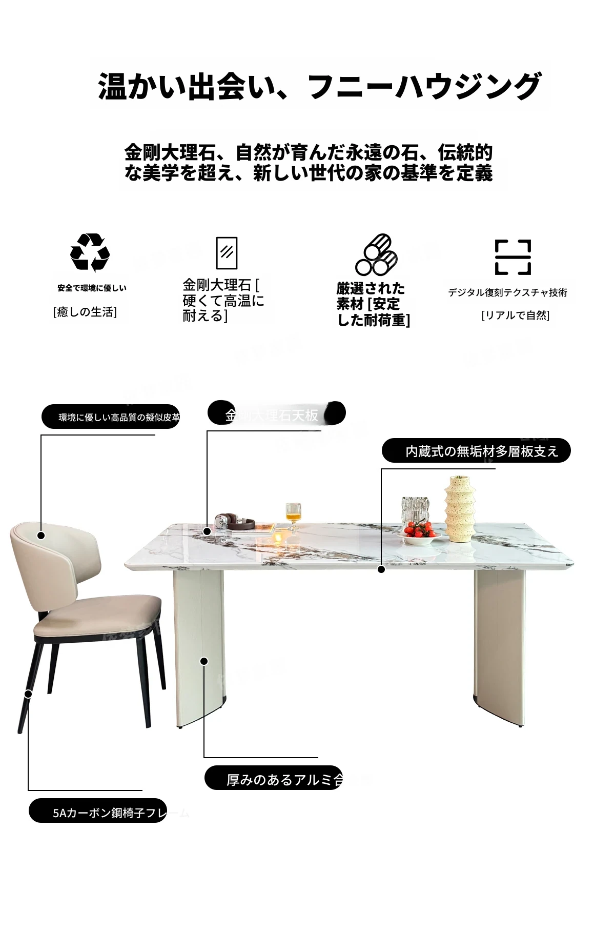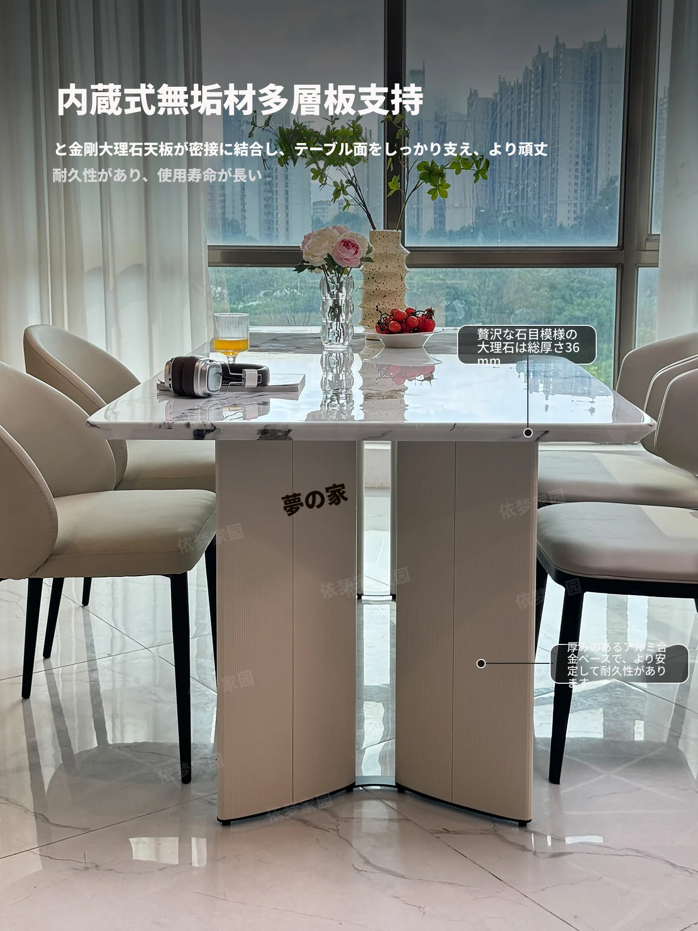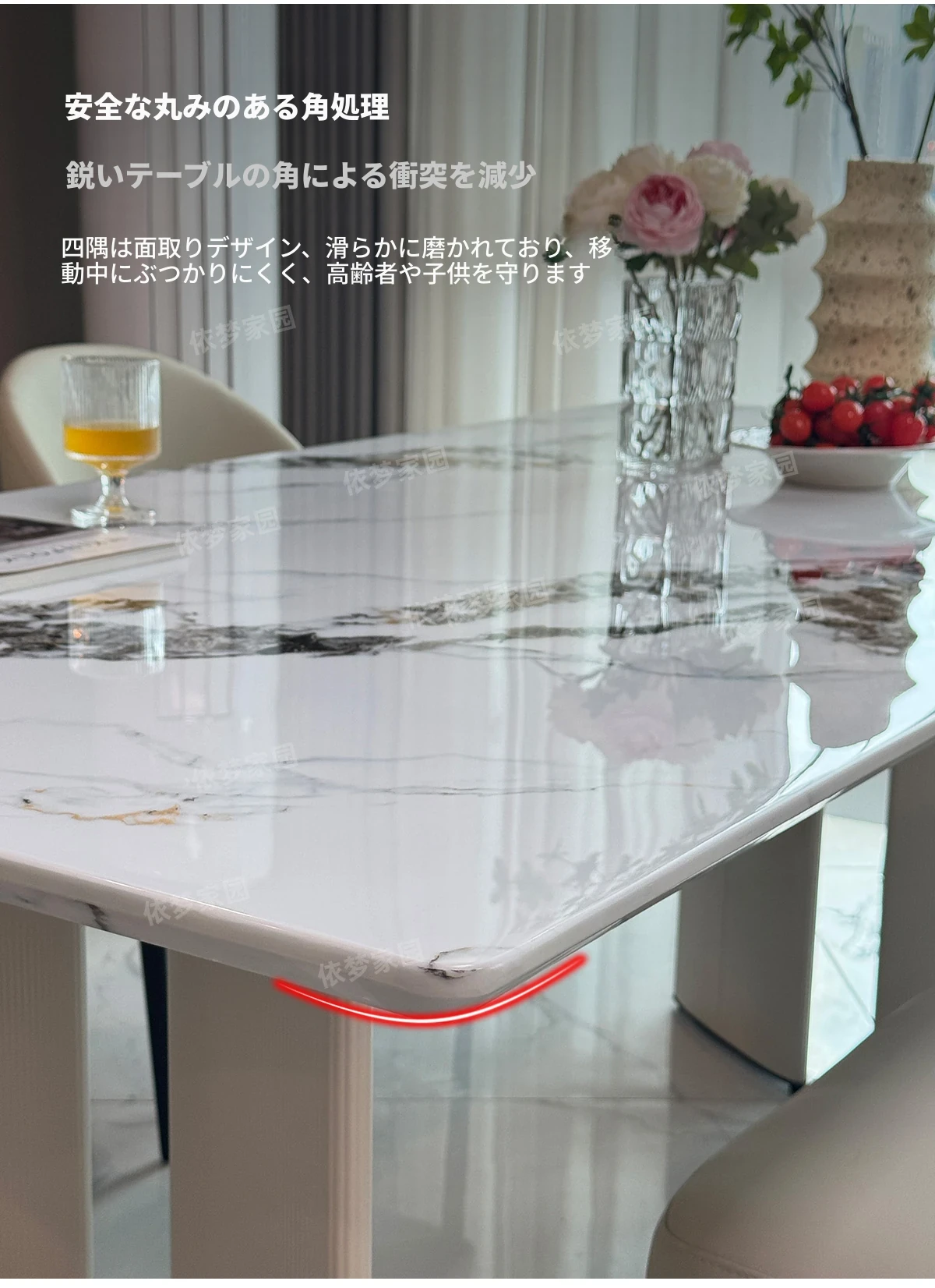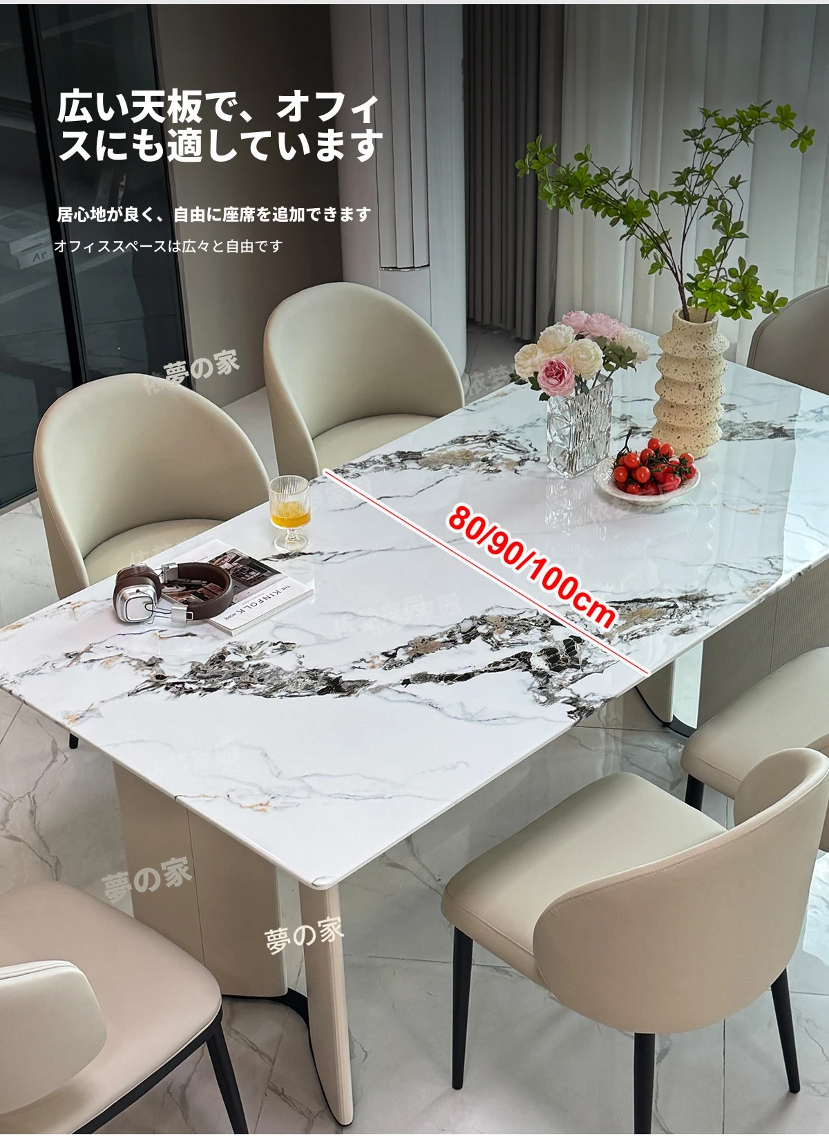イタリアンミニマル大理石ダイニングテーブル&チェアセット|現代的なシンプルさとラグジュアリー感を兼ね備えた長方形テーブル|おしゃれな家族の食卓に最適!