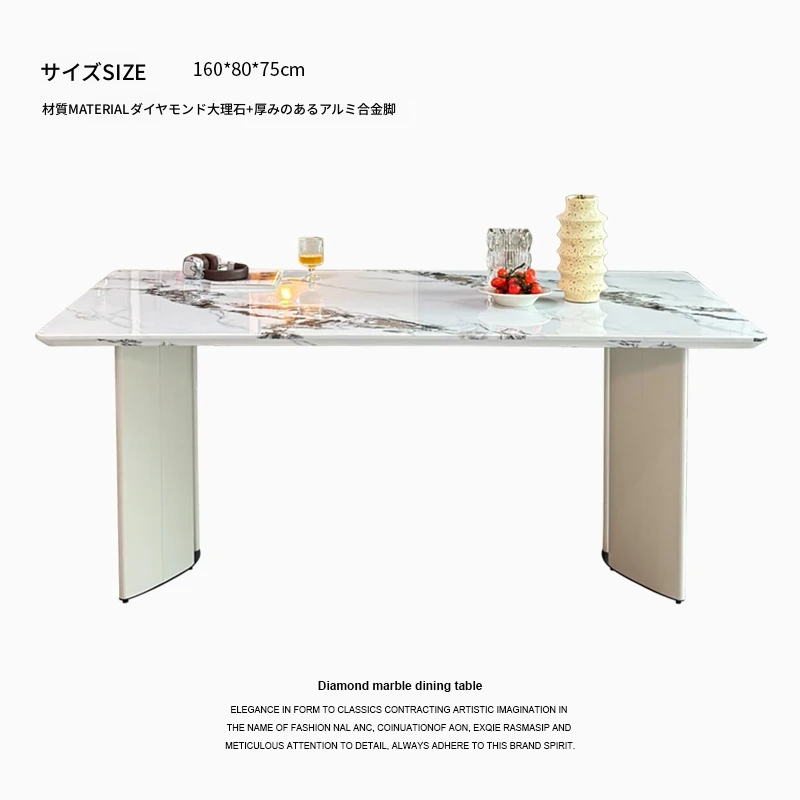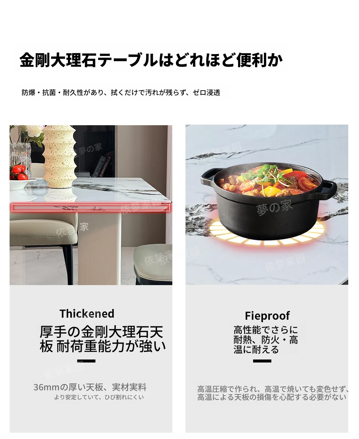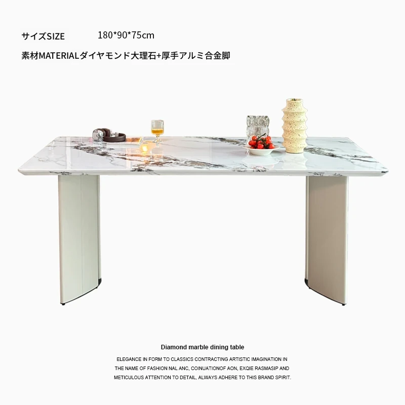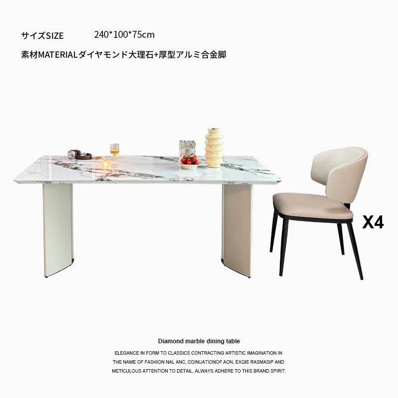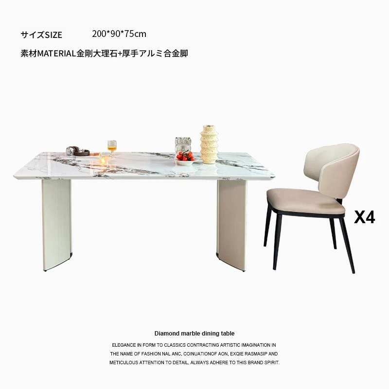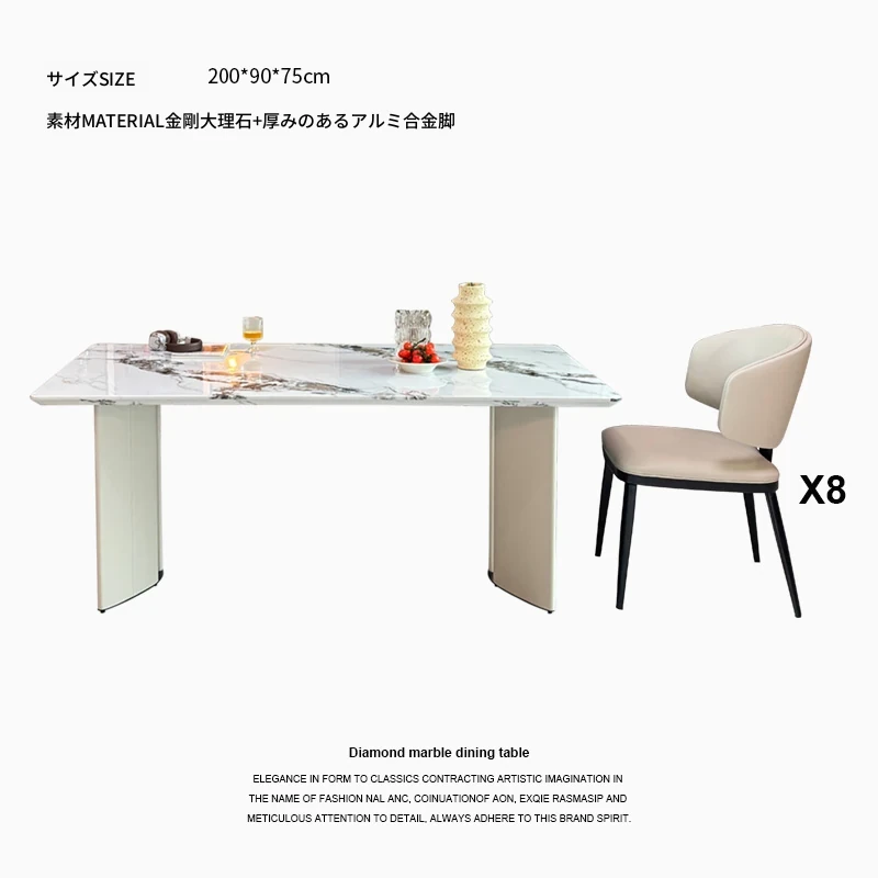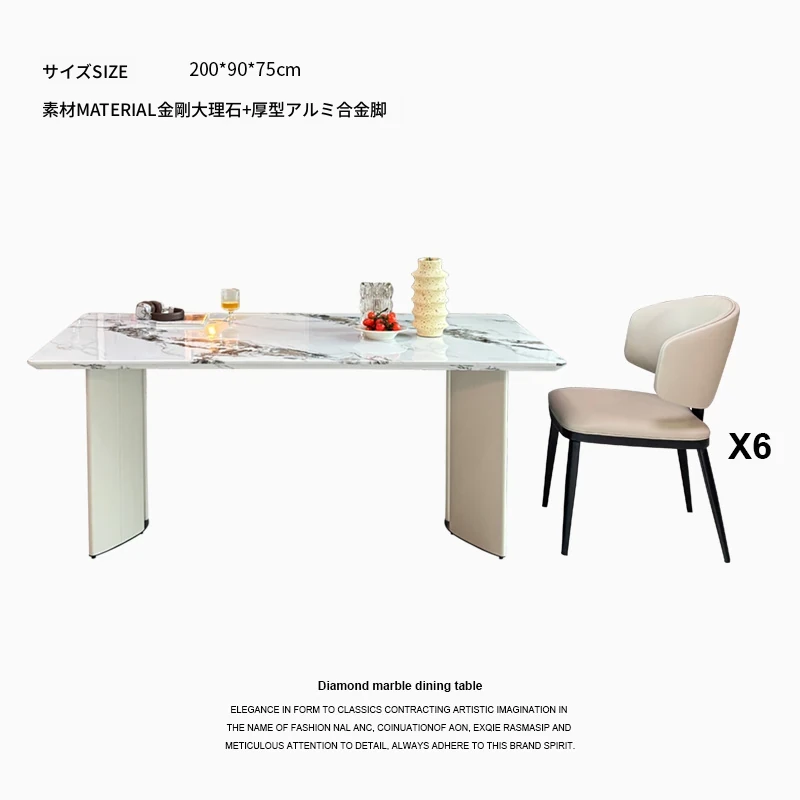 イタリアンミニマル大理石ダイニングテーブル&チェアセット|現代的なシンプルさとラグジュアリー感を兼ね備えた長方形テーブル|おしゃれな家族の食卓に最適!