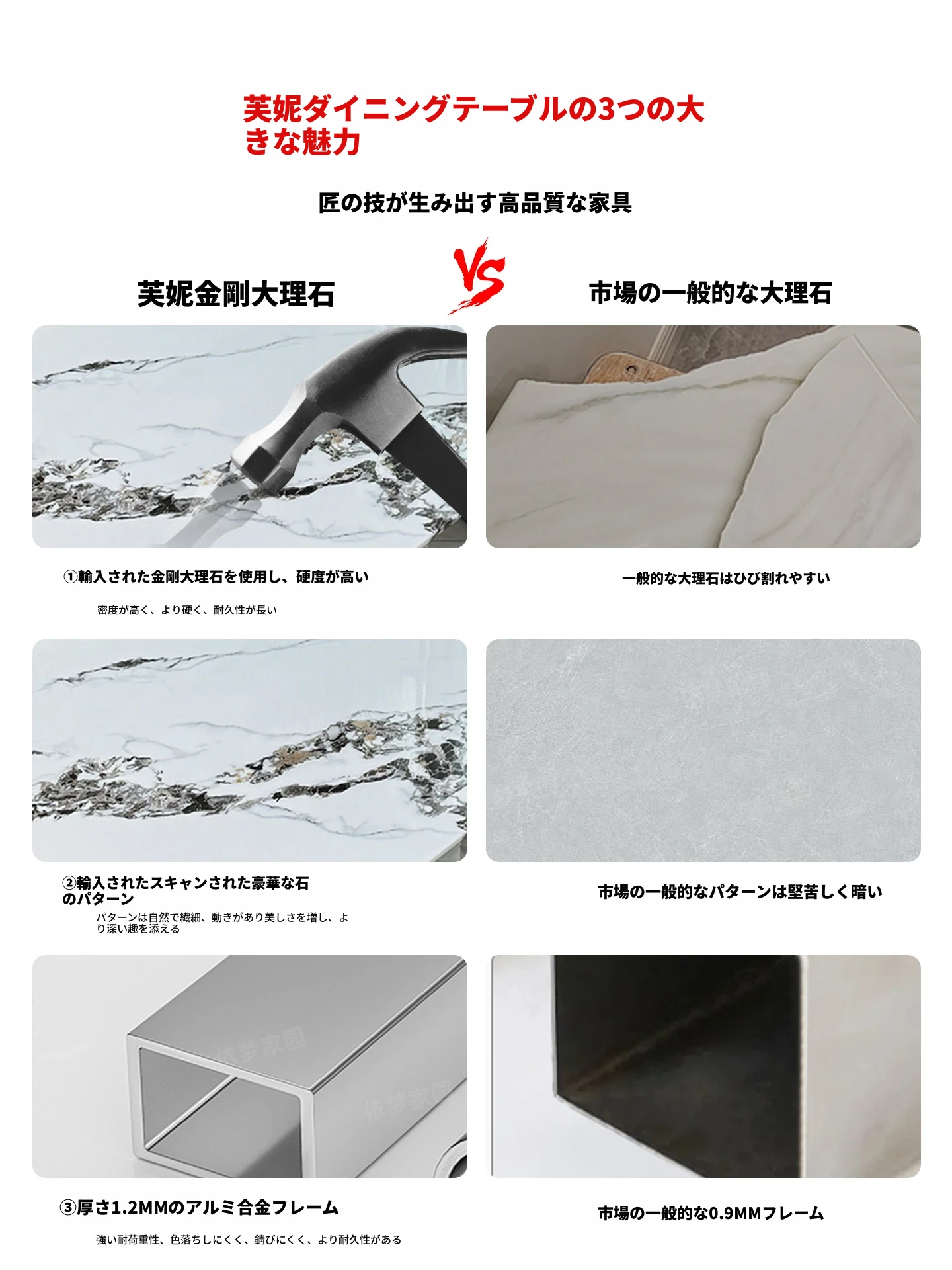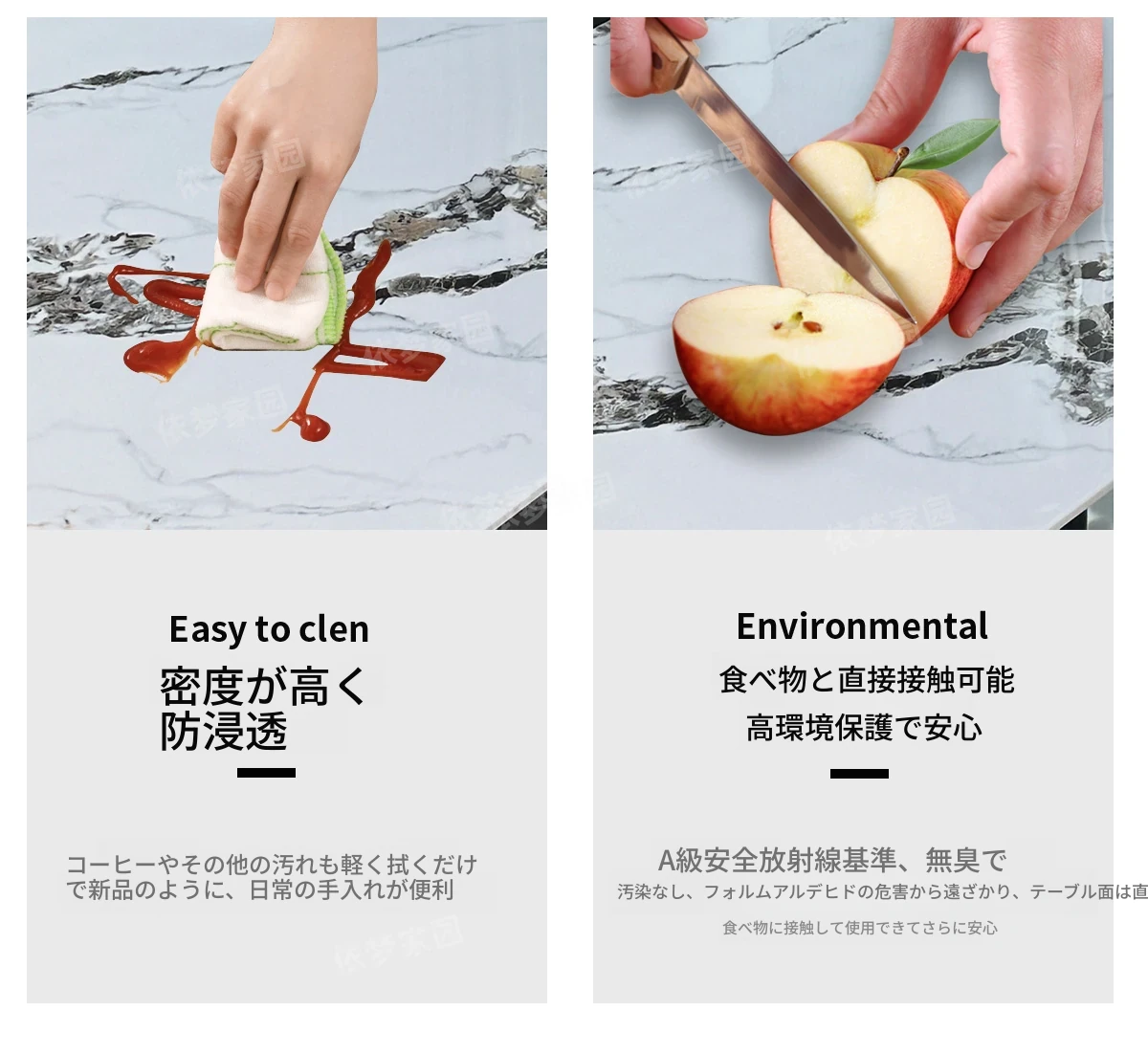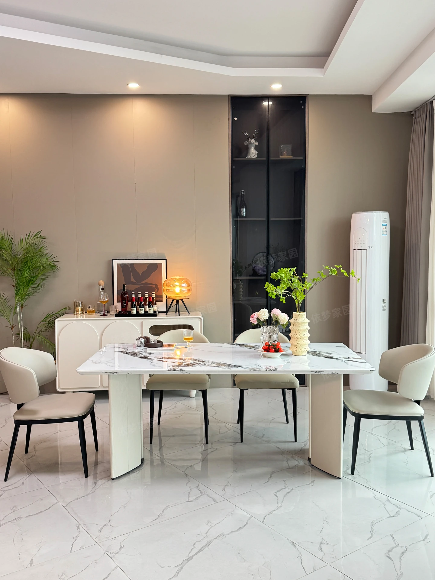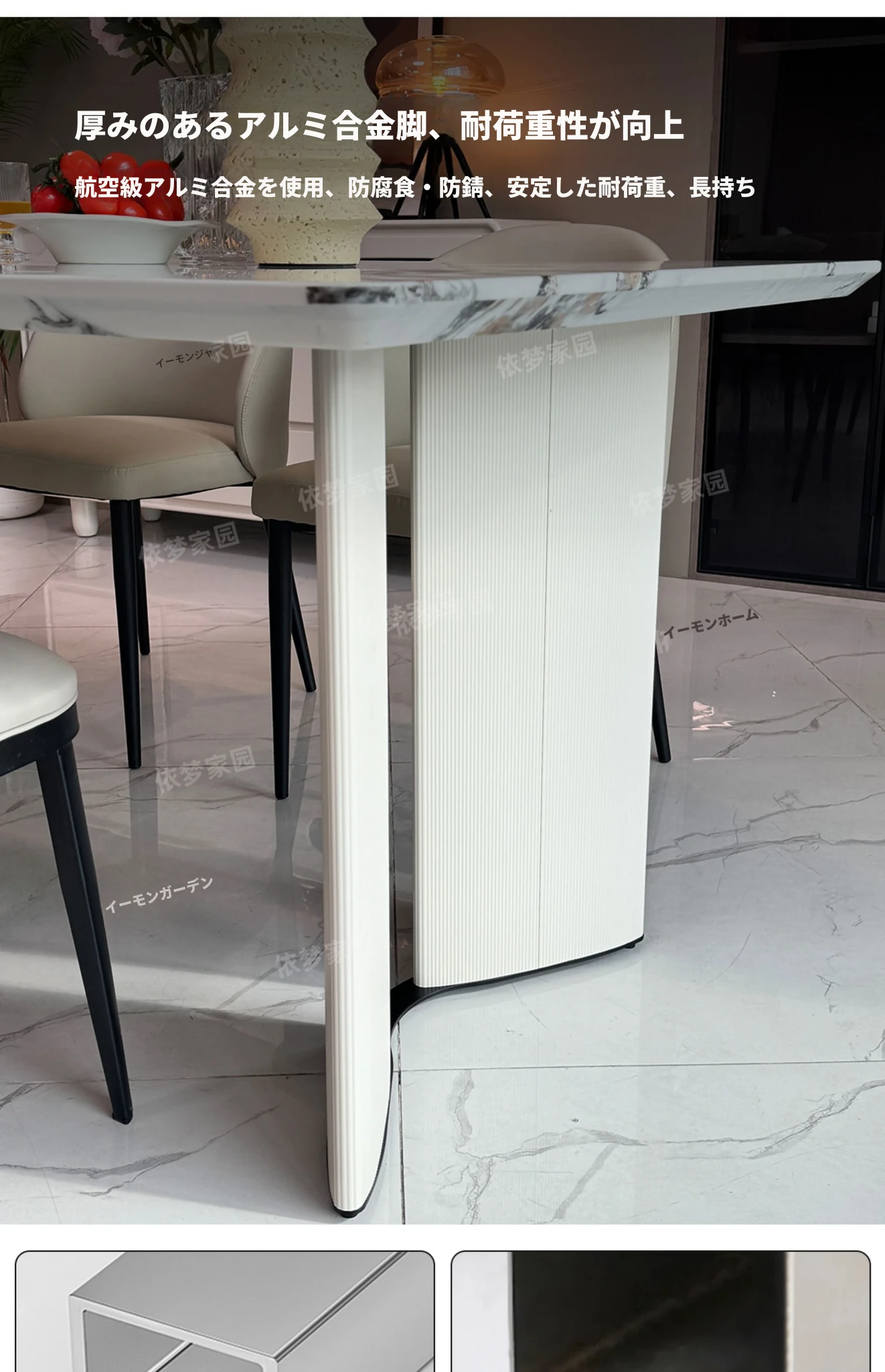 イタリアンミニマル大理石ダイニングテーブル&チェアセット|現代的なシンプルさとラグジュアリー感を兼ね備えた長方形テーブル|おしゃれな家族の食卓に最適!