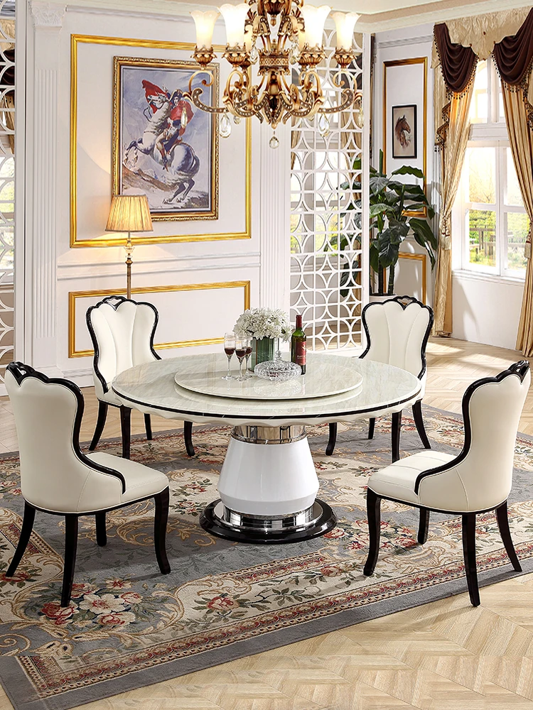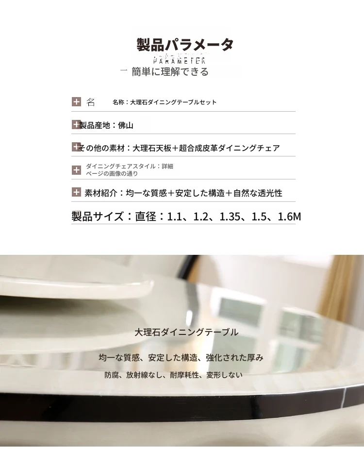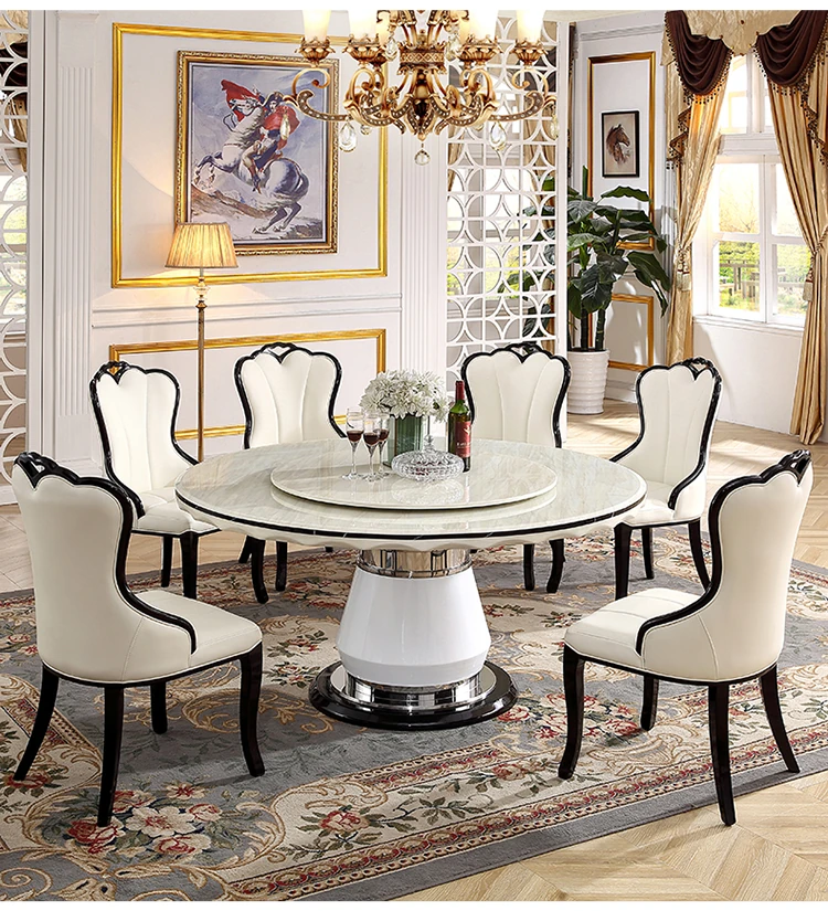 1テーブル6椅子1.5メートルテーブル90回転盤PUレザー