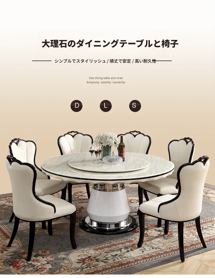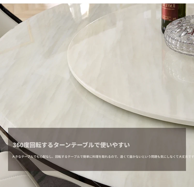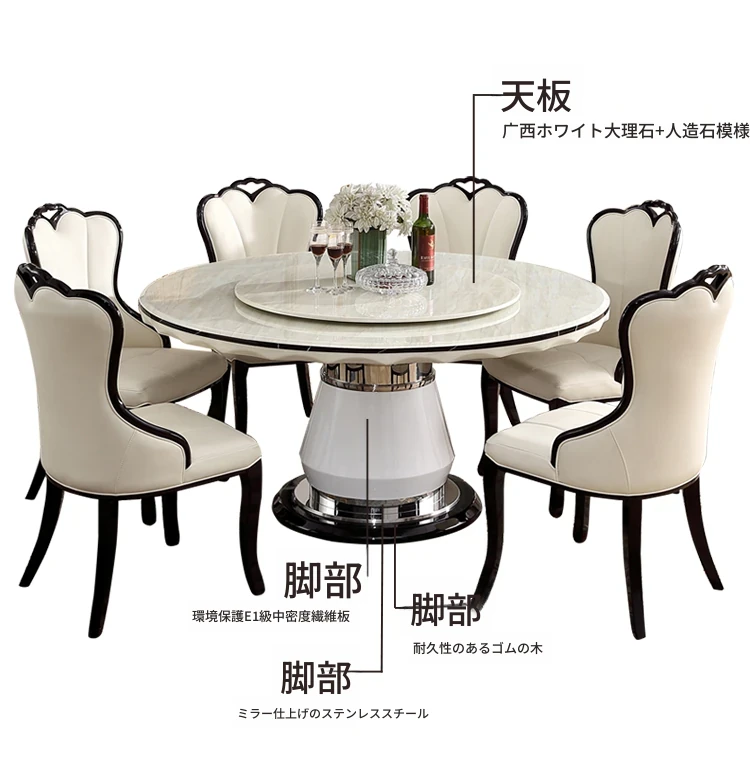 1テーブル6椅子1.5メートルテーブル90回転盤防汚超繊維皮革