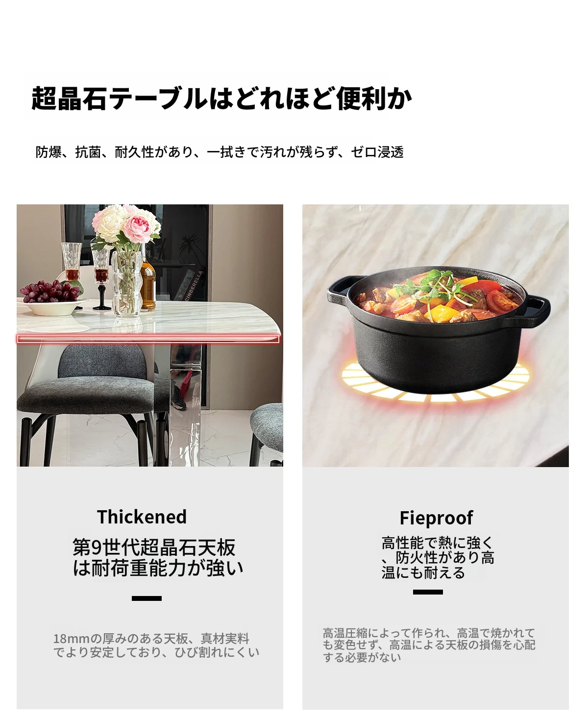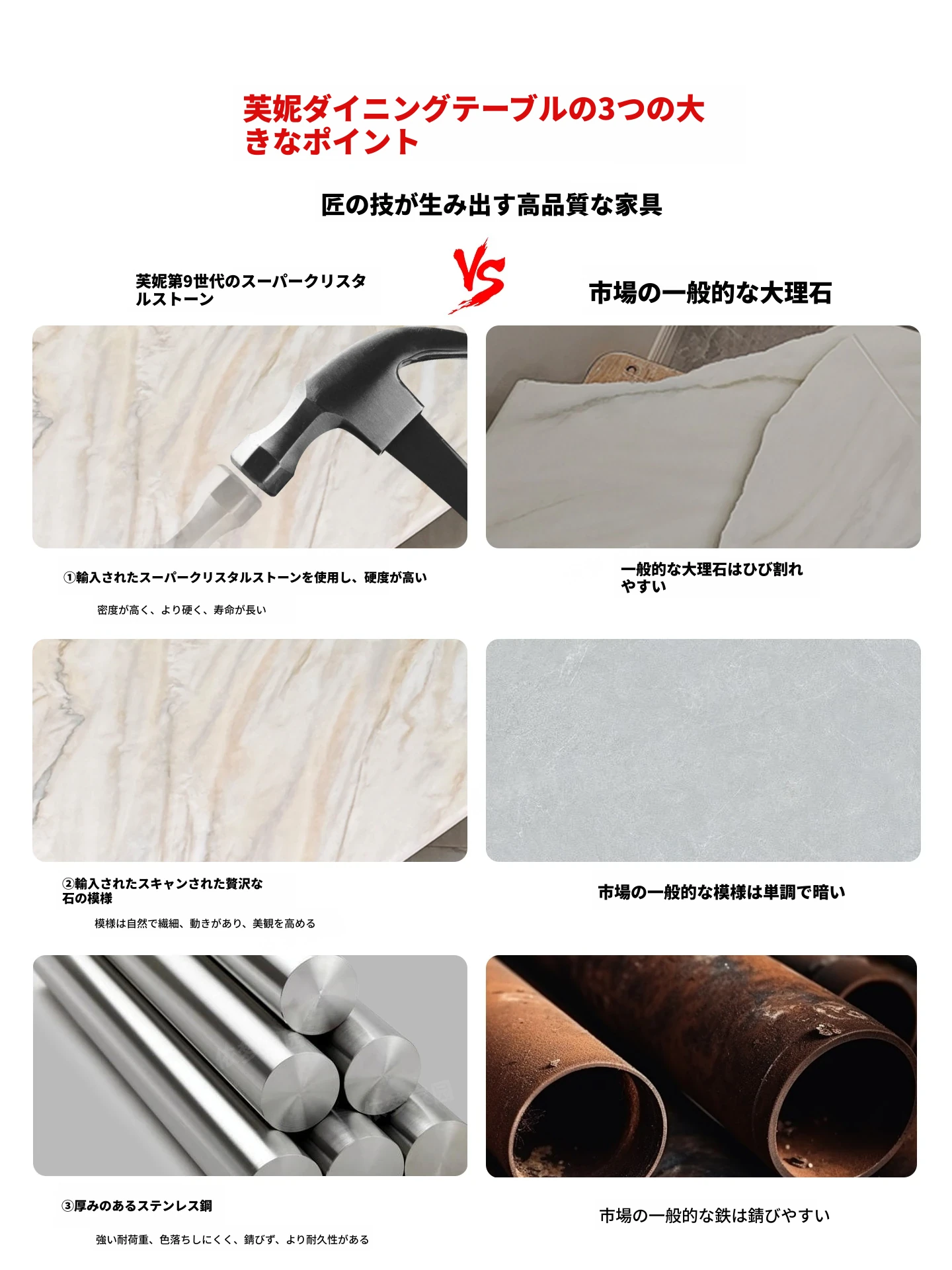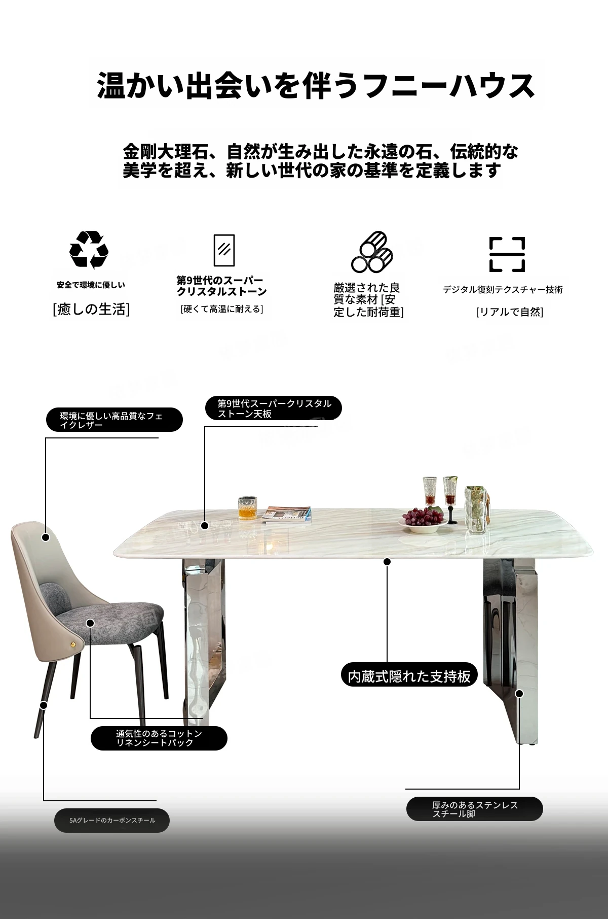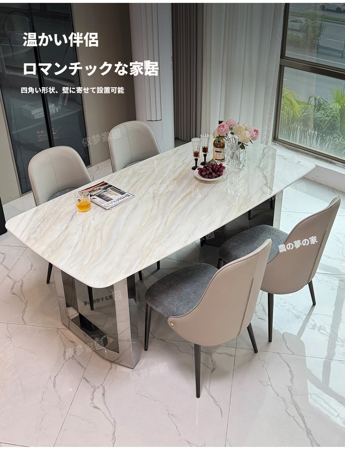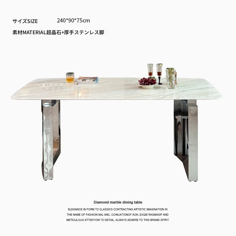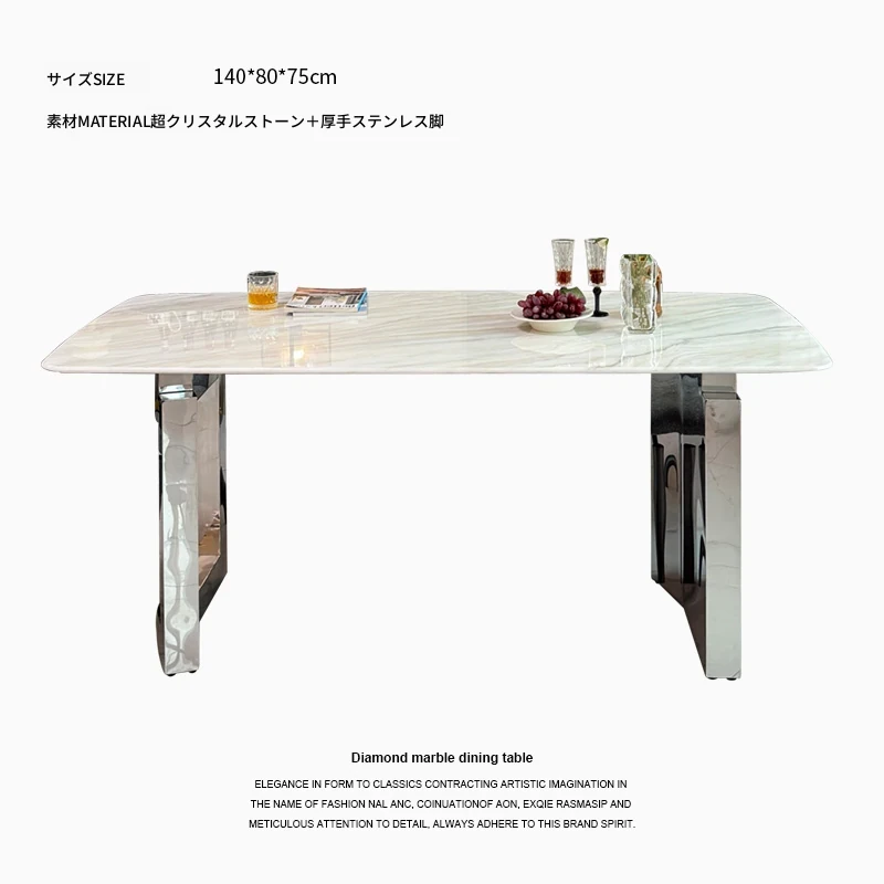 現代的ラグジュアリー感漂う大理石ダイニングセット|高級感あふれる長方形テーブル&チェア|微晶石素材で美しさと耐久性を兼ね備えた食卓|おしゃれな食事空間を演出!