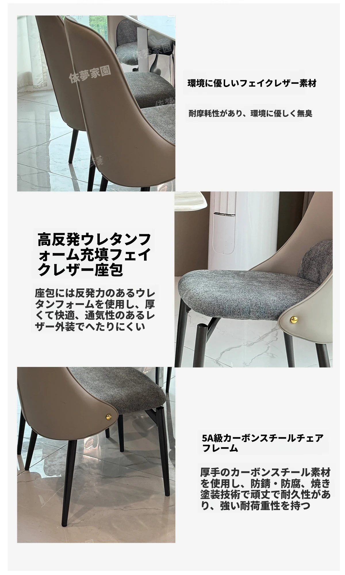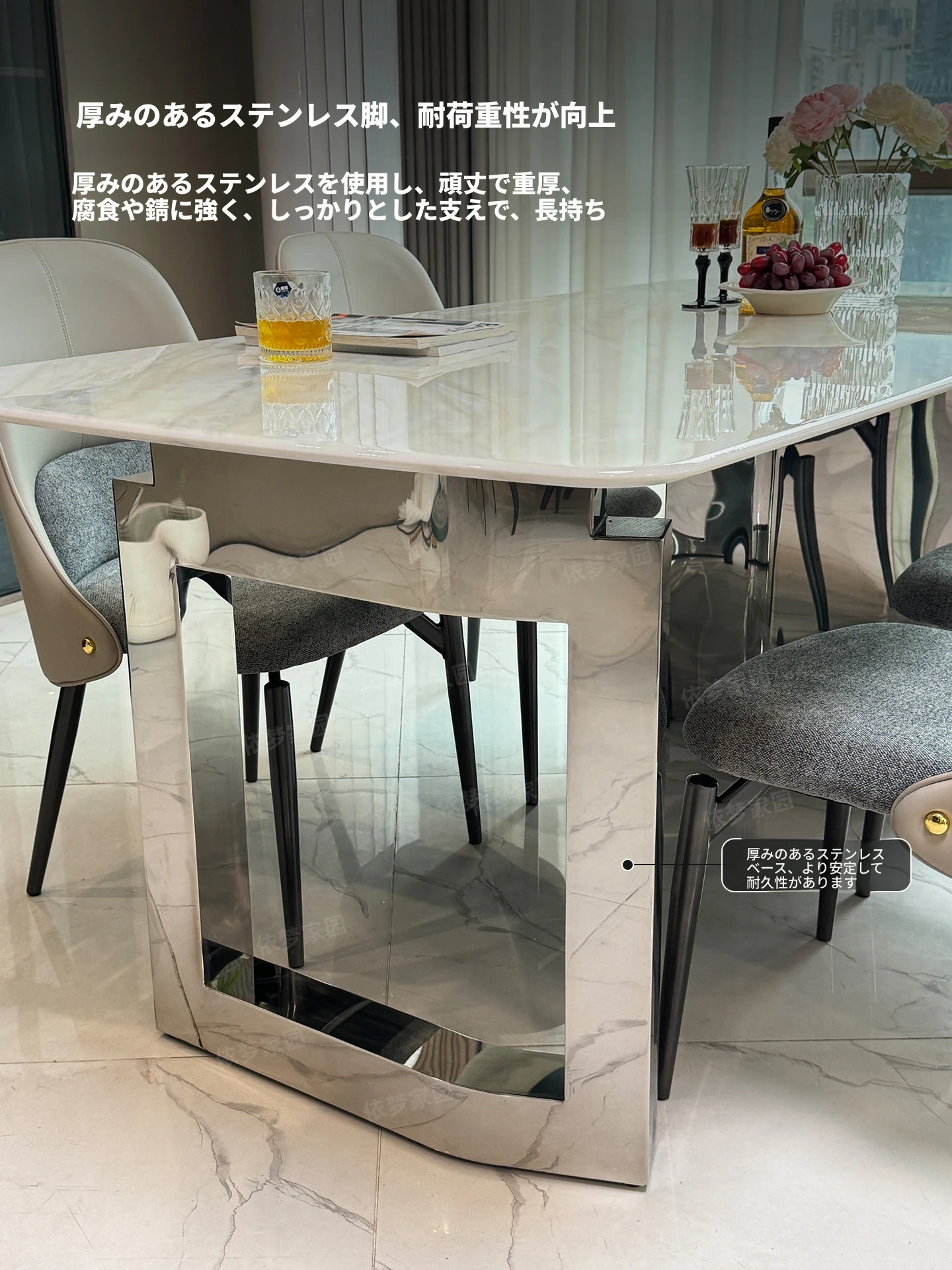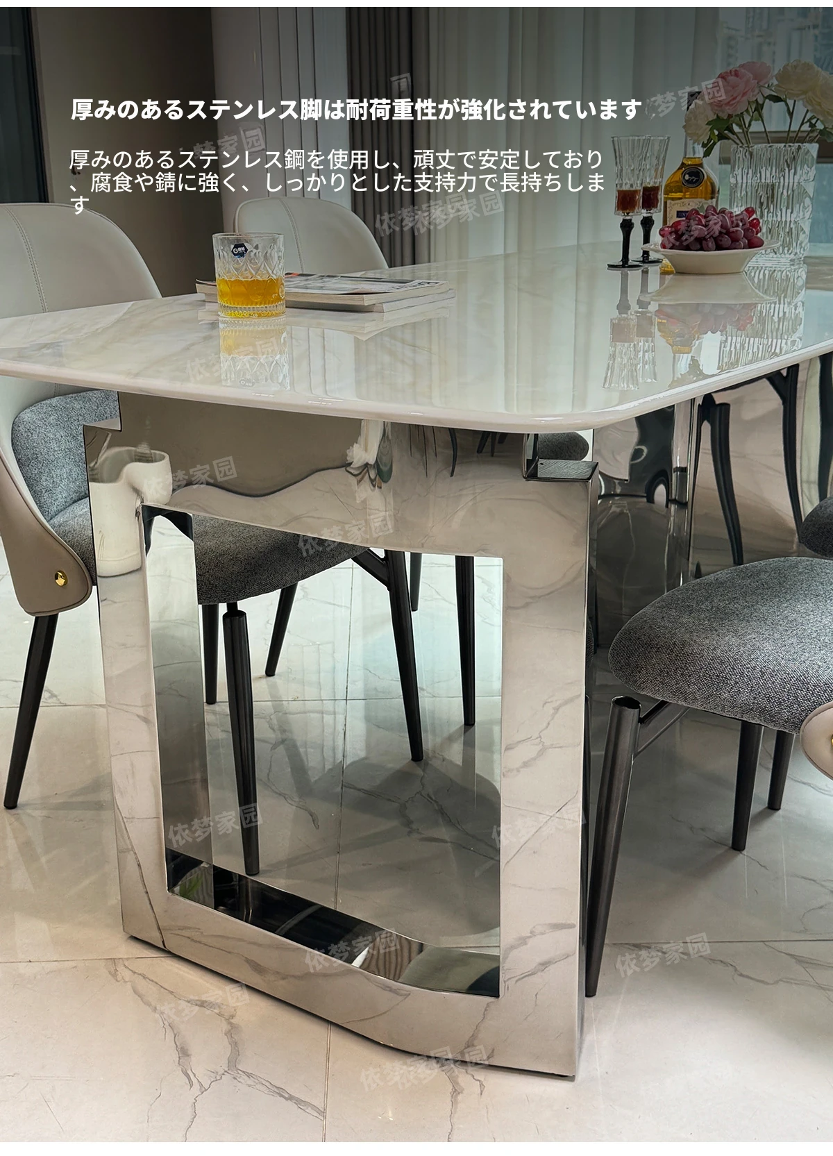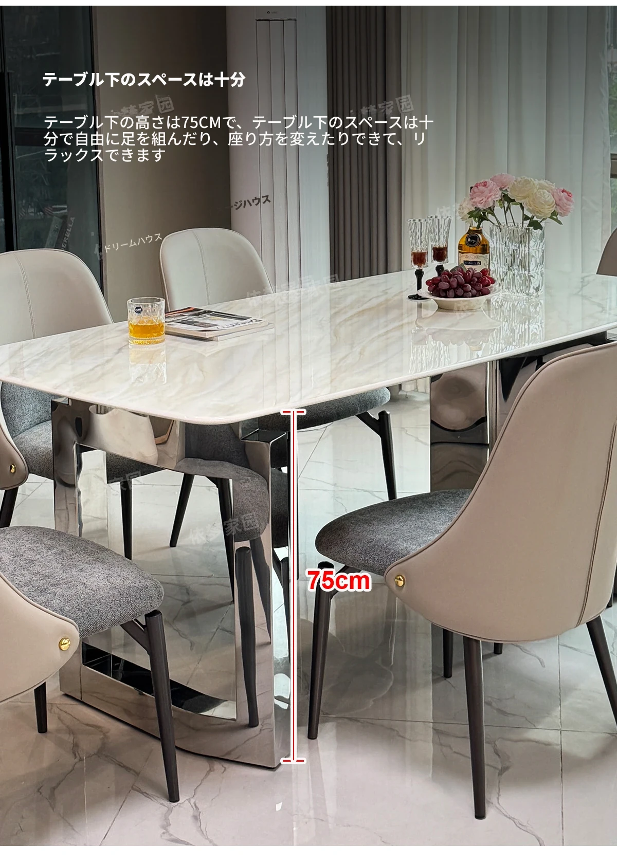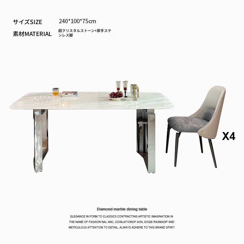 2.4メートル大理石ダイニングテーブル+4椅子