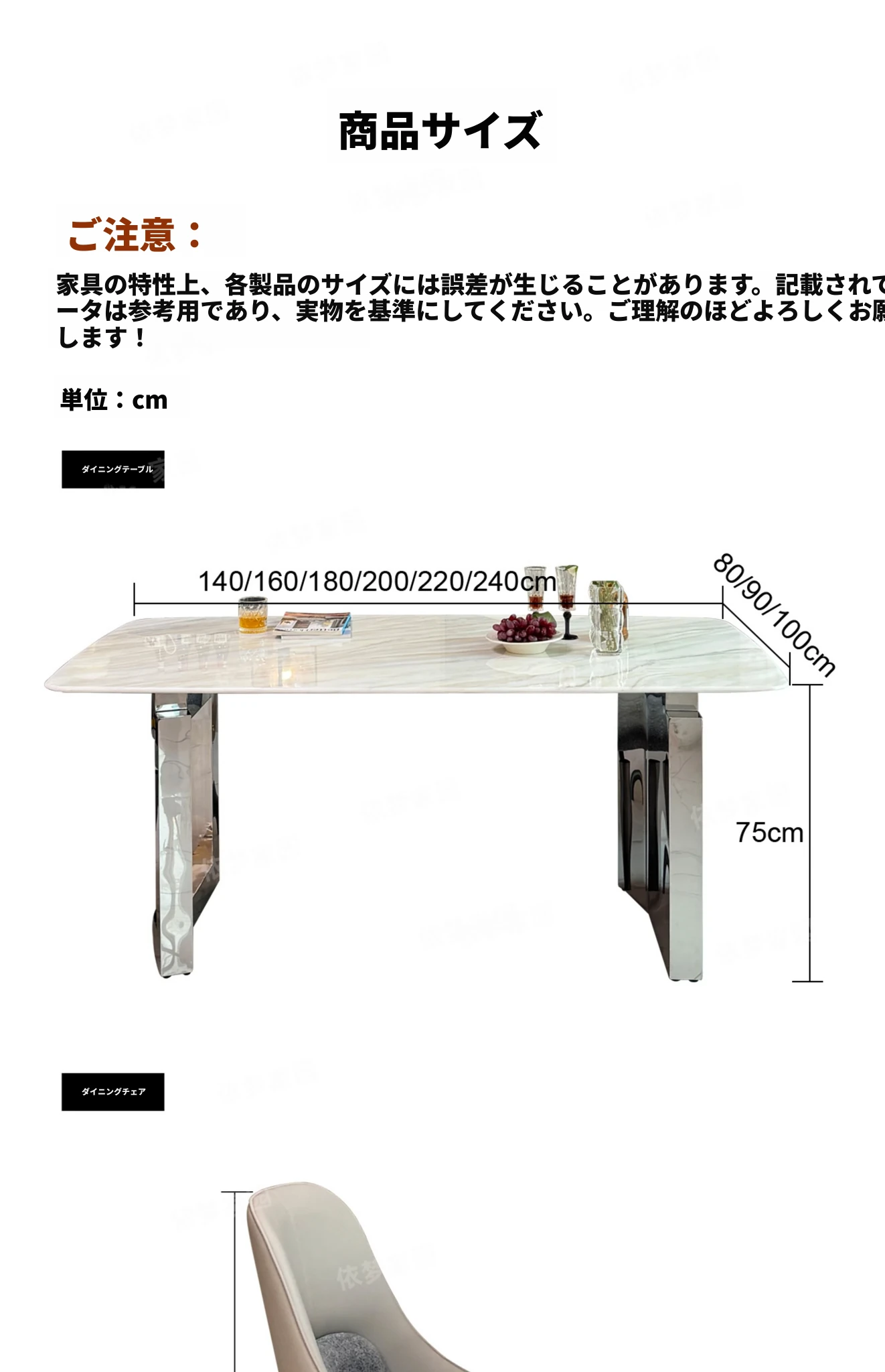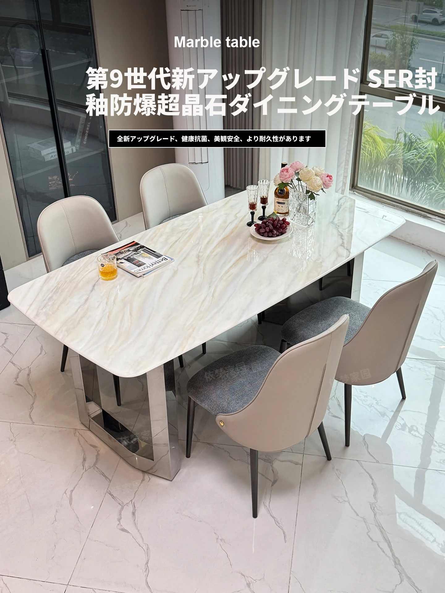 2.4メートル大理石ダイニングテーブル+6椅子
